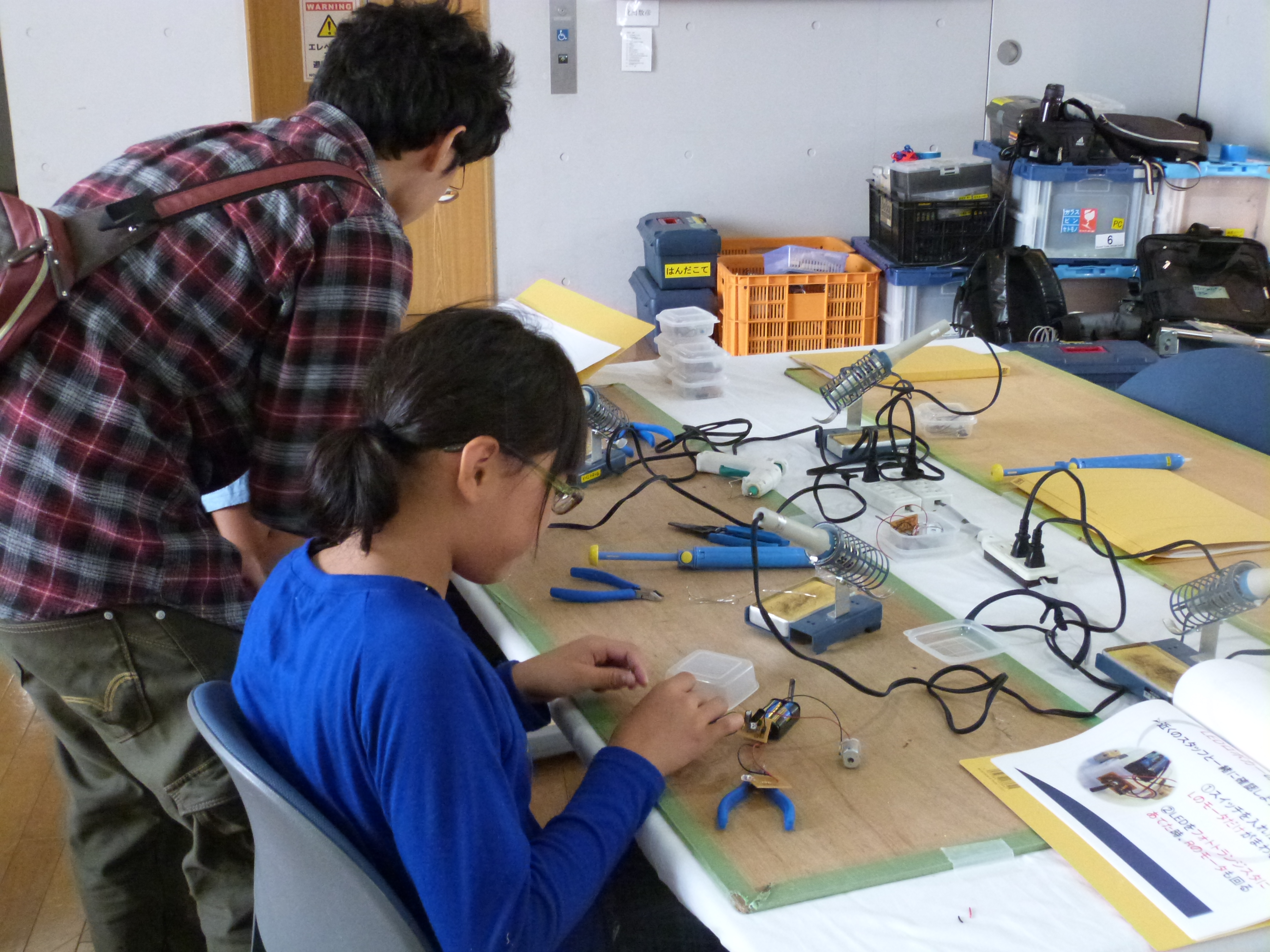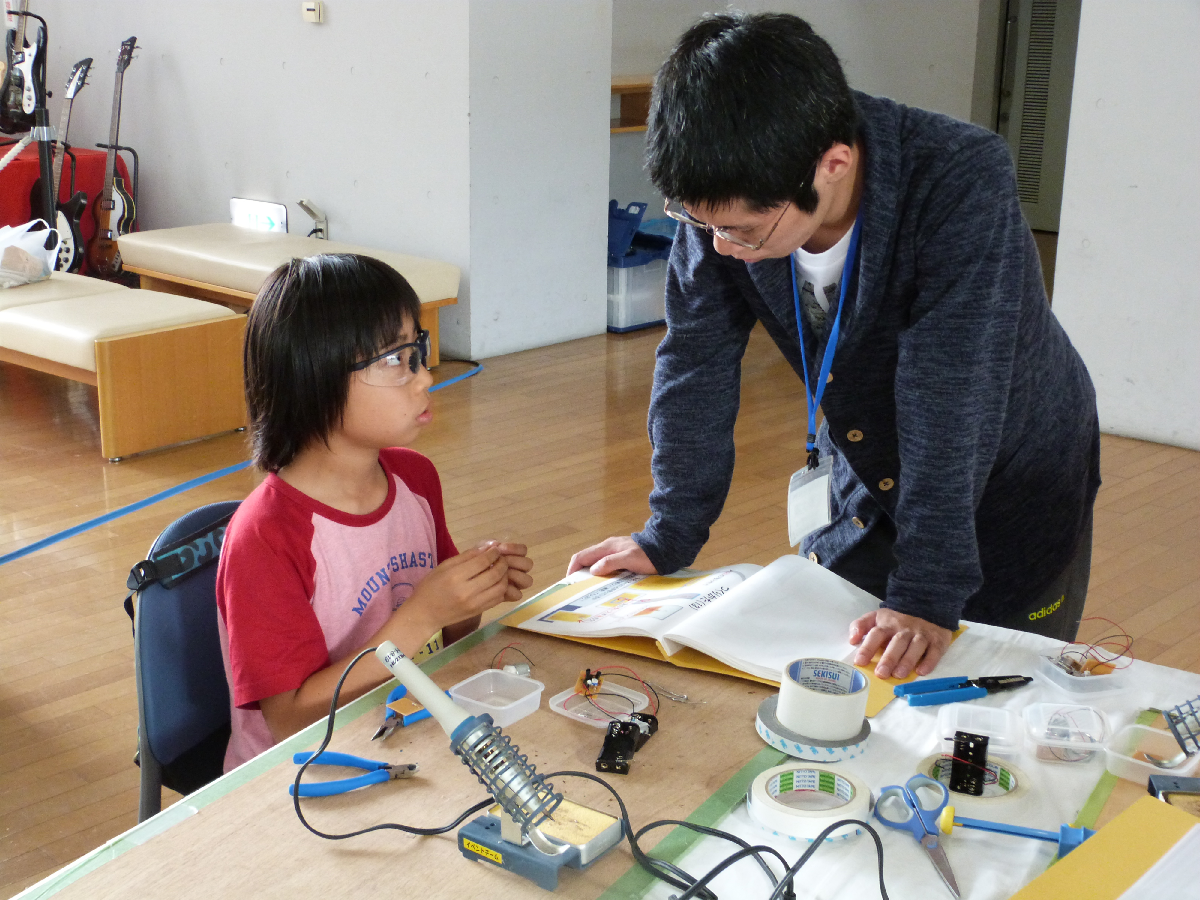 「ゴムバズーカ」や「LEDロボカー」を自分で制作する工作教室を開催し、ものづくりの楽しみを知ってもらいました。