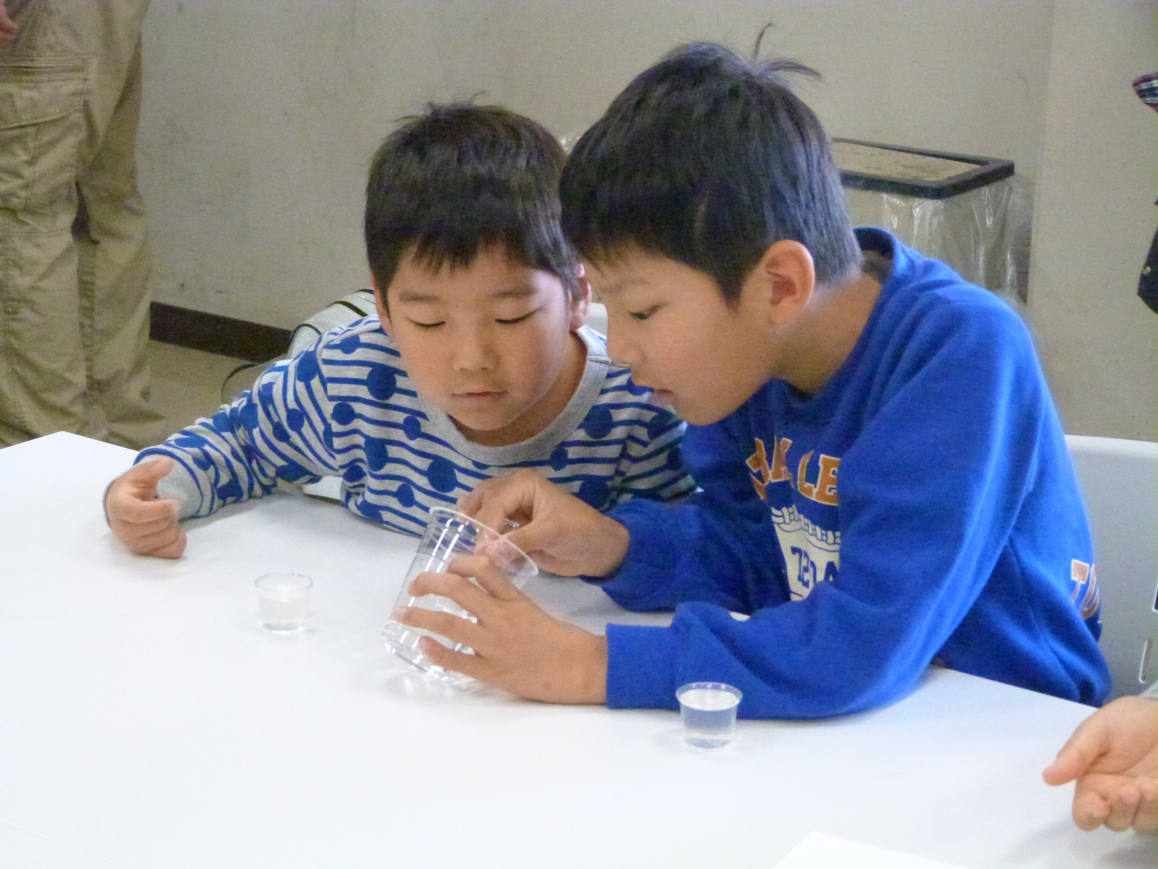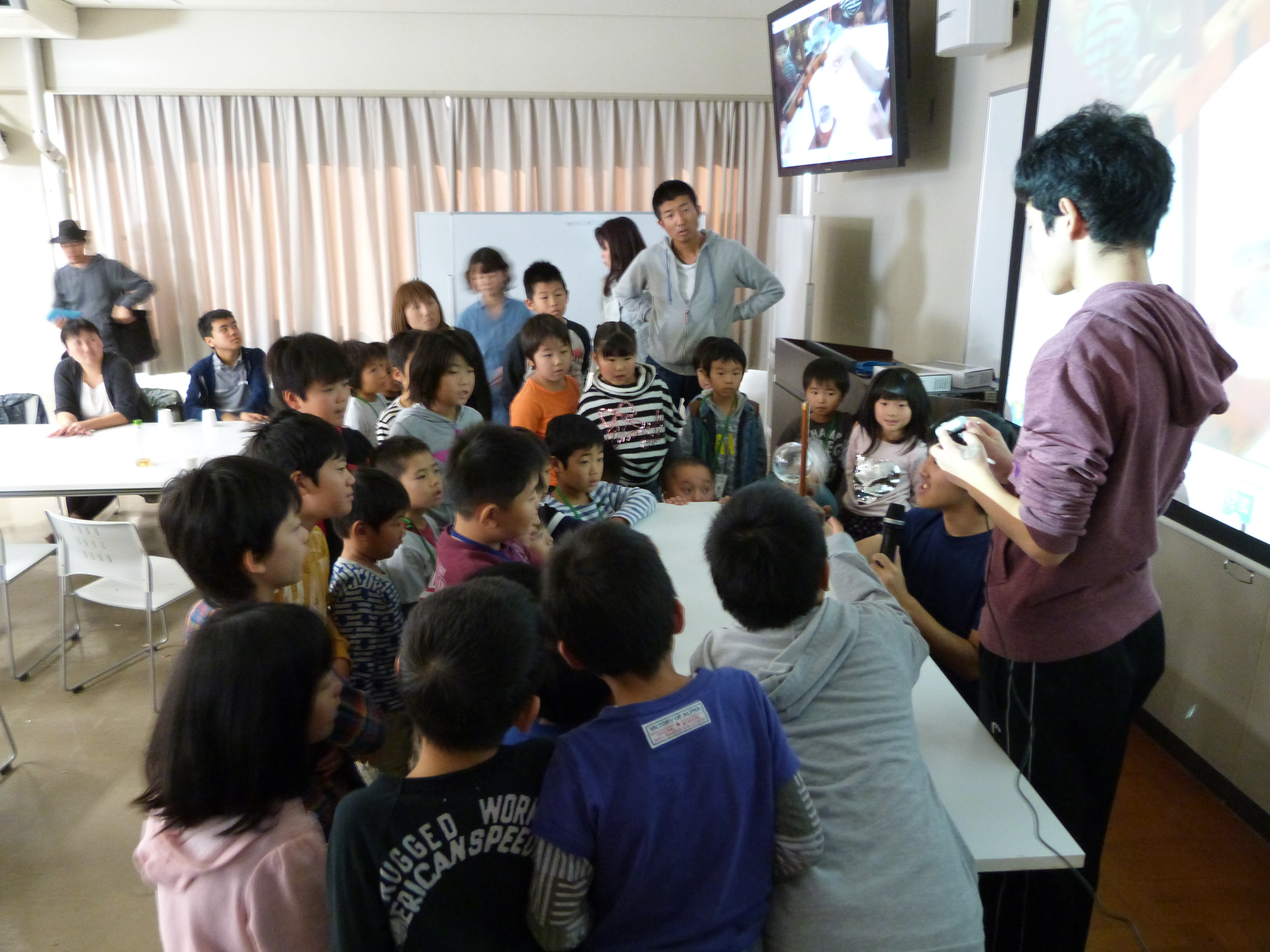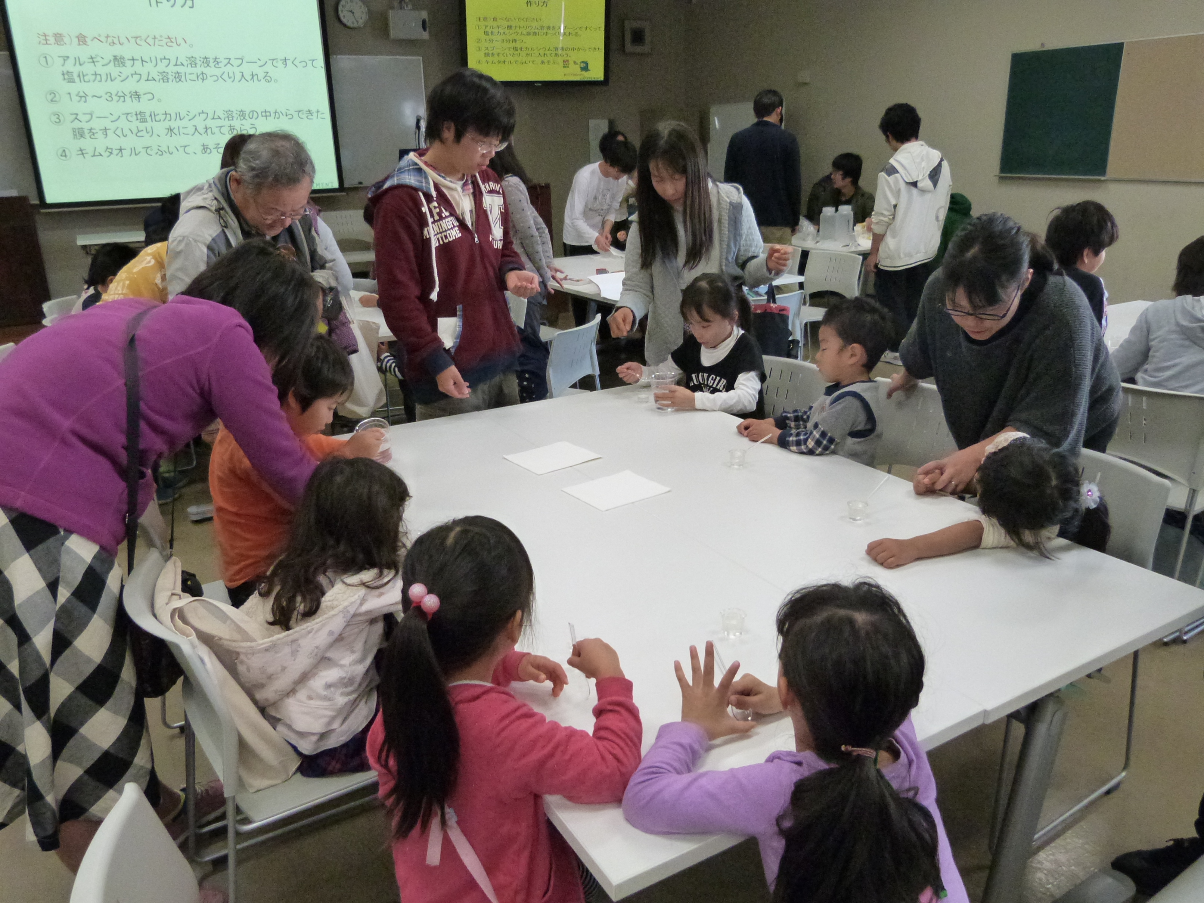 今回は、化学反応により膜の中に水を閉じ込める“持ち運べる水”や“万華鏡”に関する実験を子供達に体験してもらいました。各自が実際に実験を行うことで、目の前で起こる不思議な現象を、楽しそうに遊んでいました。