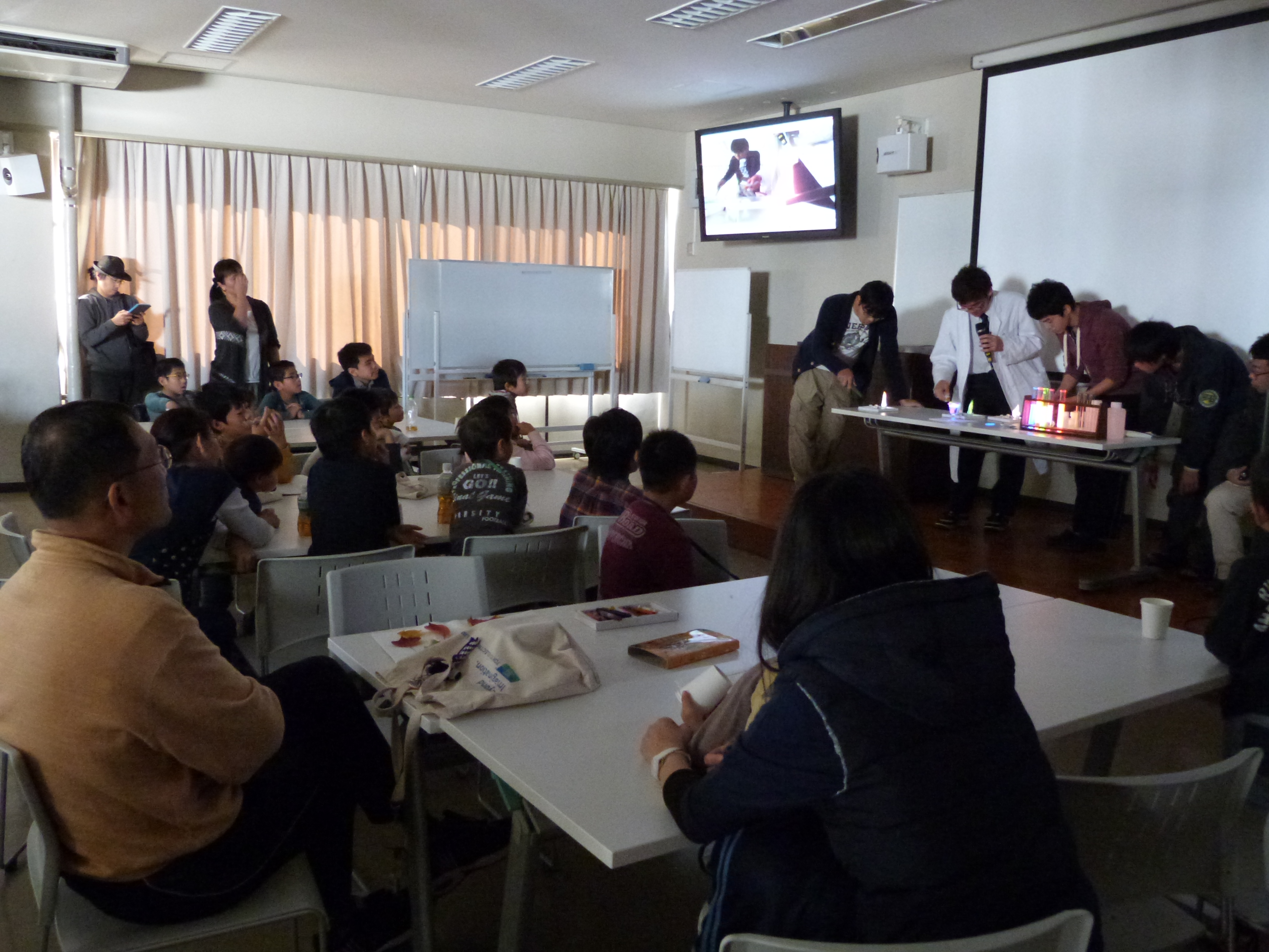 11月21日(土)、詫間キャンパスにて三豊市少年少女発明クラブの活動「おもしろ科学実験教室(2)」を開催しました。科学実験教室は詫間キャンパス「科学クラブDEX」による活動の一環です。
