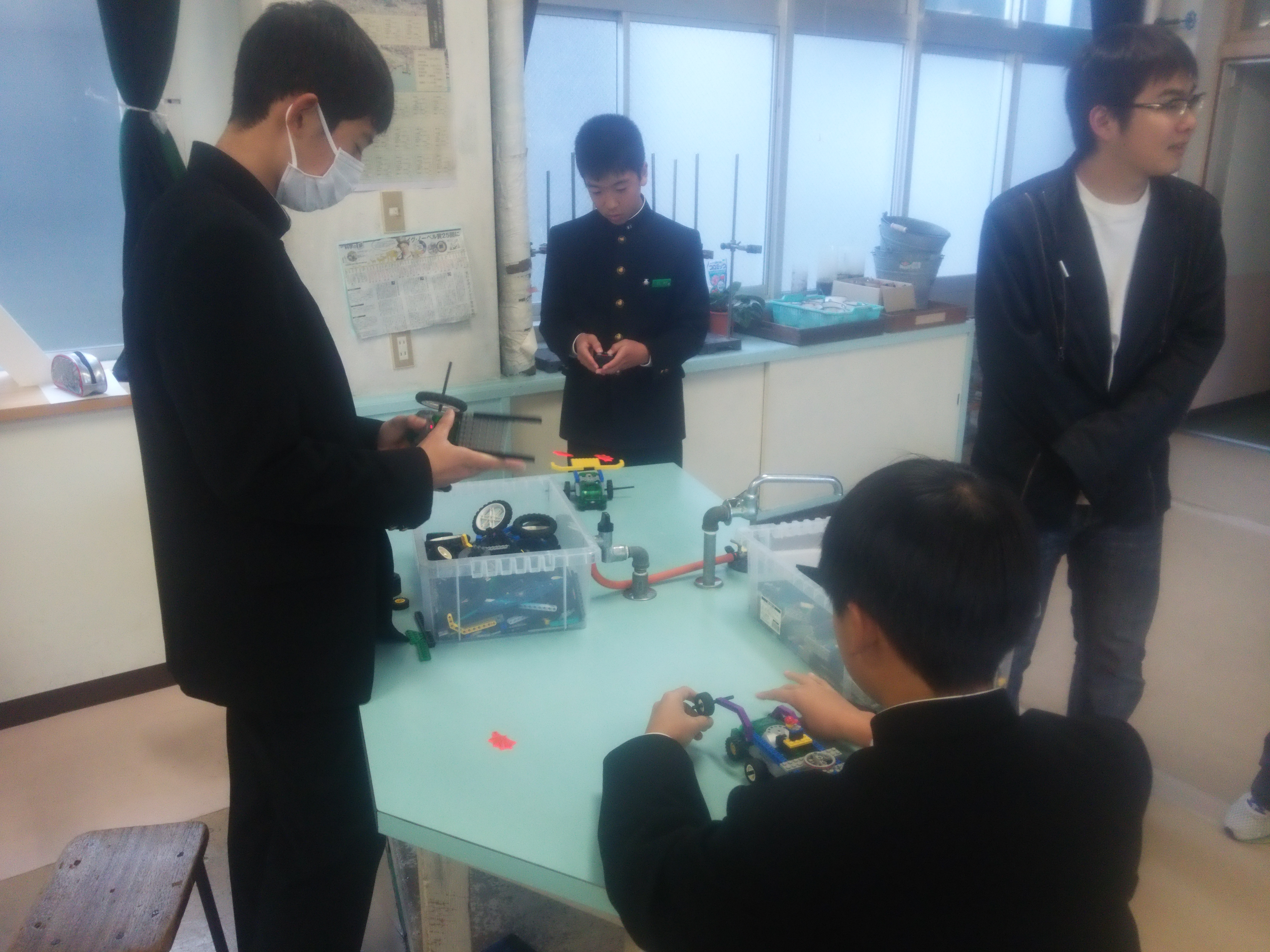 川之江北中学校では、文化祭行事として地域体験講座を開催しており、地域の方が講師となって様々な体験講座を開き、自分の興味に合わせて生徒が受講しています。その講座の一つとして、本校詫間キャンパスロボコンチーム「TEAM ARK」が「簡単ロボット教室」を行いました。