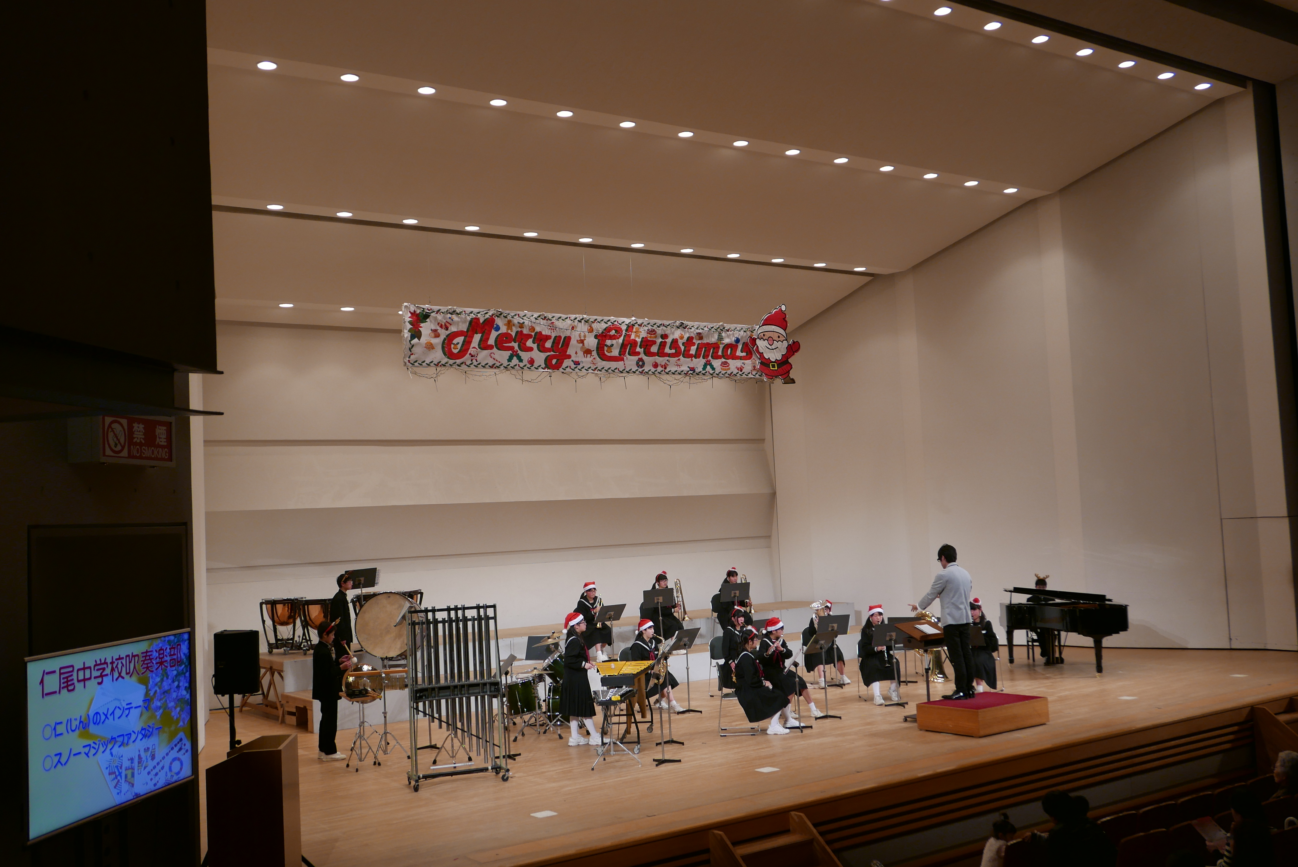 コンサートには計7団体が参加し、 TEAM ARKの学生が電飾やツリーで賑やかに演出したステージで演奏や合唱を披露しました。