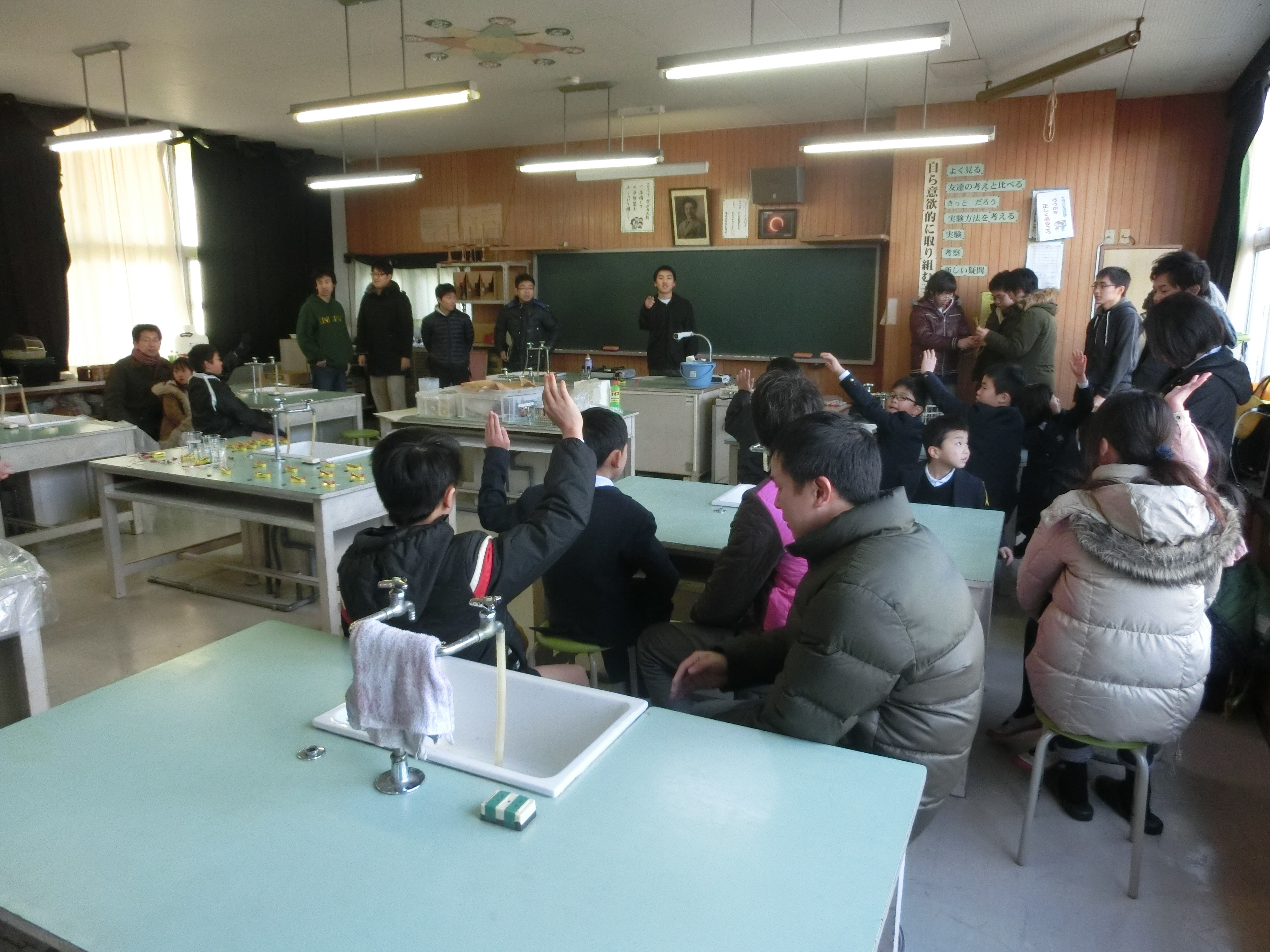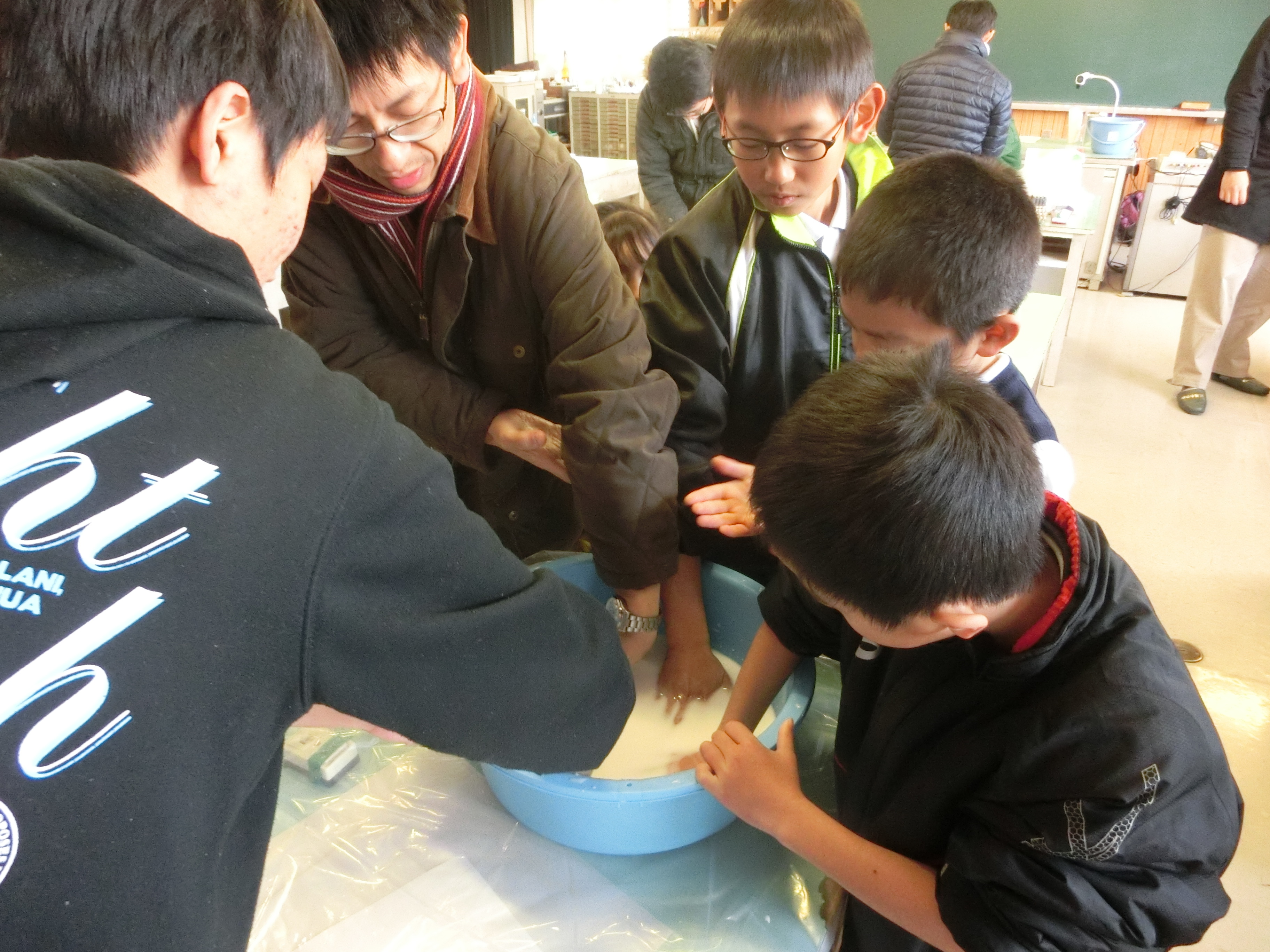 1月24日(日)、三豊市立比地小学校にて開催された「地域ふれあい活動」において、「科学クラブDEX」の学生が「おもしろ科学実験教室」を開催しました。