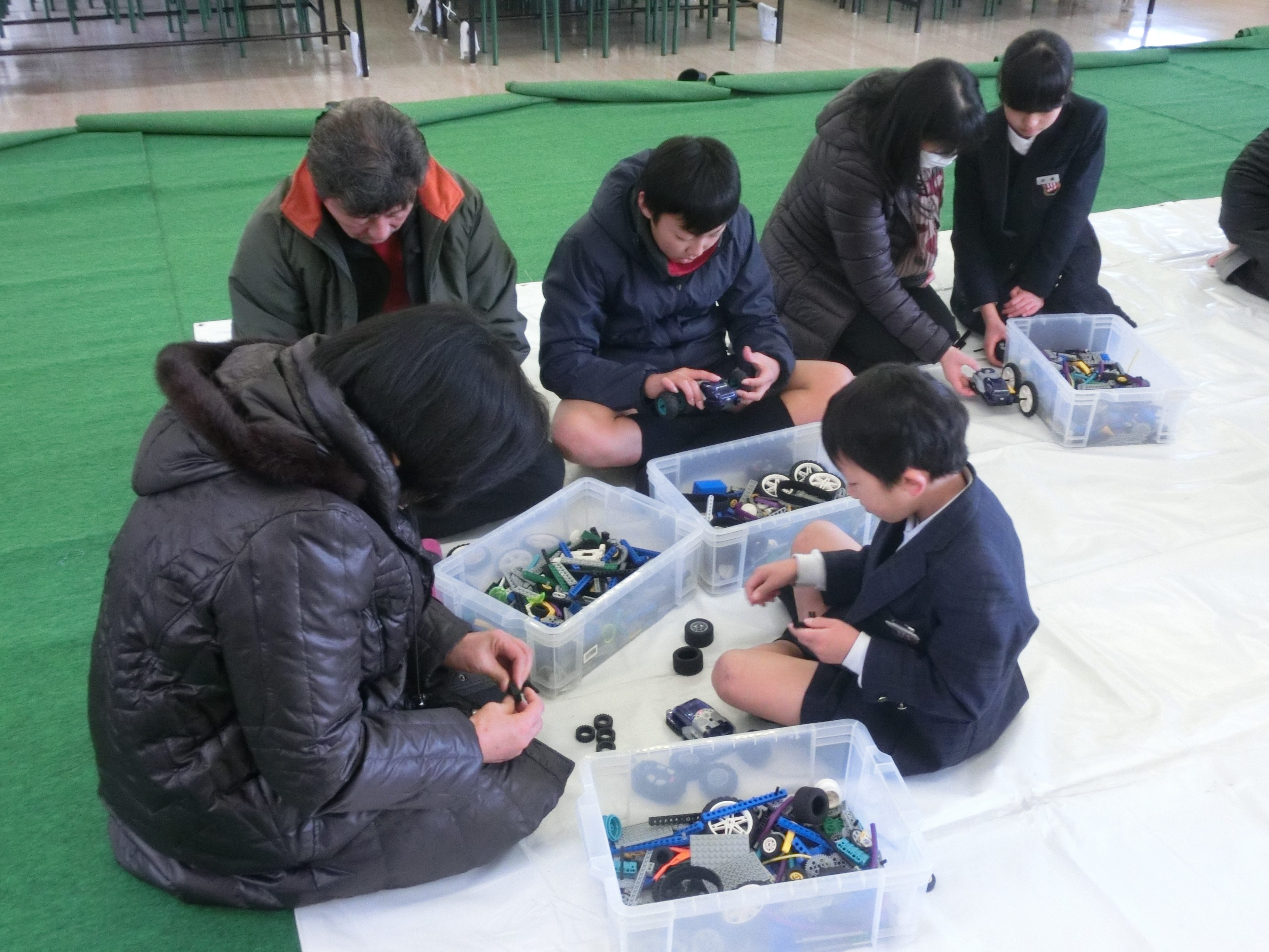 この催しは比地小学校の年間行事として開催されており、いくつかの体験活動の中から「簡単ロボット教室」を希望した子ども達と保護者の方に体験していただきました。