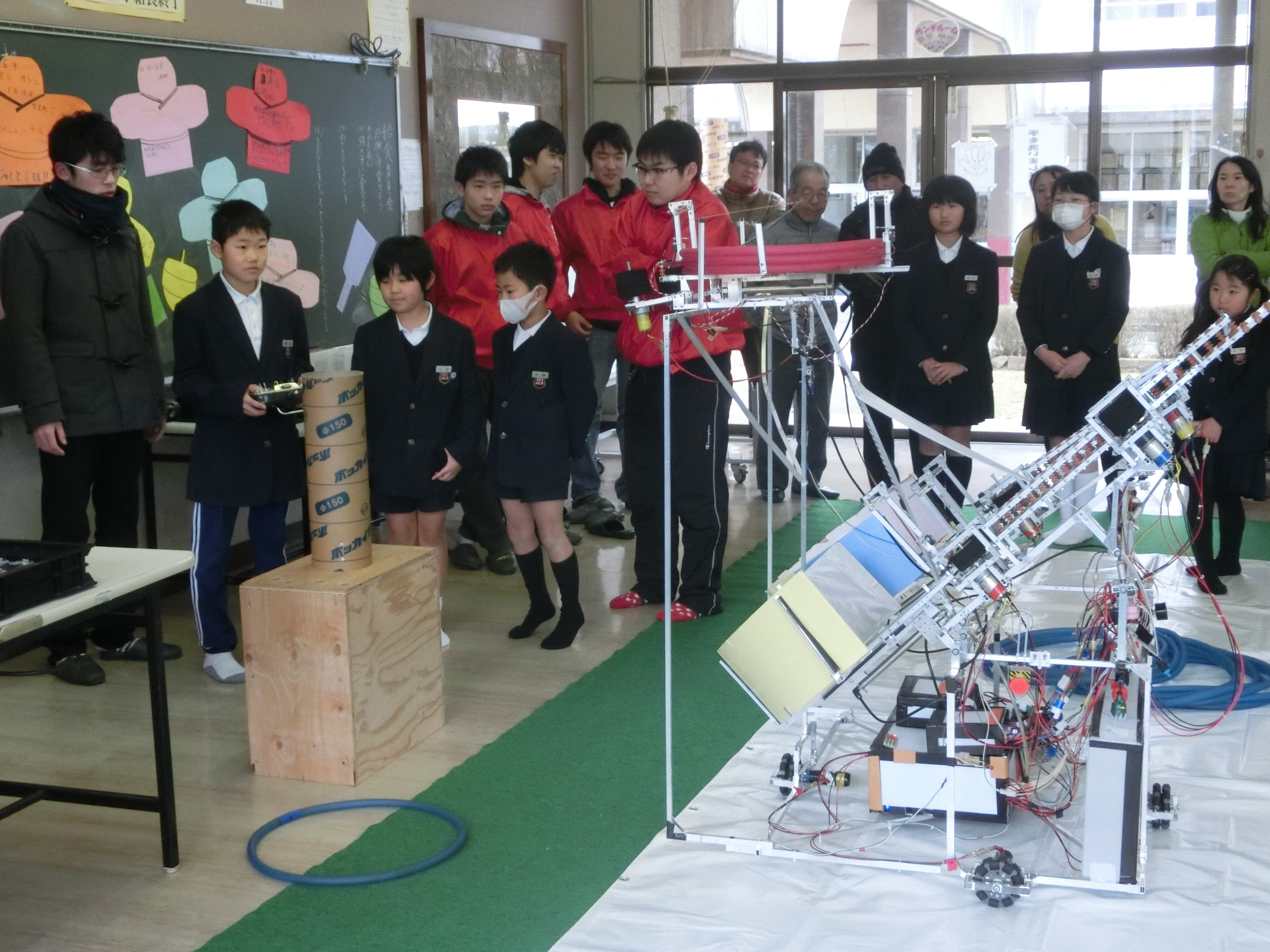 全国高専ロボコン2015に出場したロボットのデモンストレーションを行い、希望した小学生にはロボットの操作体験をしてもらいました。