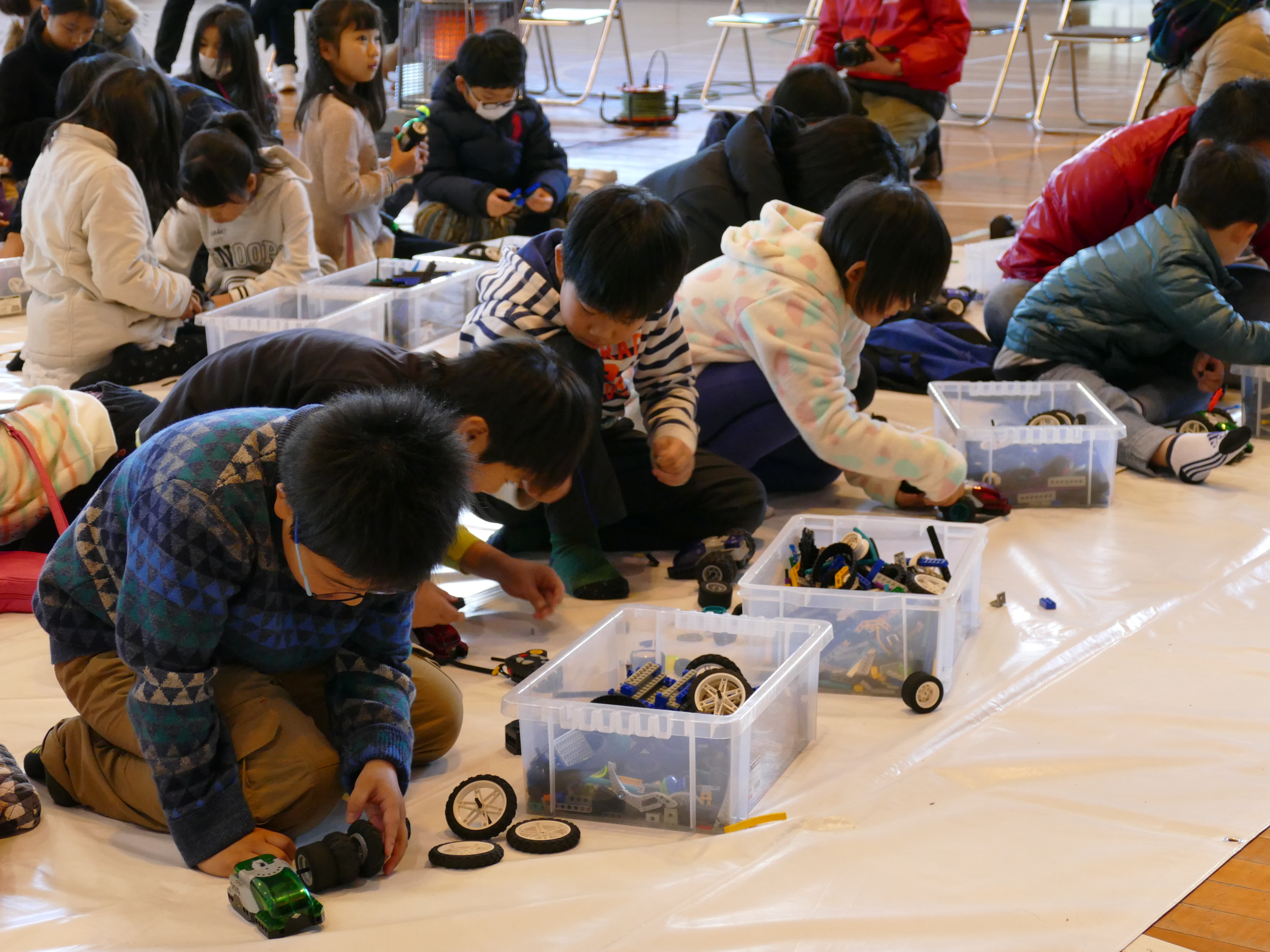 参加した子ども達は、保護者と協力して「レゴスパイボット」の本体に自分で選んだれ後ブロックの部品を取り付けリモコンで操作して友達とバトルやレースをして楽しみました。