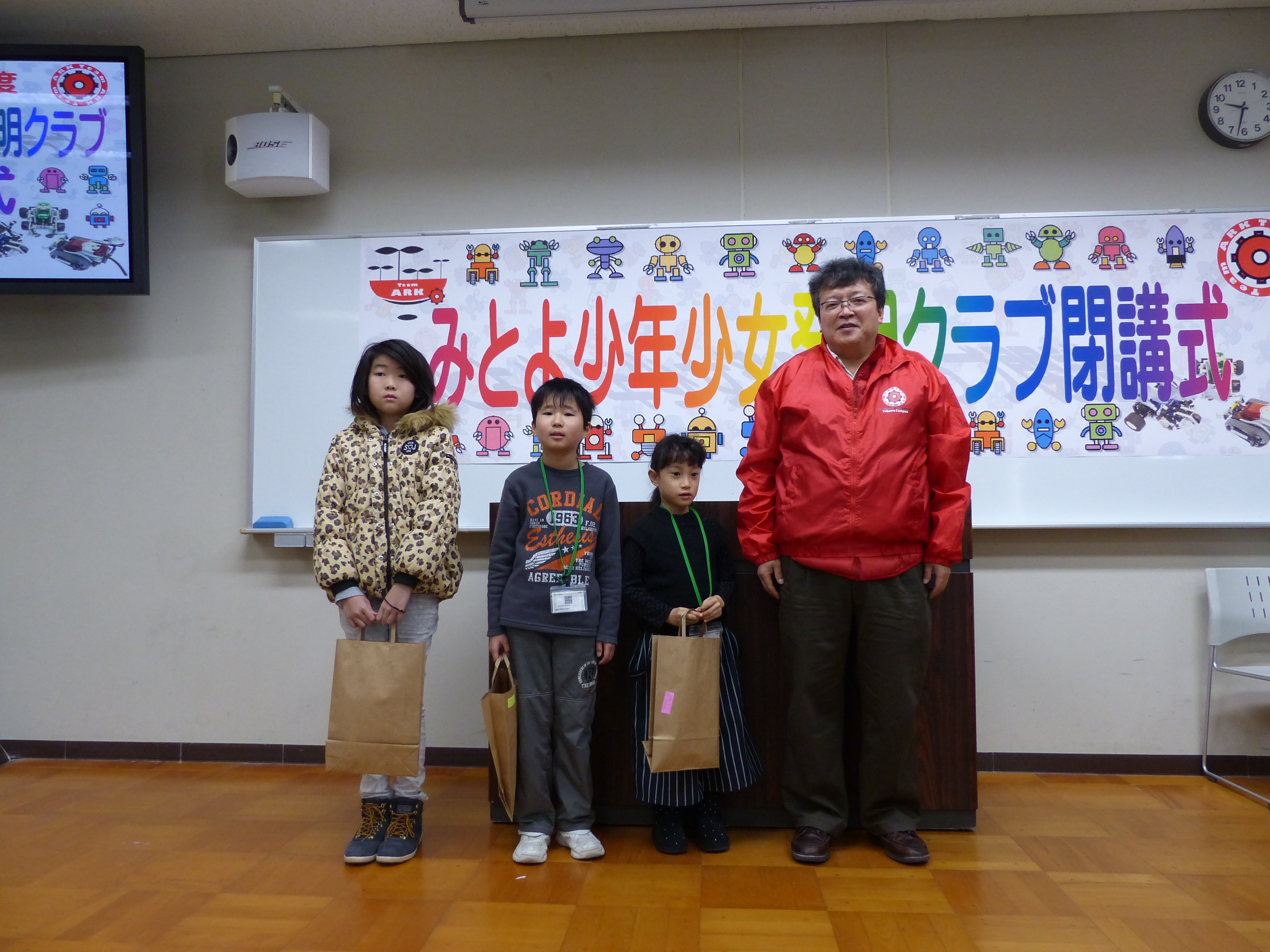 2月27日(土)、香川高専 詫間キャンパスにおいて、三豊市少年少女発明クラブの「閉講式」を行いました。
