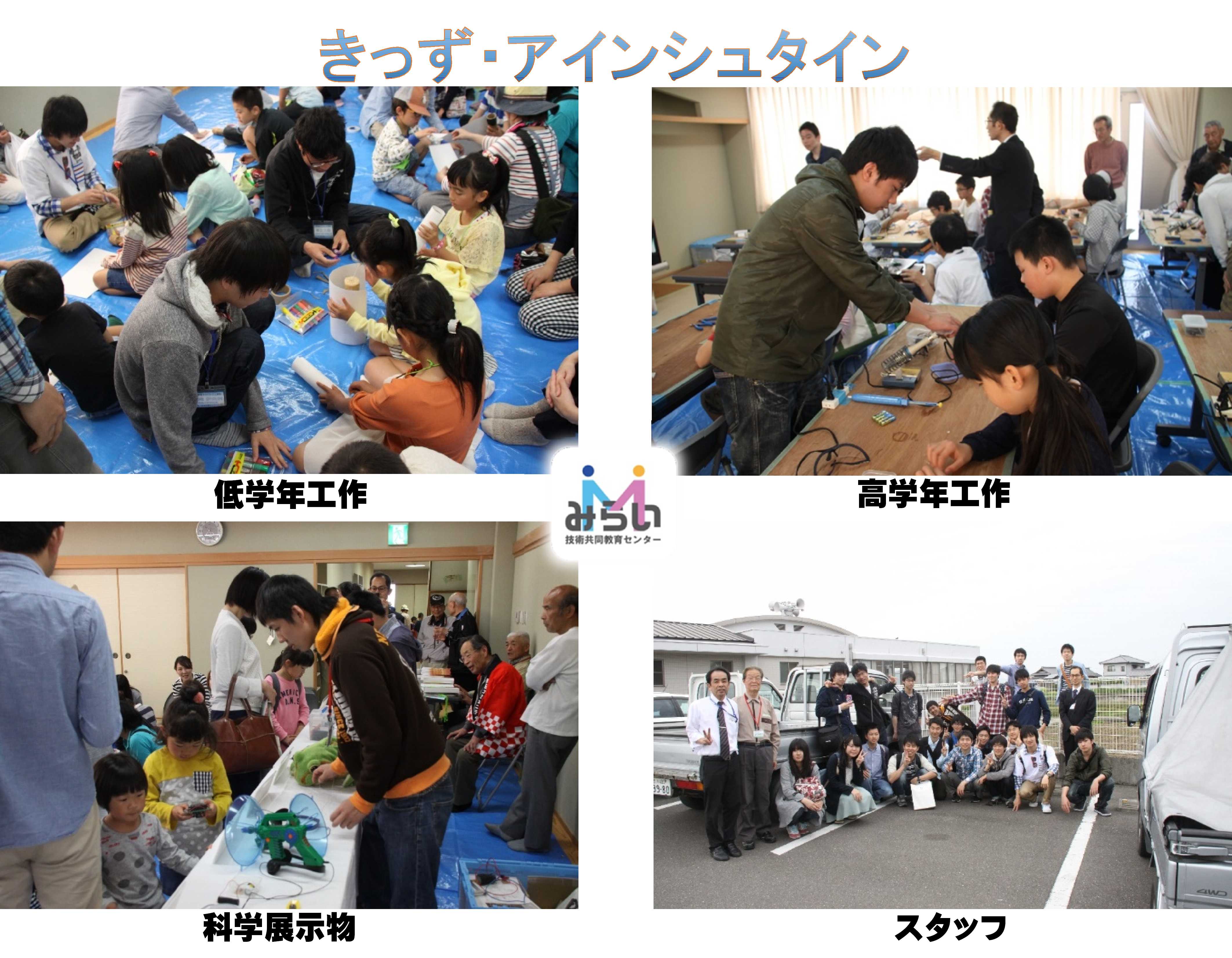 工作は、午前の部と午後の部の2回開催しました。子どもたちは、怪我も無く完成させることができ、 大変喜んでいました。また、工作の空き時間には、子ども達は科学展示物に大喜び!!でした。