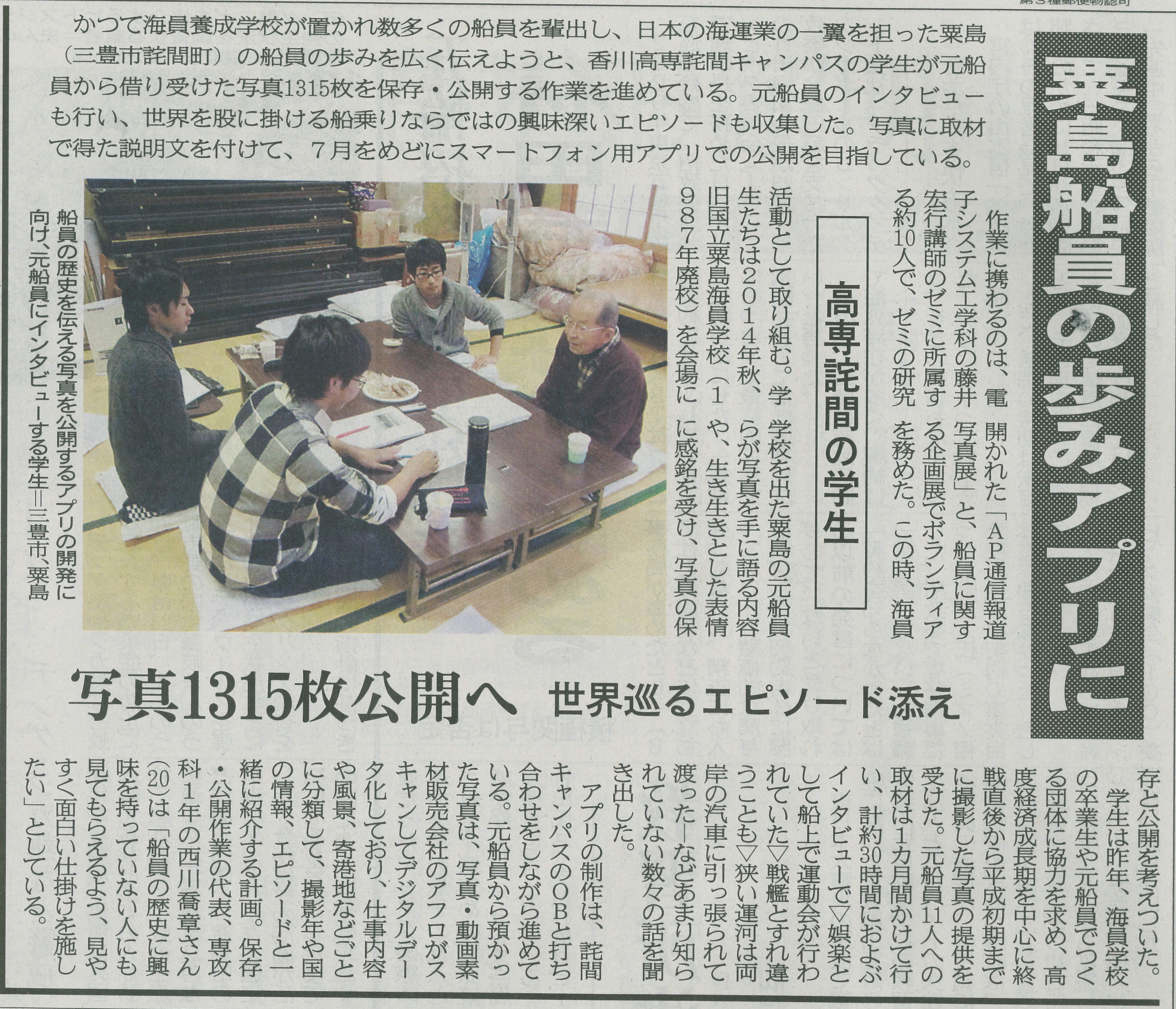 電子システム工学科藤井研究室が行っている「粟島船員OB資料アーカイブプロジェクト」が、四国新聞社の取材を受けました。