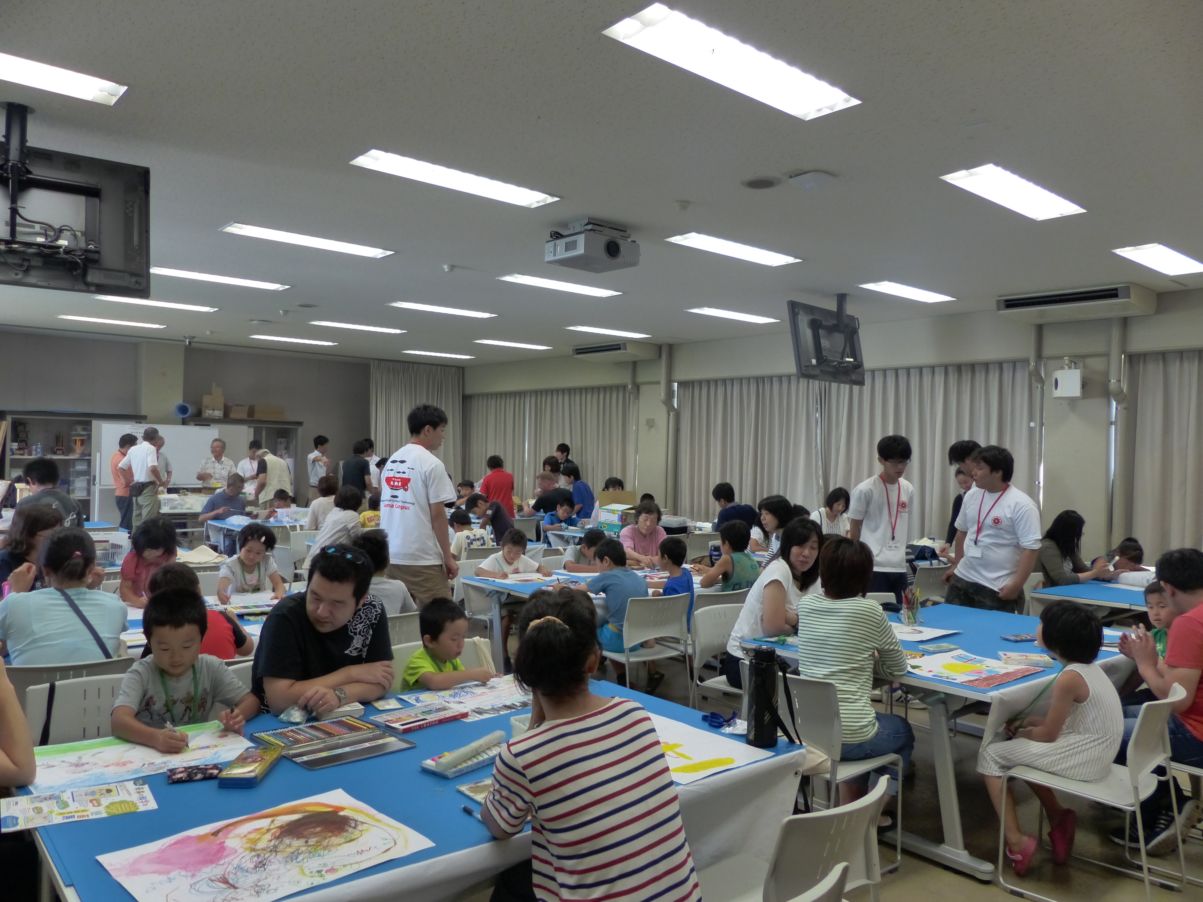 絵画教室は、下書きを終えて色塗りをする子ども達が多く、机の上がどんどんカラフルになってきました。友達と楽しそうに、互いのアイデアを話している子ども達の姿も見受けられました。