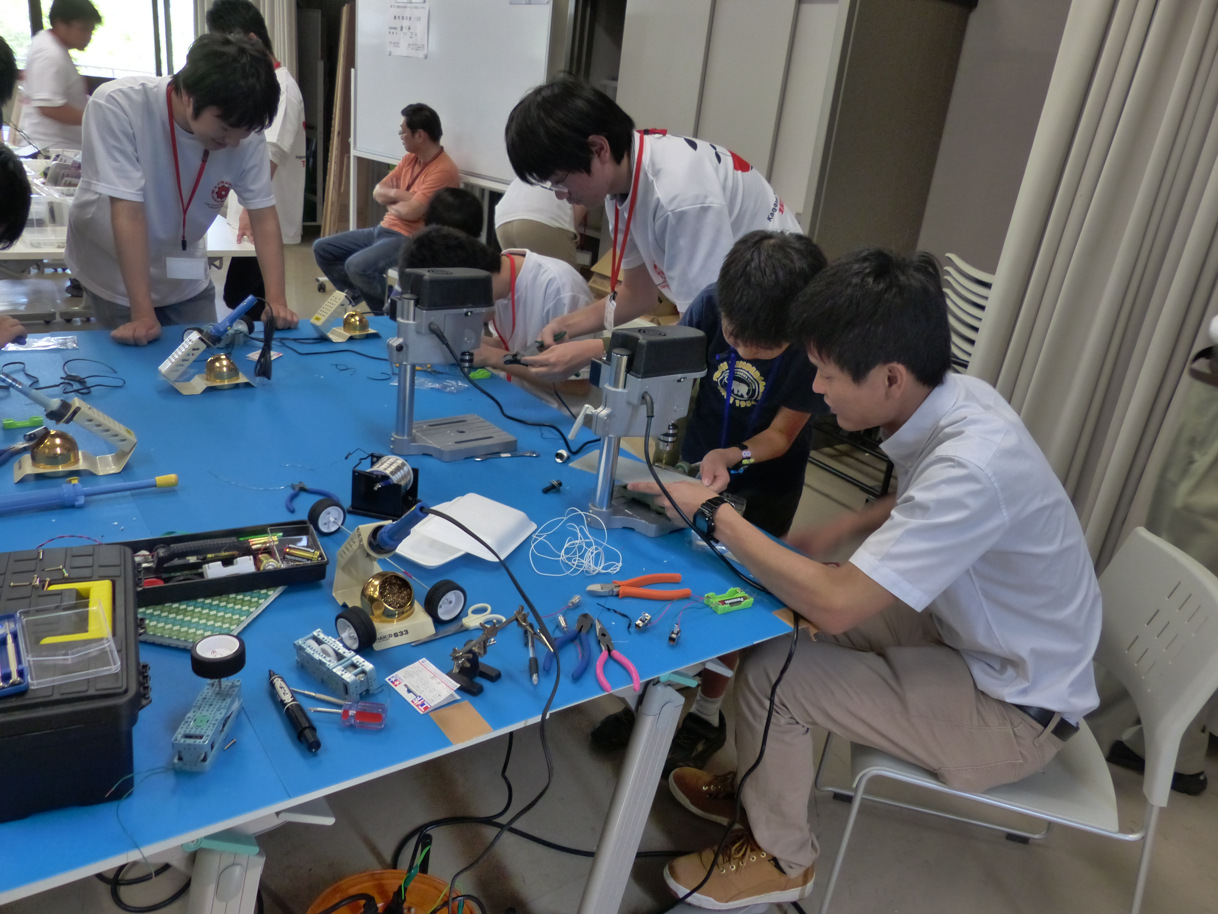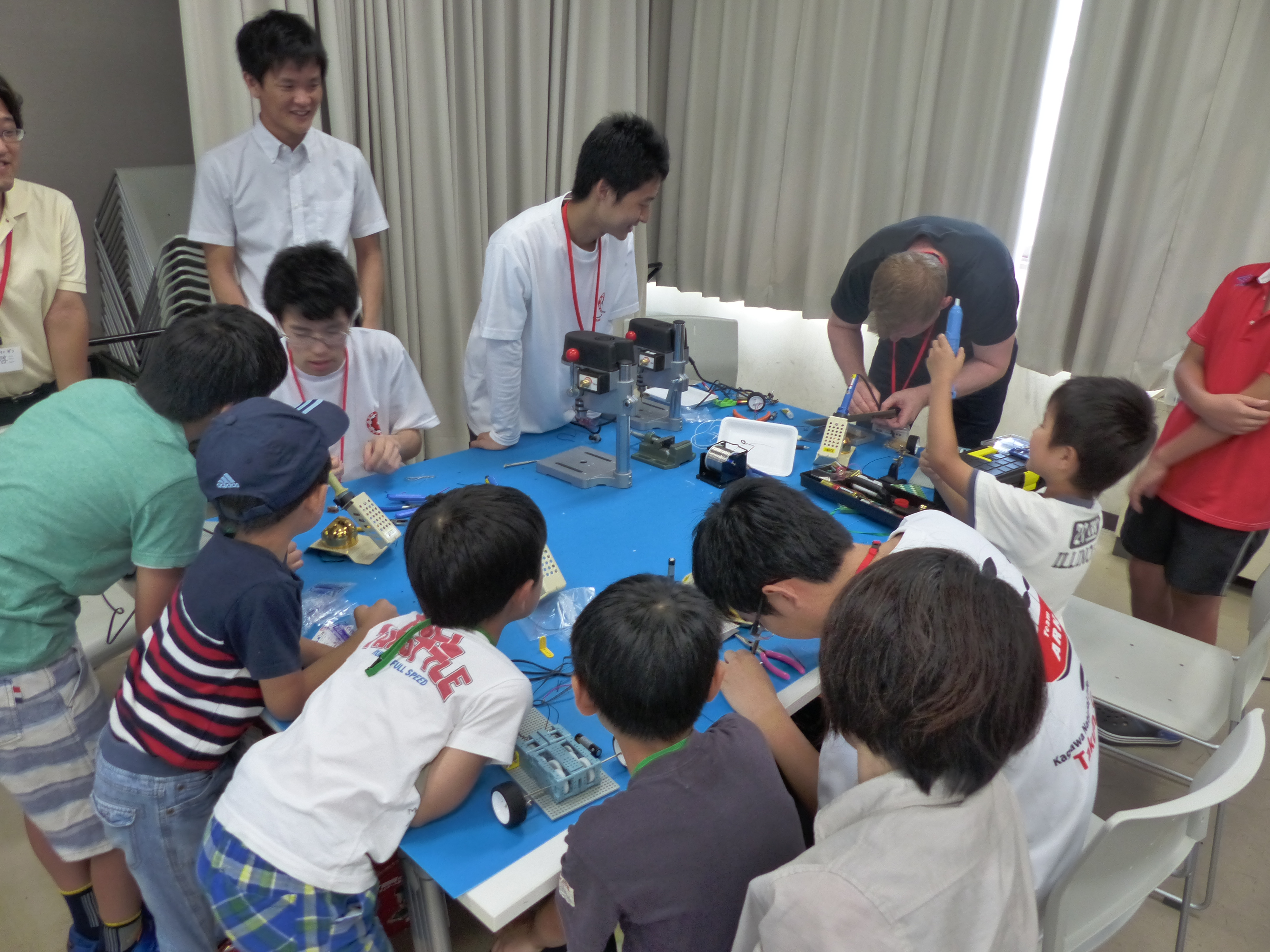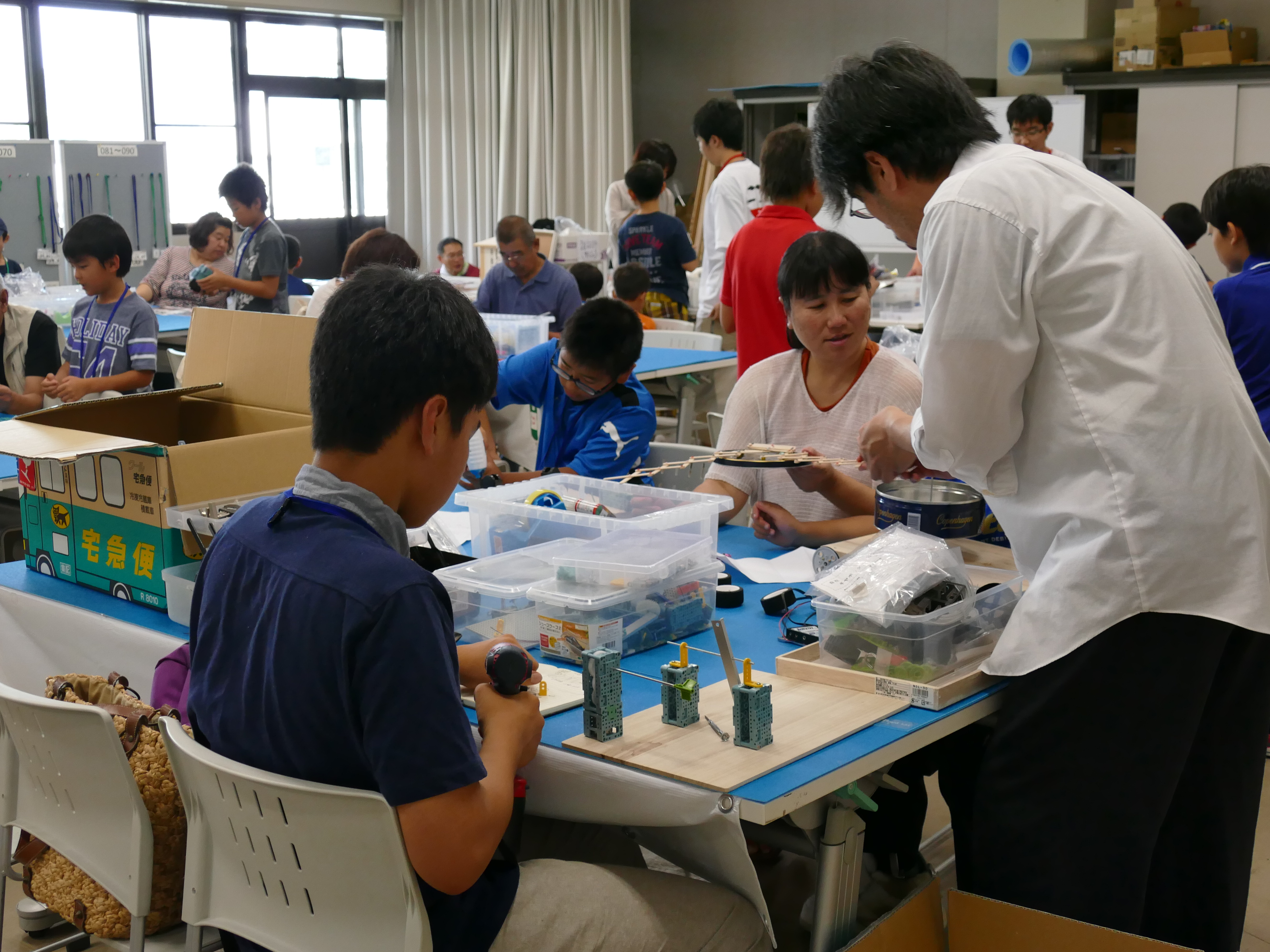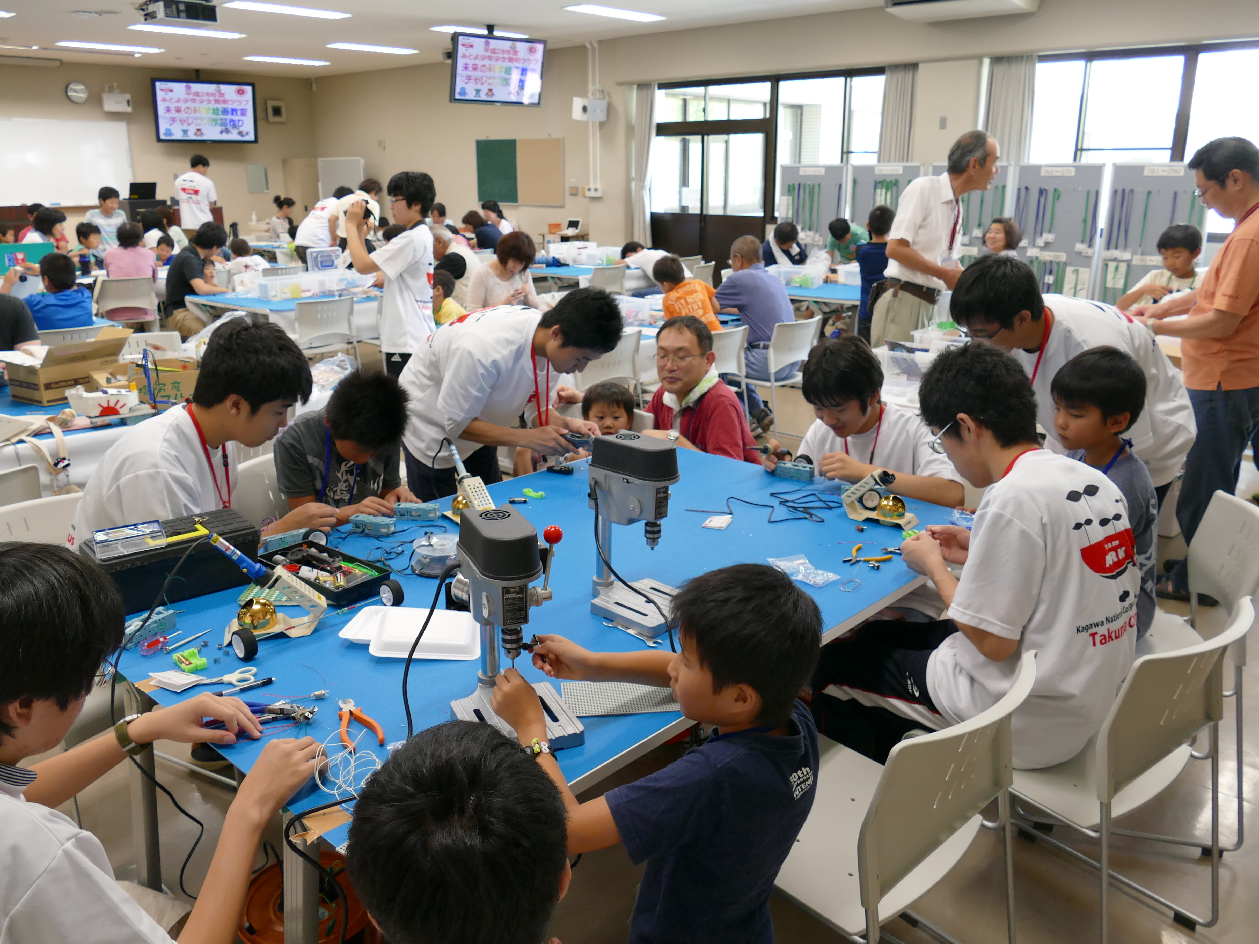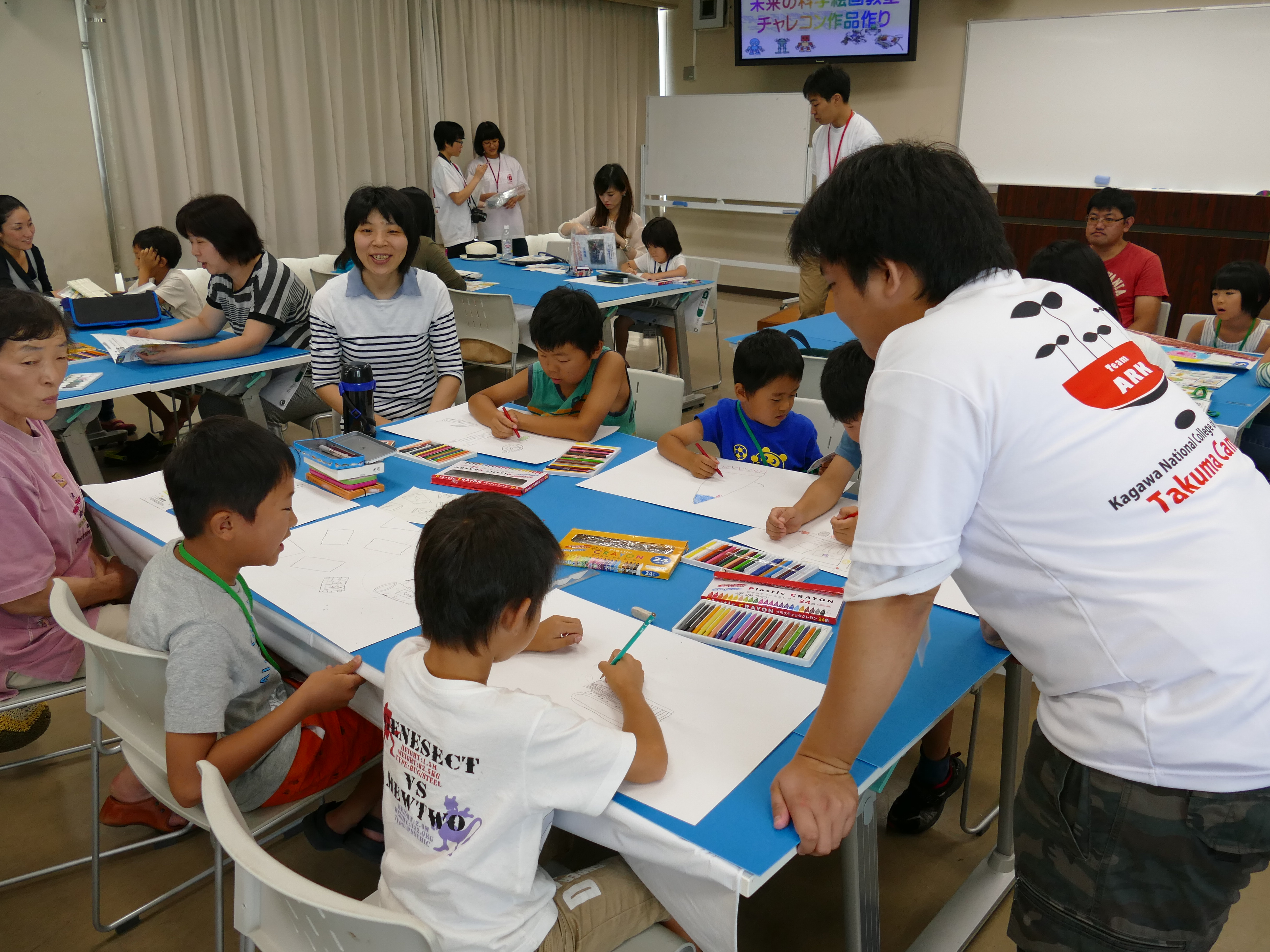 7月2日(土)、詫間キャンパスにおいて三豊市少年少女発明クラブ「未来の科学絵画教室(2)・チャレコン作品づくり(2) 」が開催されました。今回の活動にも詫間キャンパスロボコンチーム「TEAM ARK」のメンバーが協力しました。