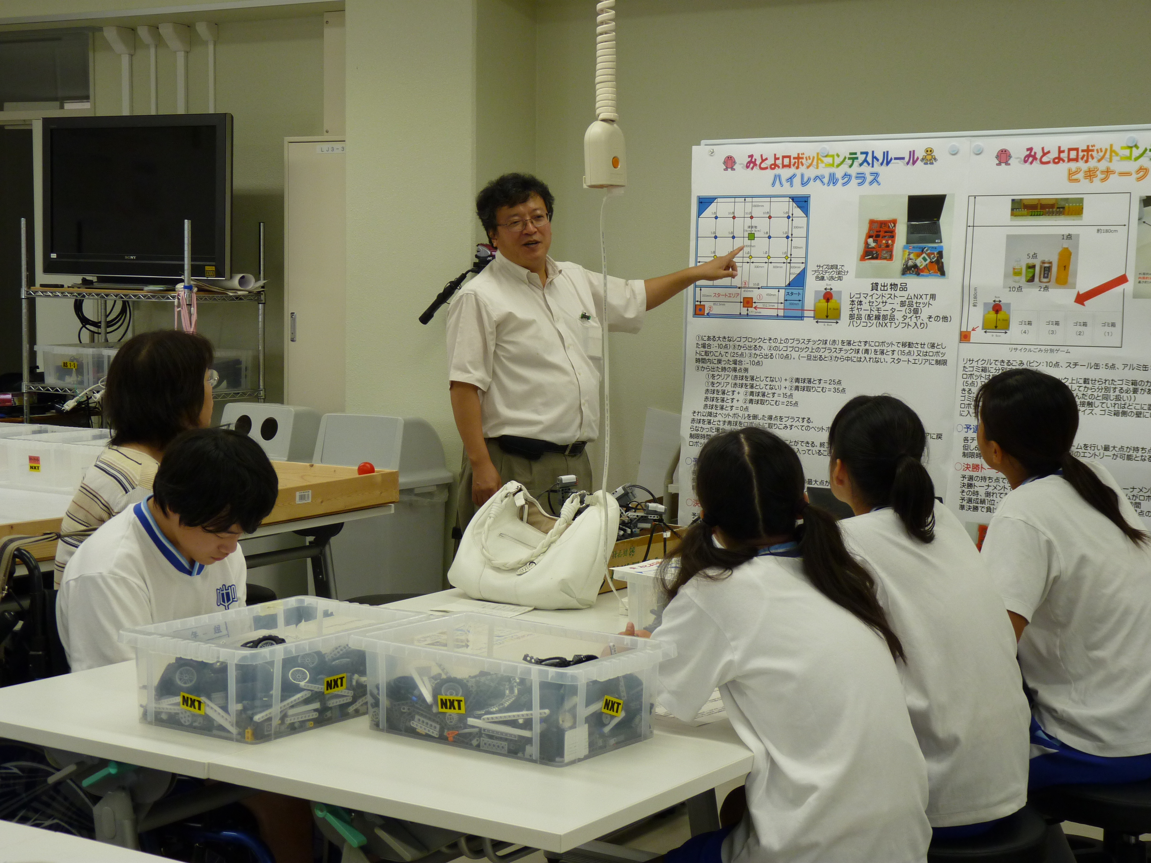 「みとよロボコン2013」は8月25(日)に本校で開催します。次回は17日(土)午前10時より2回目の説明会を行います。詳細は本校ホームページ「お知らせ」に掲載しています。興味のある方、参加したい方はぜひ2回目の説明会にお越しください。