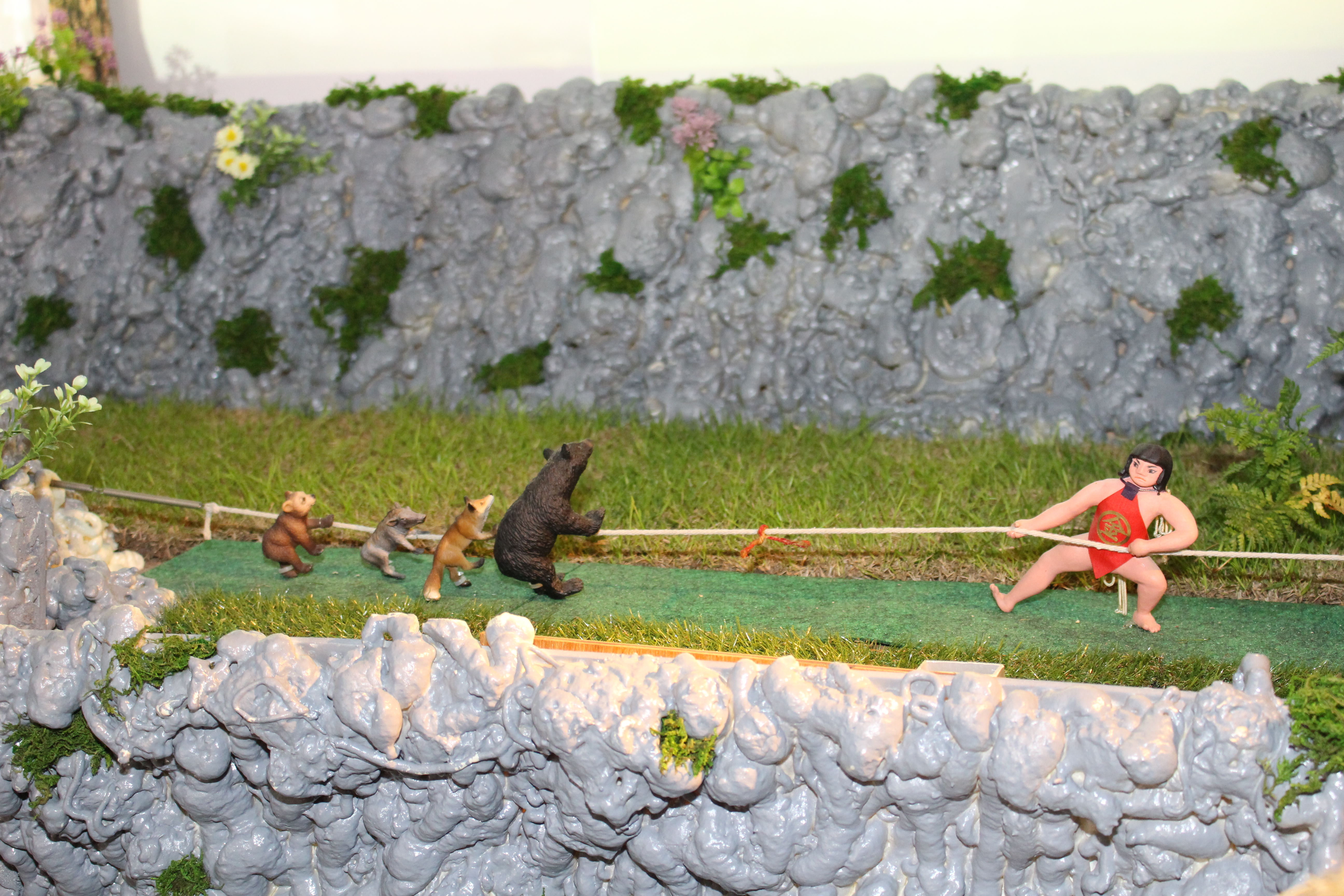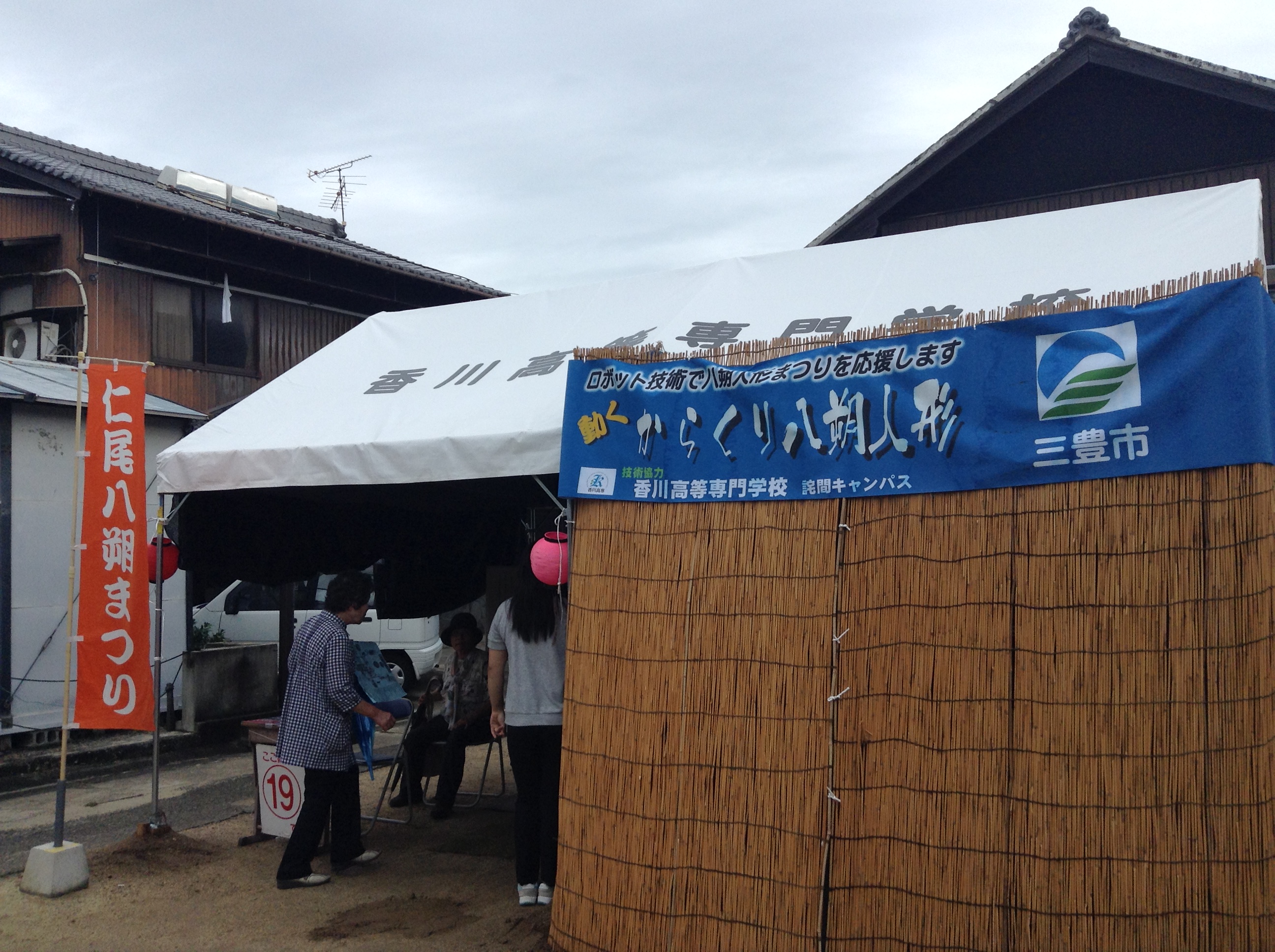 今年も詫間キャンパス技術教育支援室からは、仁尾町の方々と共同企画した「からくり八朔人形 金太郎」を展示しました。人形や舞台の作りは細部まで丁寧に製作されており、人形が動いたり、シーンが変わる度に歓声が沸き起こっていました。