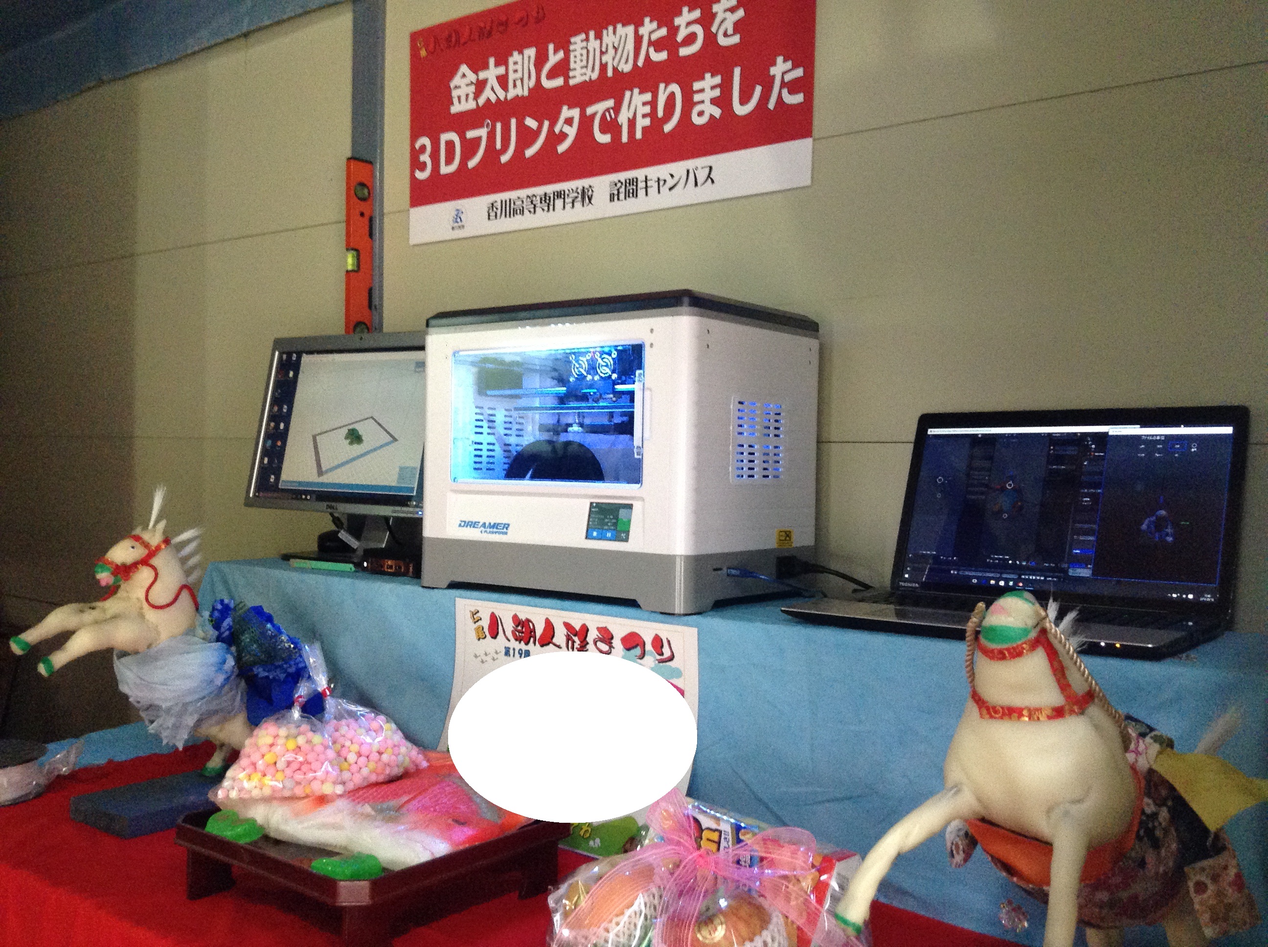 3Dプリンタを使った人形の製作過程も同時に展示し、興味深くプリンタの動きを眺める来場者も多数おられました。