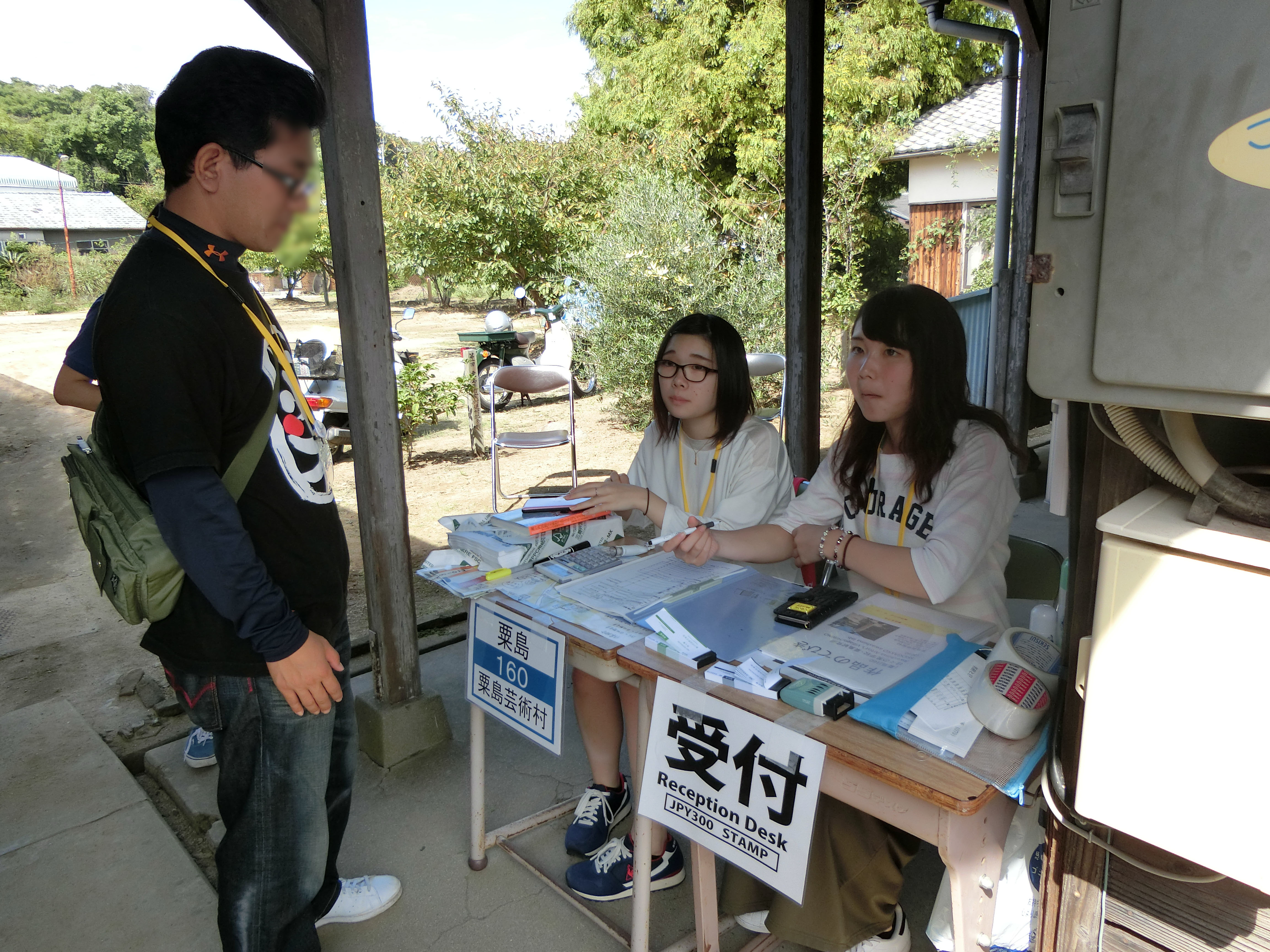 本校から参加したボランティア学生は、島内の案内や、受付などをこなし、来場したお客様に気持ち良く過ごしていただけるよう、おもてなしを行いました。