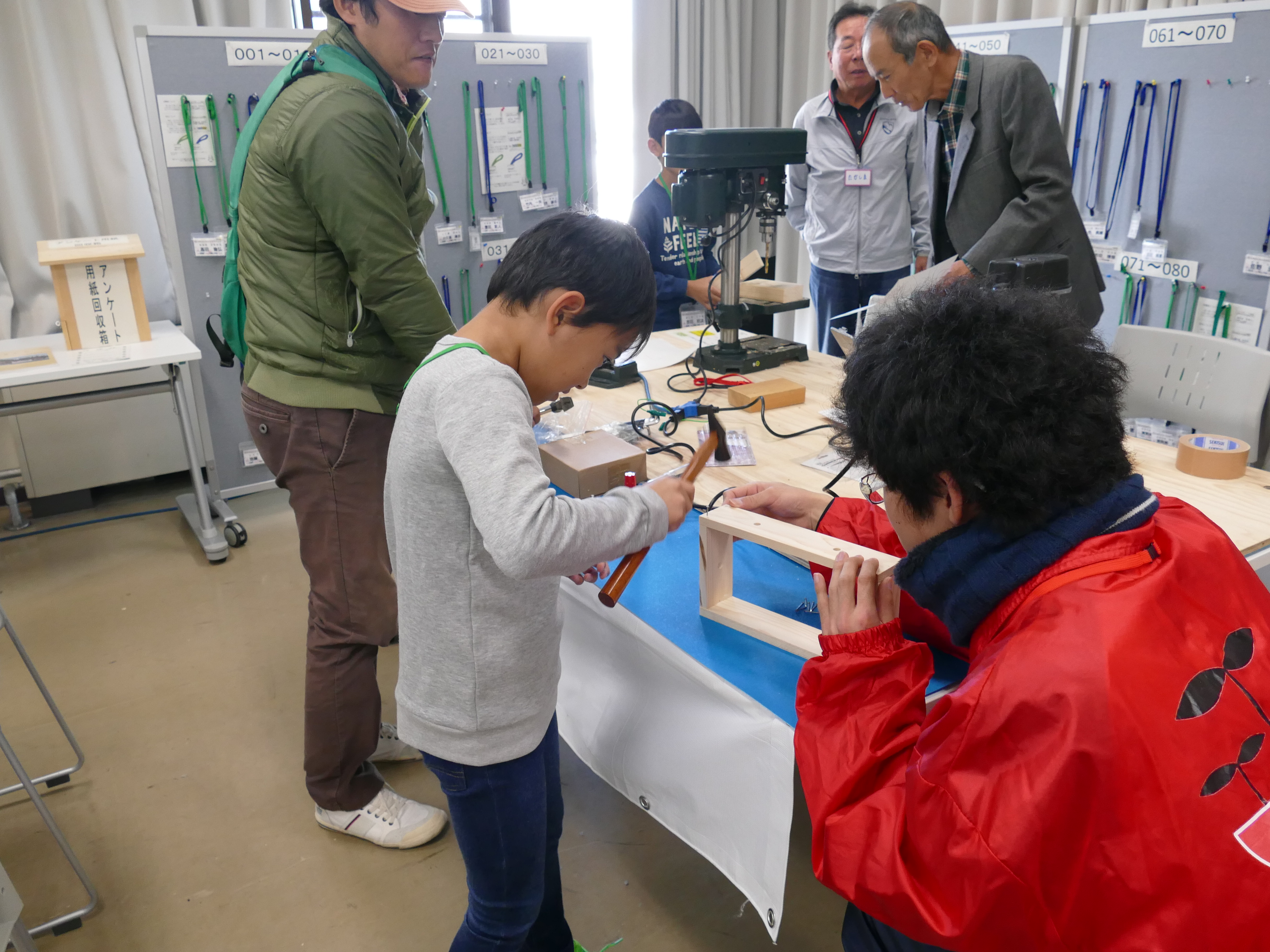 11月12日(土)午前9時~11時、詫間キャンパスにおいて三豊市少年少女発明クラブ「木工からくり教室(1) 」が開催されました。詫間キャンパスロボコンチーム「TEAM ARK」の学生がサポートしました。