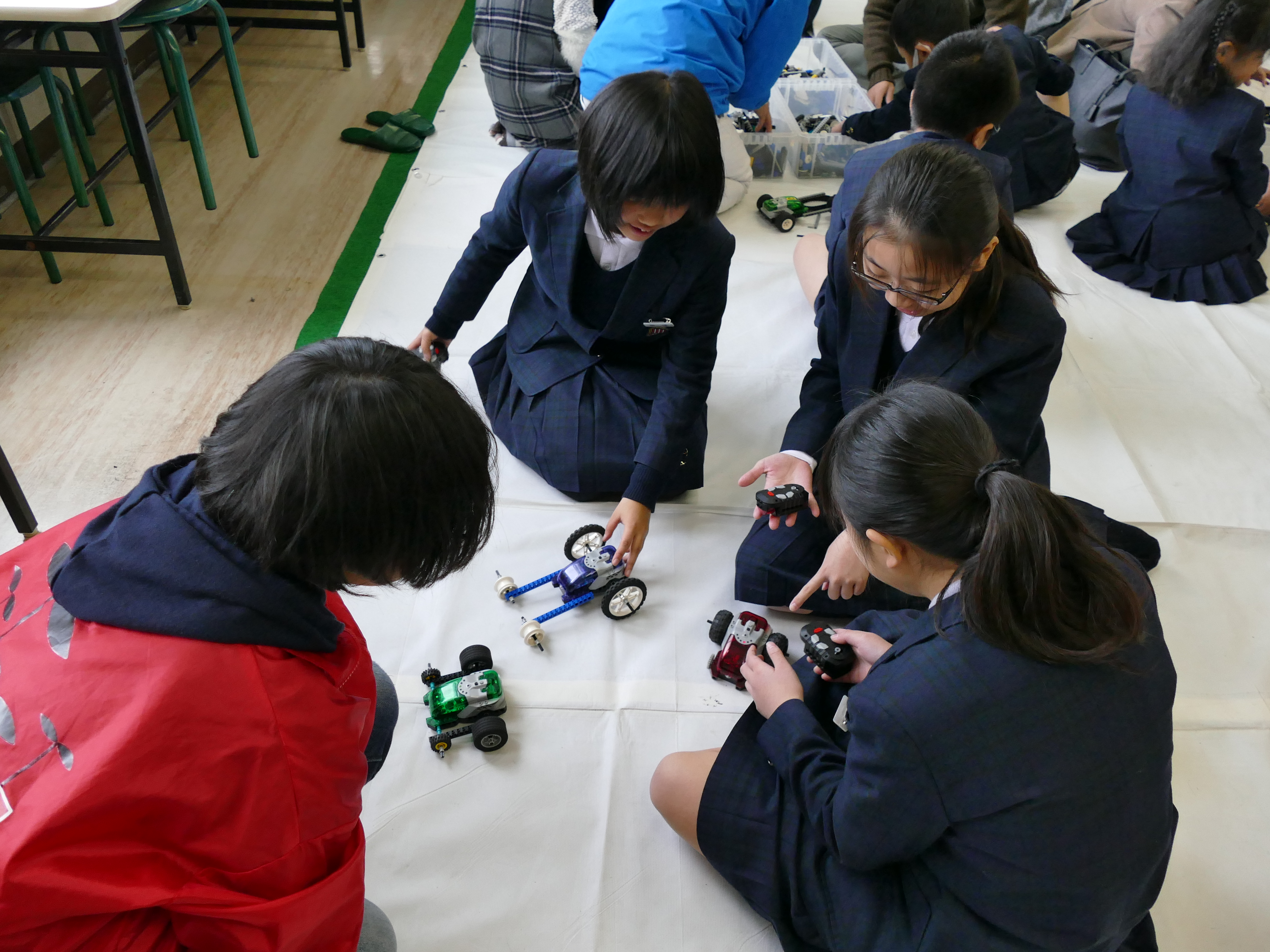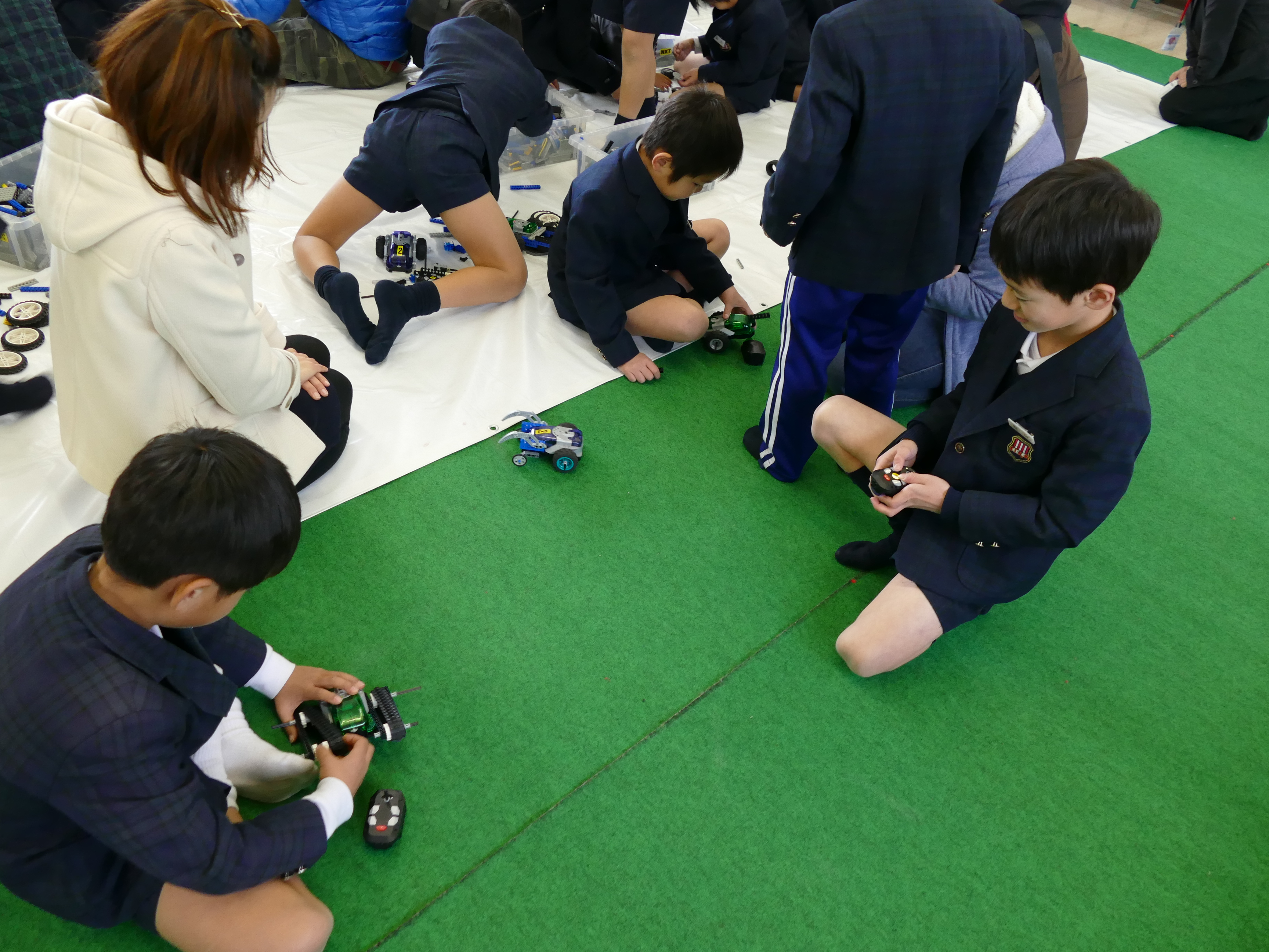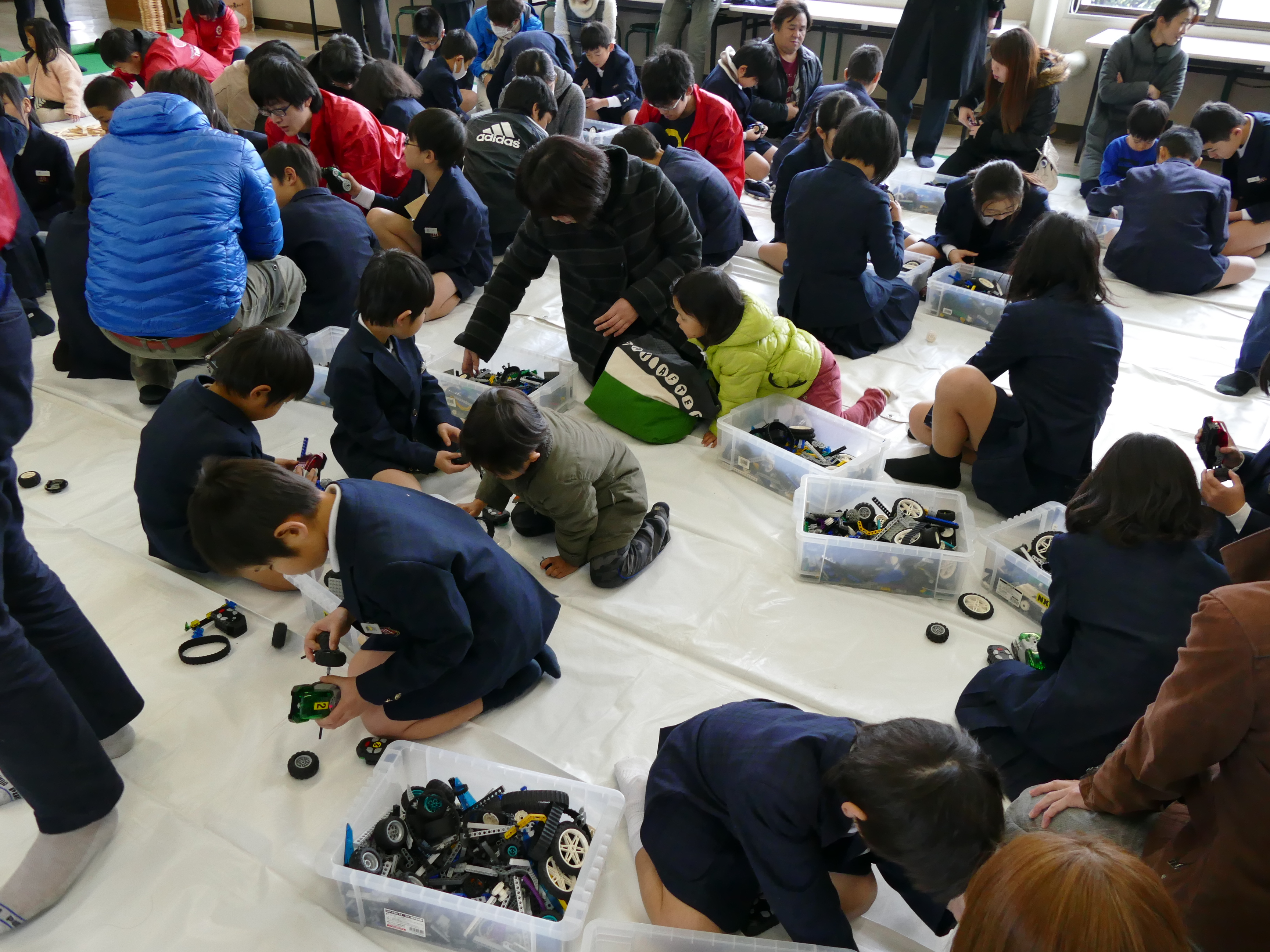 この催しは比地小学校の年間行事として開催されており、いくつかの体験活動の中から「簡単ロボット教室」を希望した子ども達と保護者の方に体験していただきました。