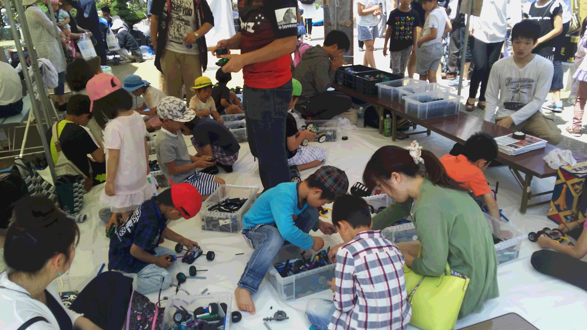 レゴブロックを組み合わせて赤外線リモコンで動かすレゴスパイボットは使うパーツの種類によって様々な形や動きのロボットを作ることができます。この日もたくさんの子ども達が自分の好きなロボットを製作し、作ったロボットで友達と対決をしたり、個々に走らせたりして楽しんでいました。
