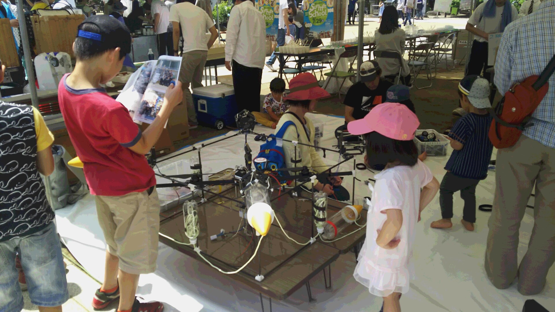 また、水難救助用のドローンの展示も行い、興味をもって質問をしてくれた来場者の方に、TEAM ARKの学生が説明を行いました。