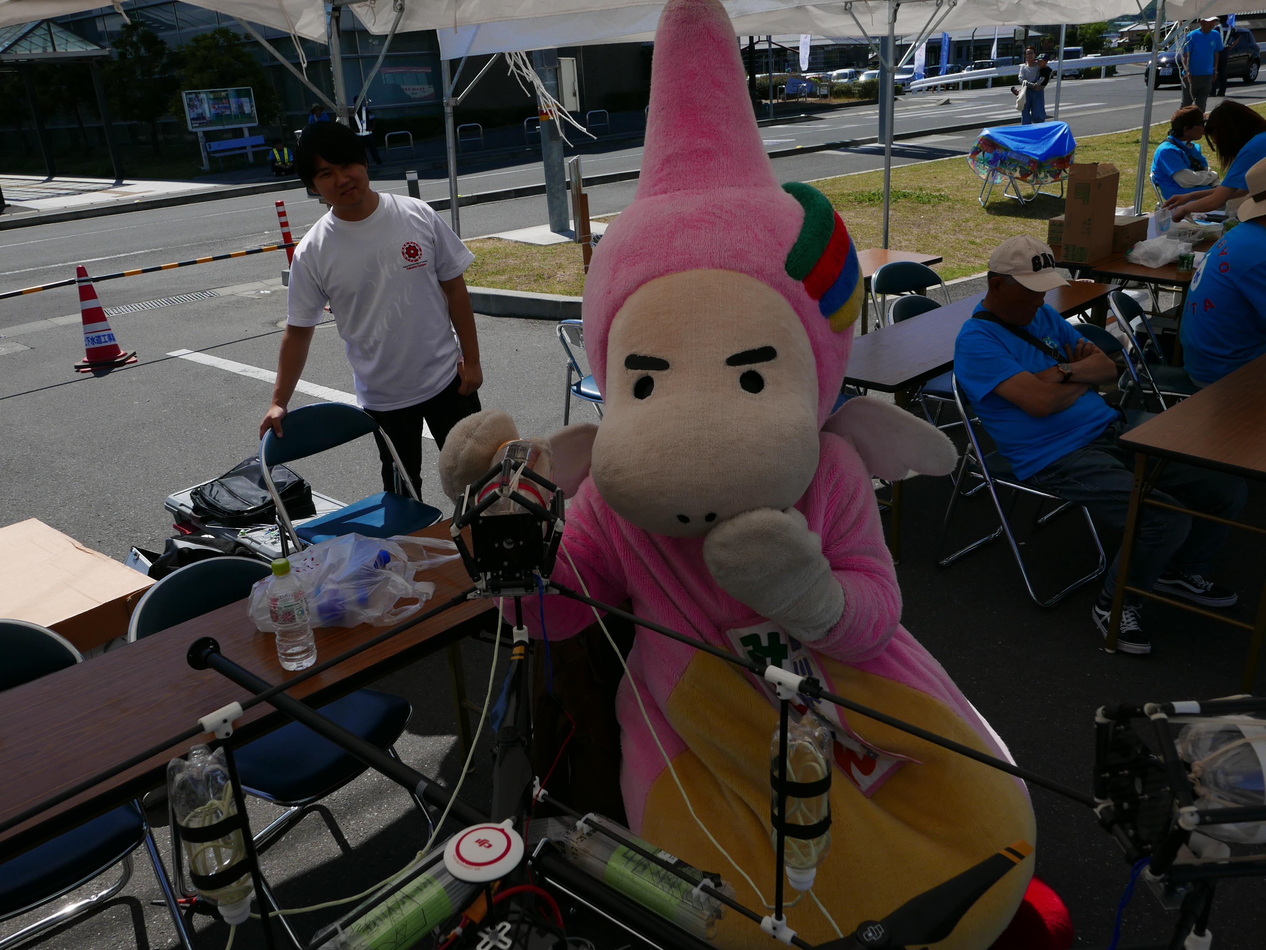 三豊市キャラクター「みとよん」も水難救助用ドローンに興味深々です!