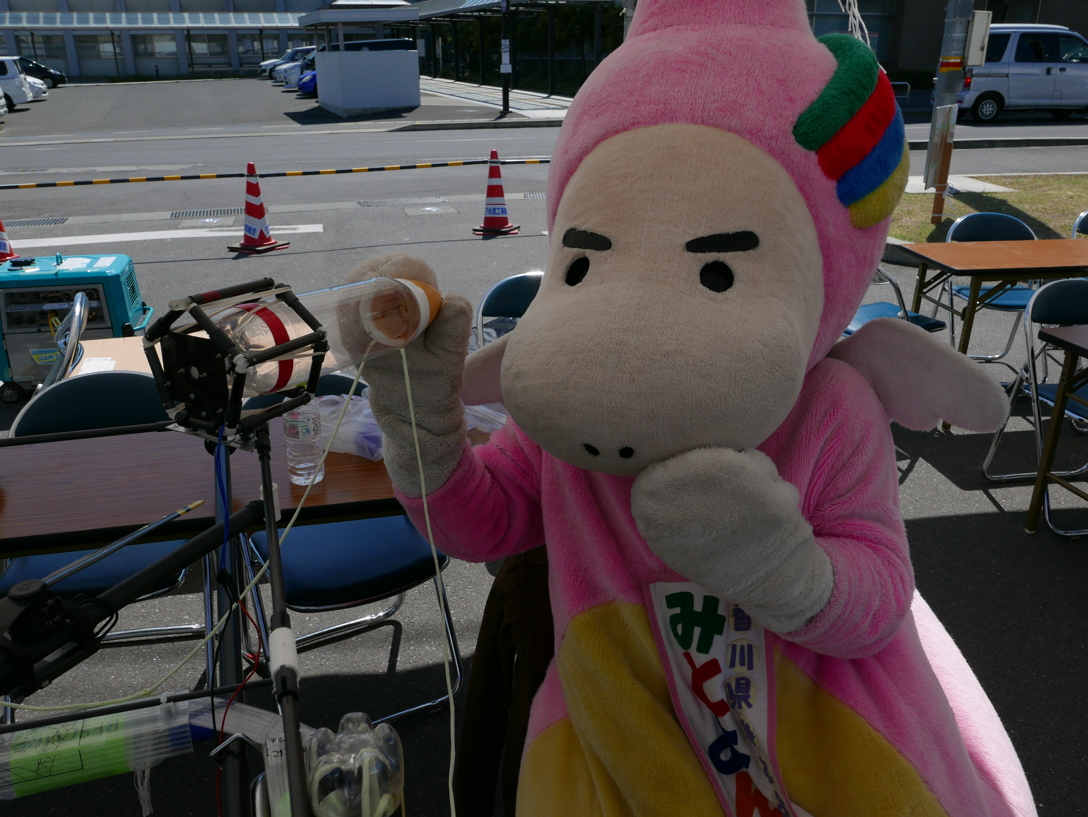 三豊市のキャラクター「みとよん」も興味津々で見てくれました。