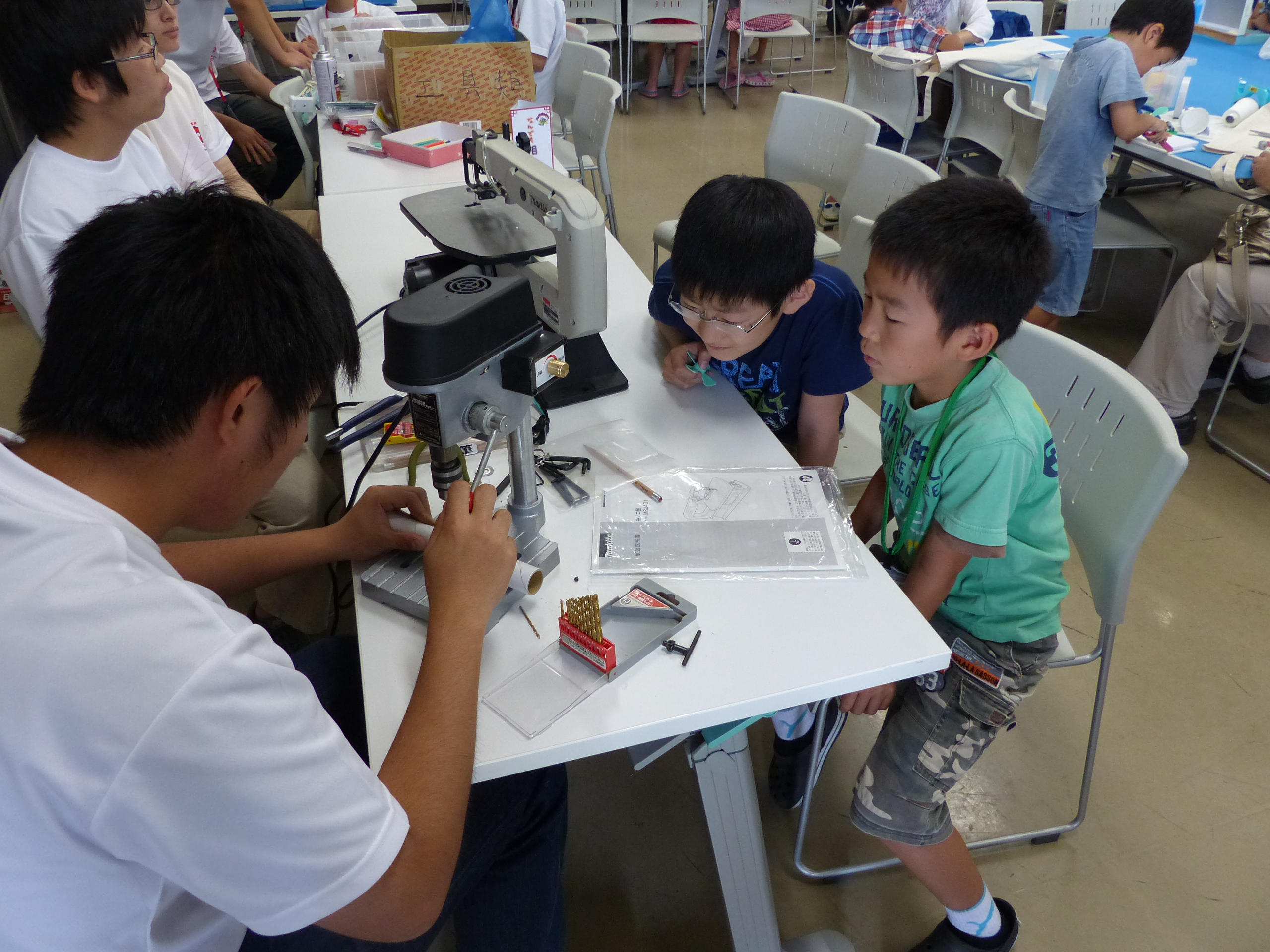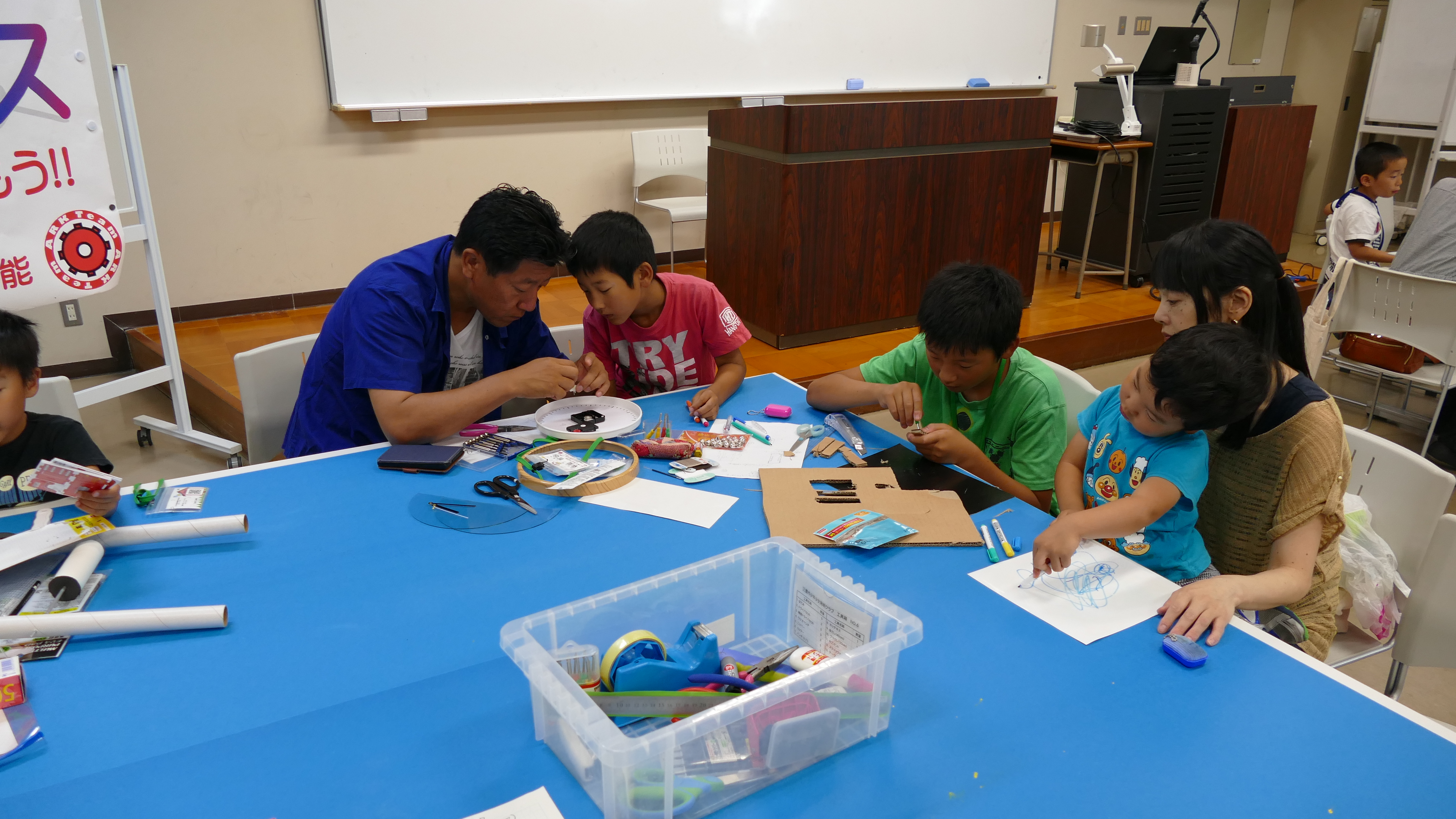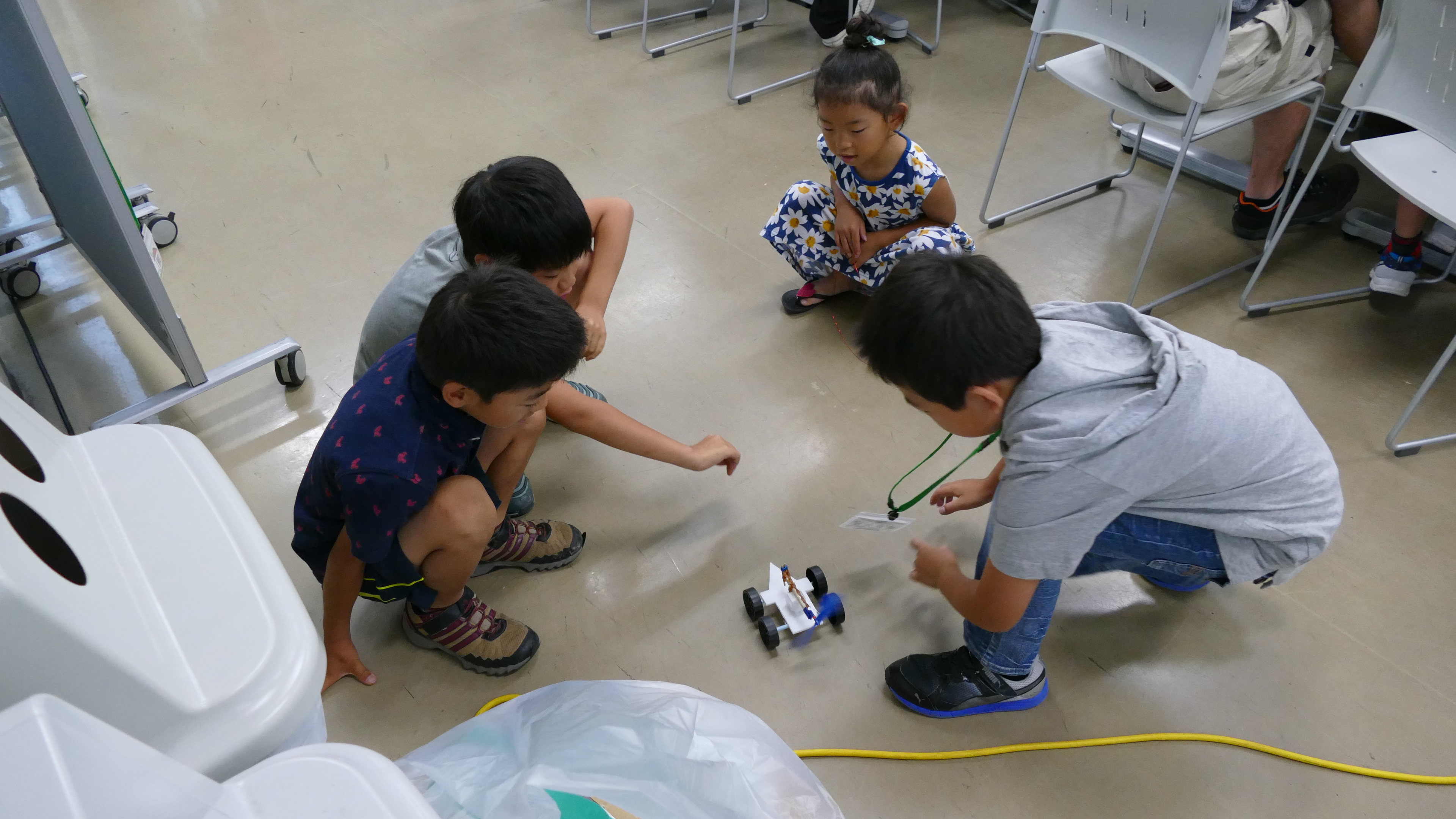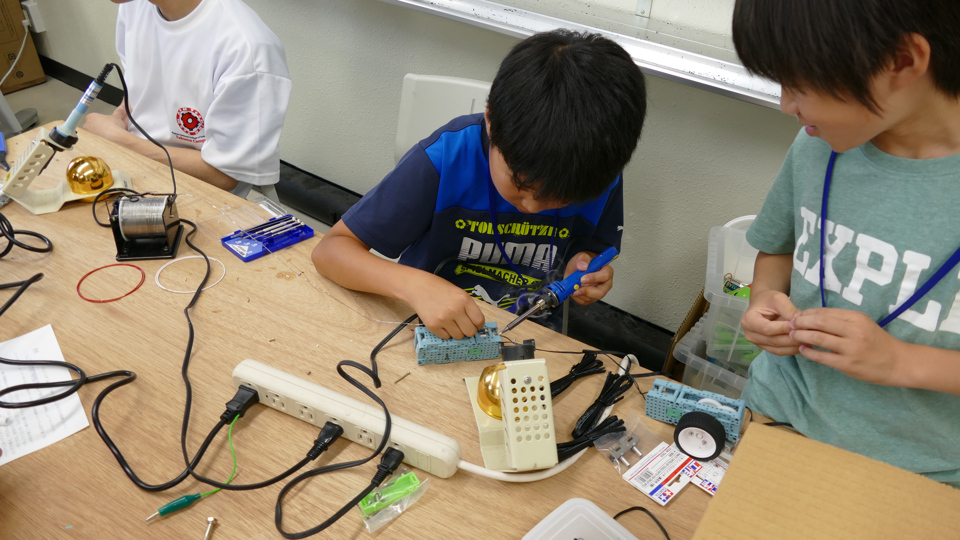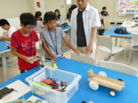 6月24日(土)、詫間キャンパスにおいて三豊市少年少女発明クラブ「発明工作コース(4)・チャレコンコース(4)」が開催されました。今回の活動は詫間キャンパスロボコンチーム「TEAM ARK」のメンバーが協力しました。