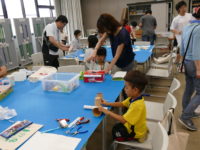 引き続き発明くふう展の作品づくりを行いました。自分たちのアイデアを形にするために時間いっぱい工作を行いました。難しい作業は、学生や指導員、保護者の力を借りながら、困ったり悩んだりした時はアドバイスをもらいながら進めました。
