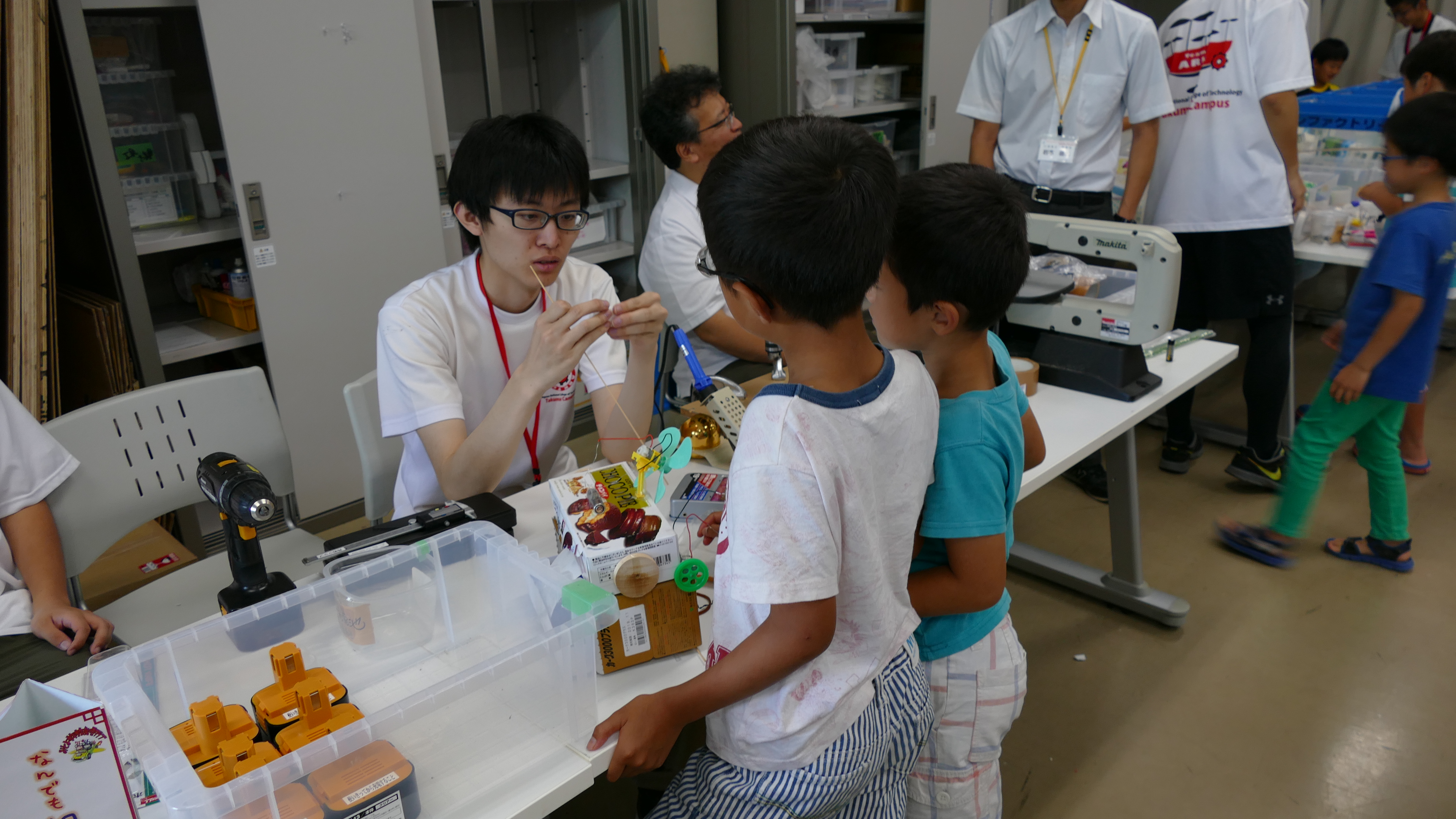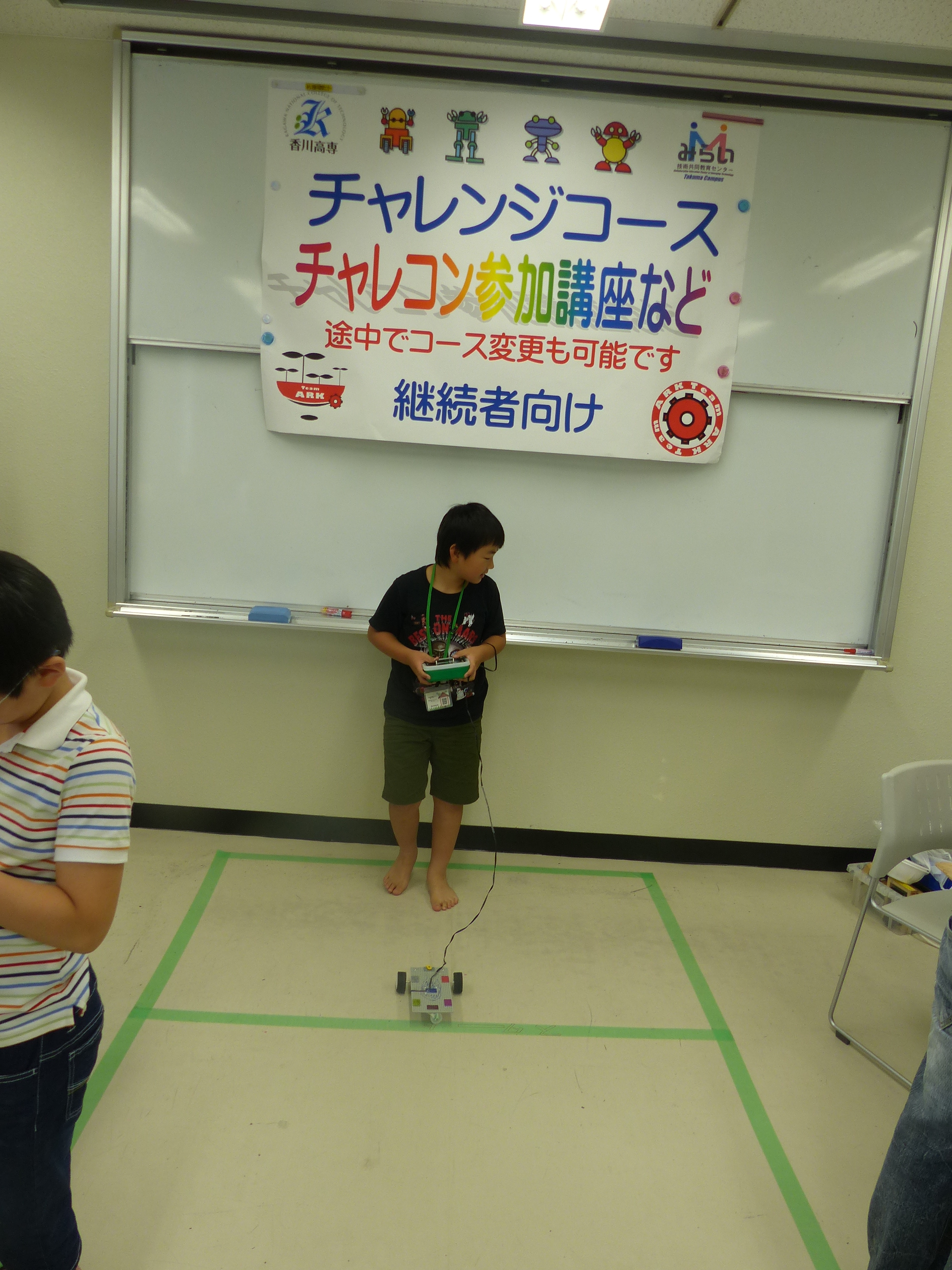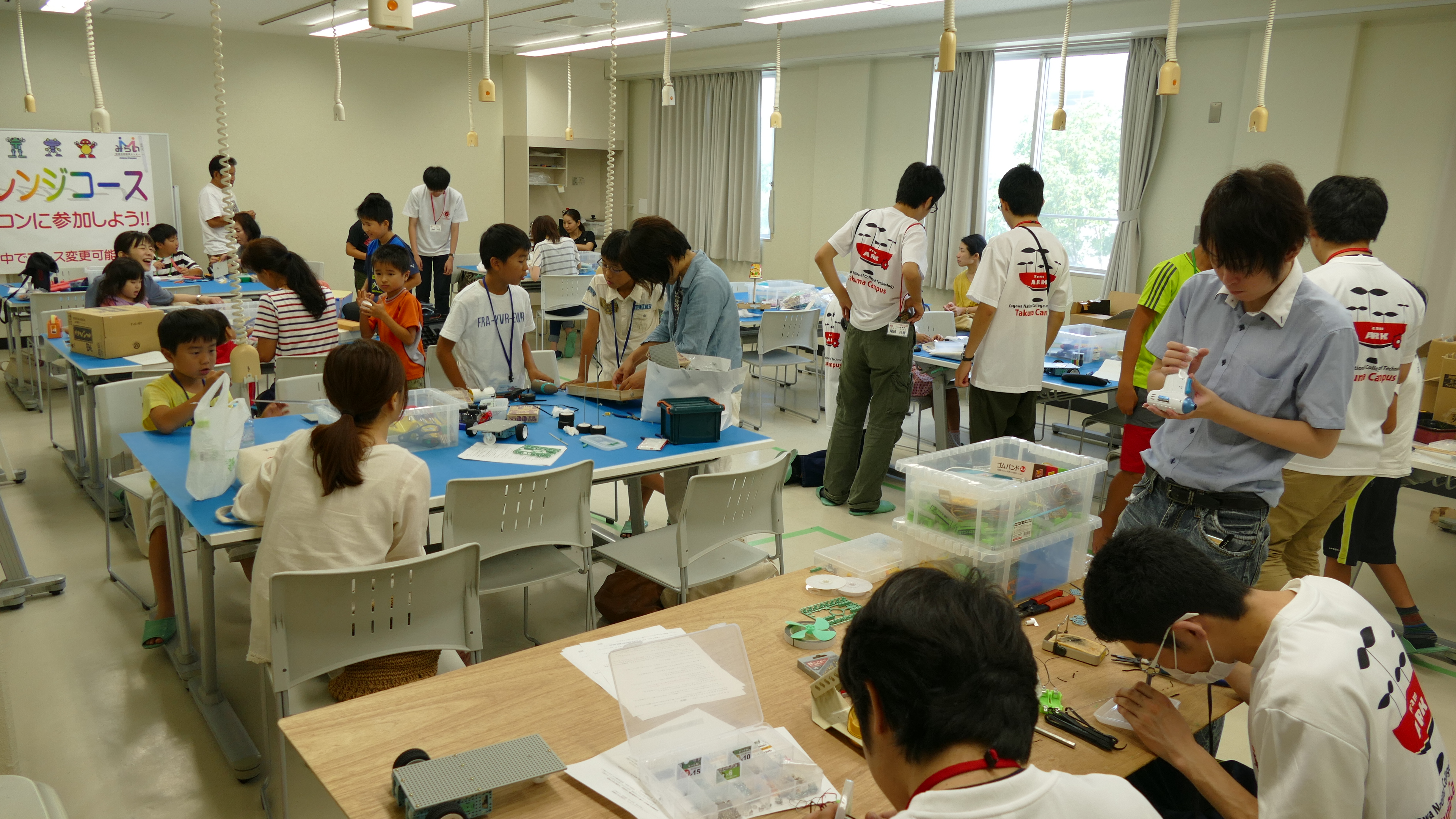 7月1日(土)、詫間キャンパスにおいて三豊市少年少女発明クラブ「発明工作コース(5)・チャレコンコース(5)」が開催されました。今回も詫間キャンパスロボコンチーム「TEAM ARK」のメンバーが協力しました。