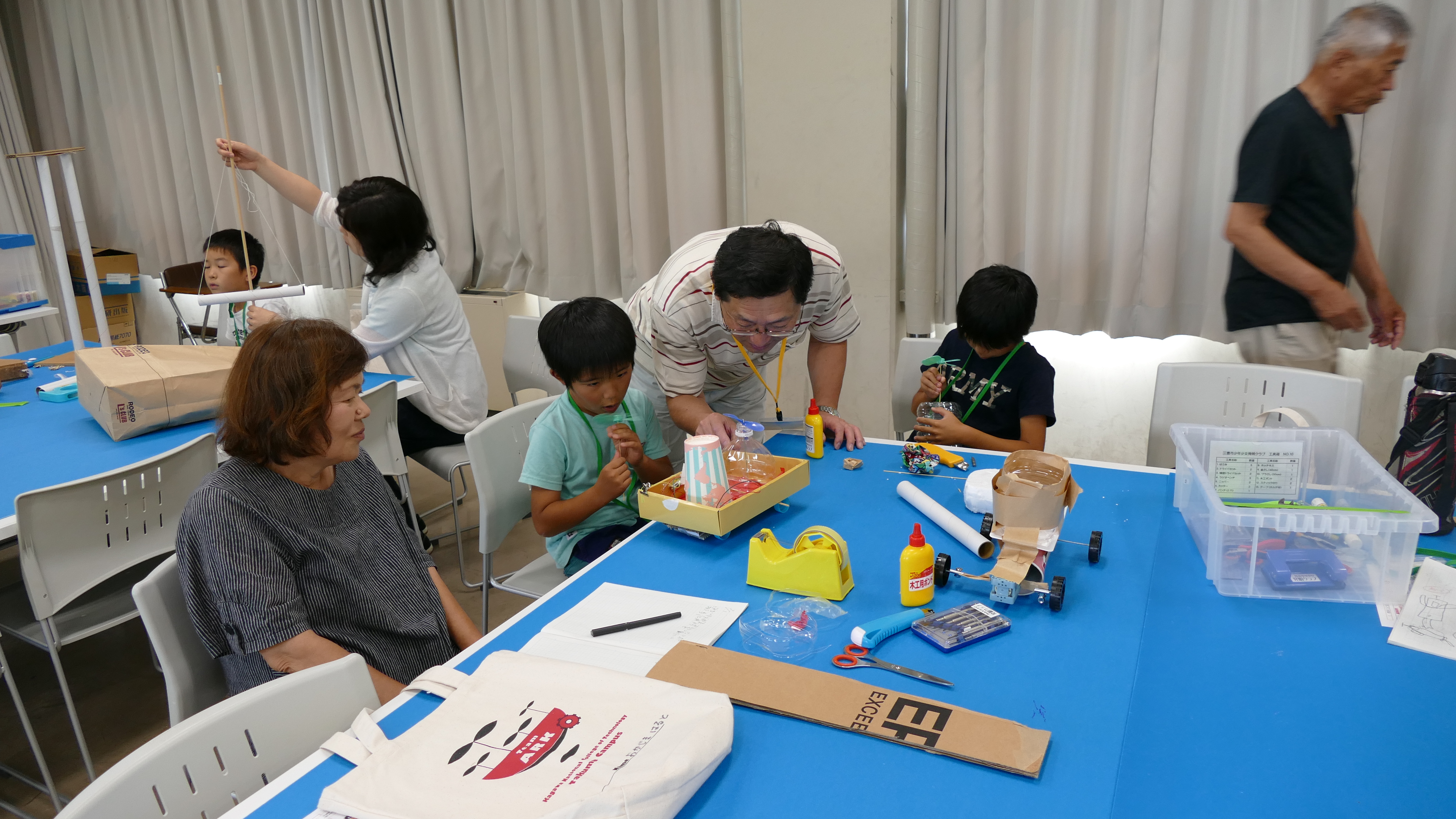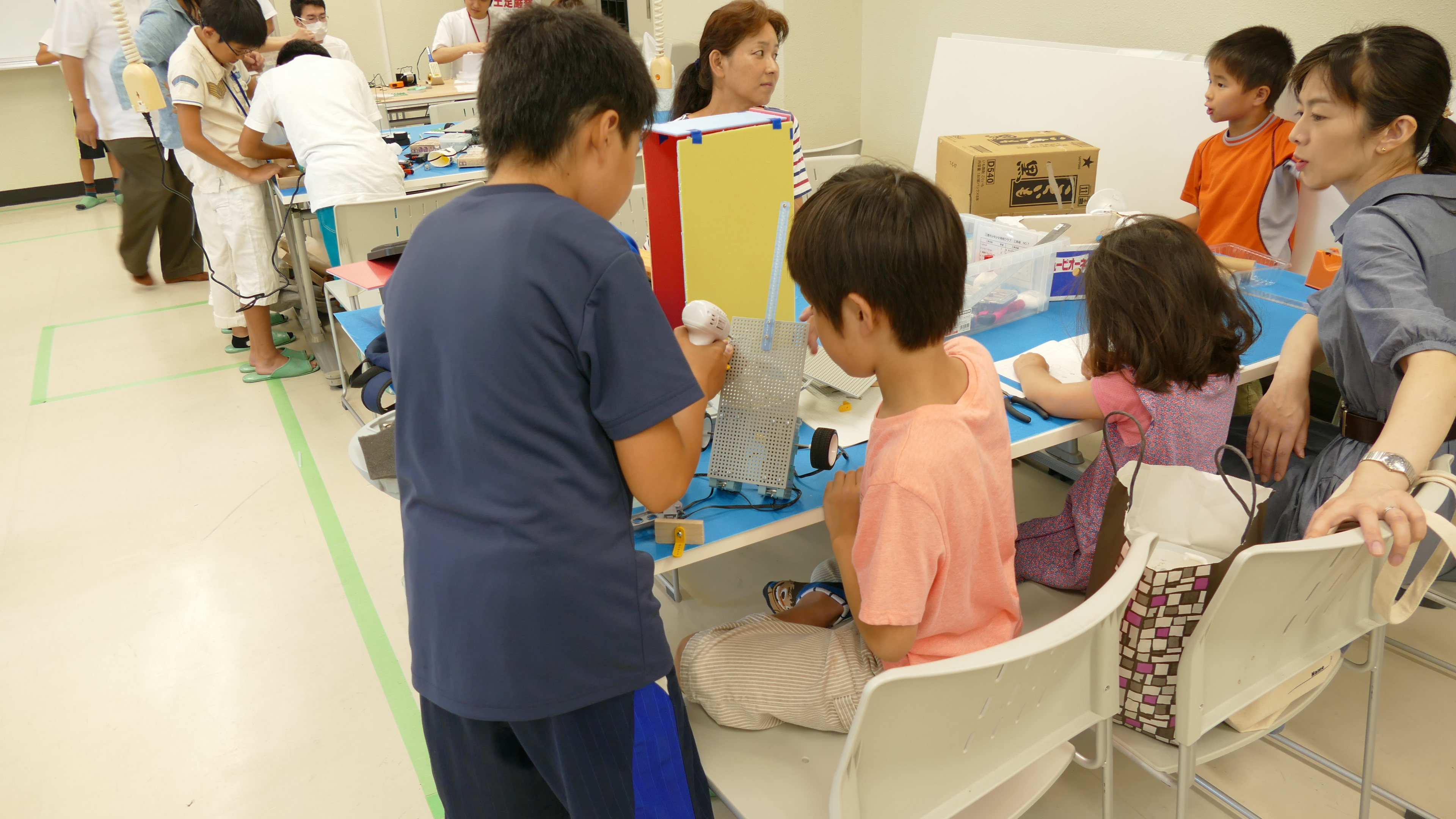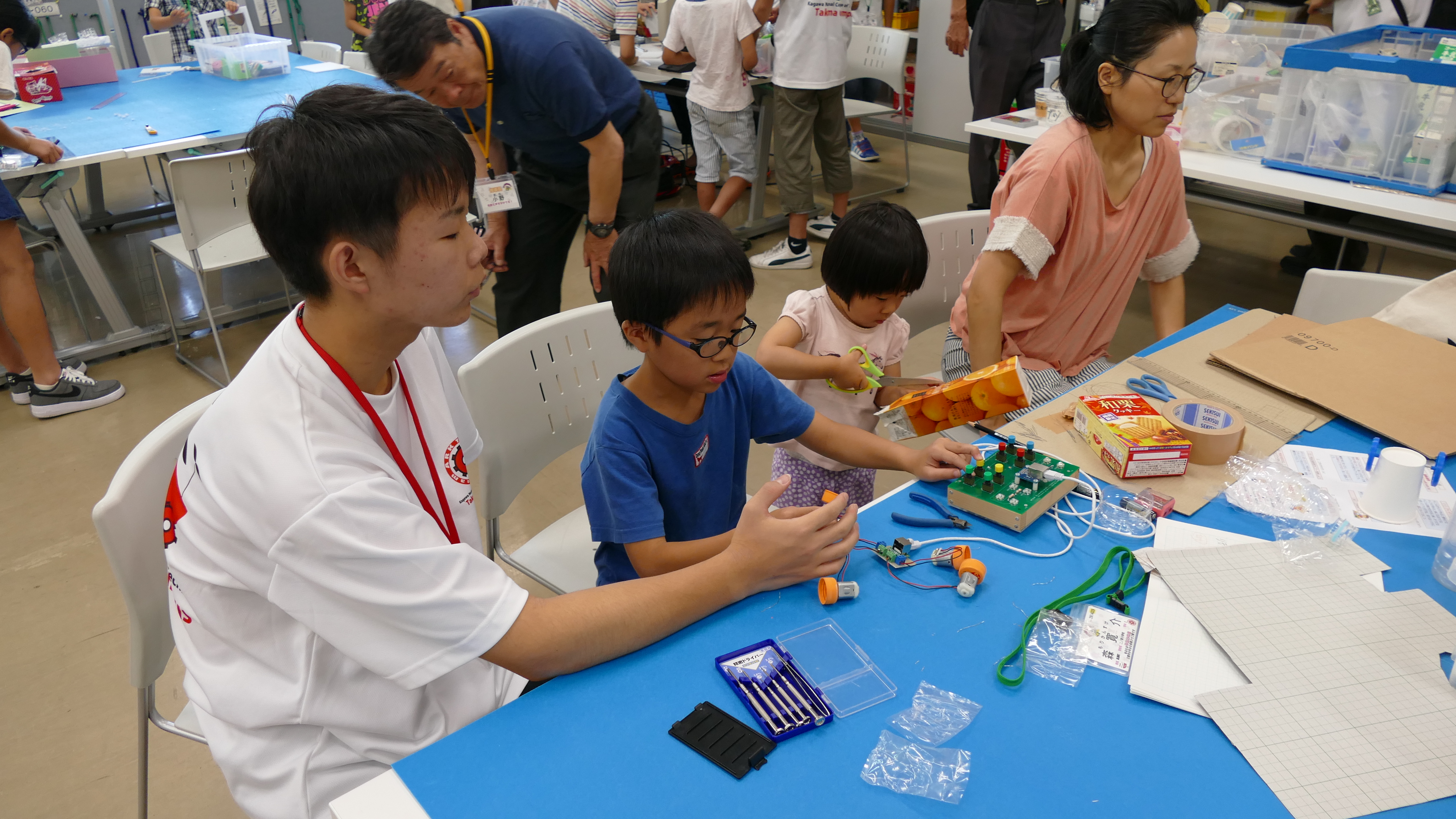 7月1日(土)、詫間キャンパスにおいて三豊市少年少女発明クラブ「発明工作コース(5)・チャレコンコース(5)」が開催されました。今回も詫間キャンパスロボコンチーム「TEAM ARK」のメンバーが協力しました。