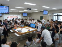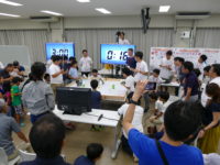ビギナークラス(小・6チーム)は、リモコン操縦型のロボットで、立てたペットボトルに紙コップをかぶせて得点を競います。操作力に加え判断力も必要となるルールの下、小学生とは思えない高専ロボコン並みの白熱した攻防戦が繰り広げられていました。
