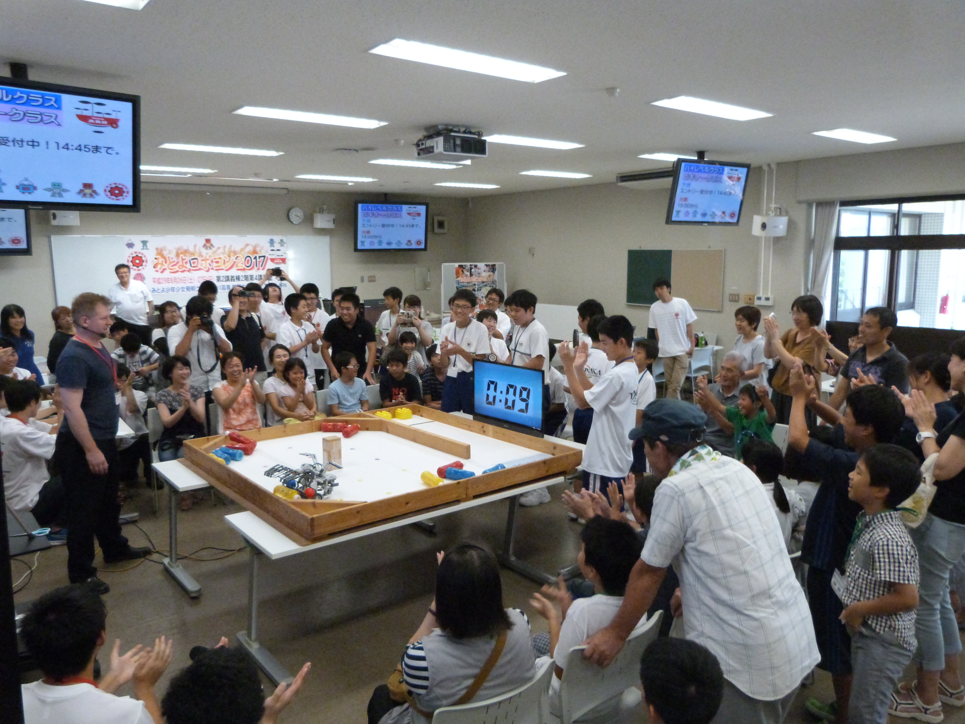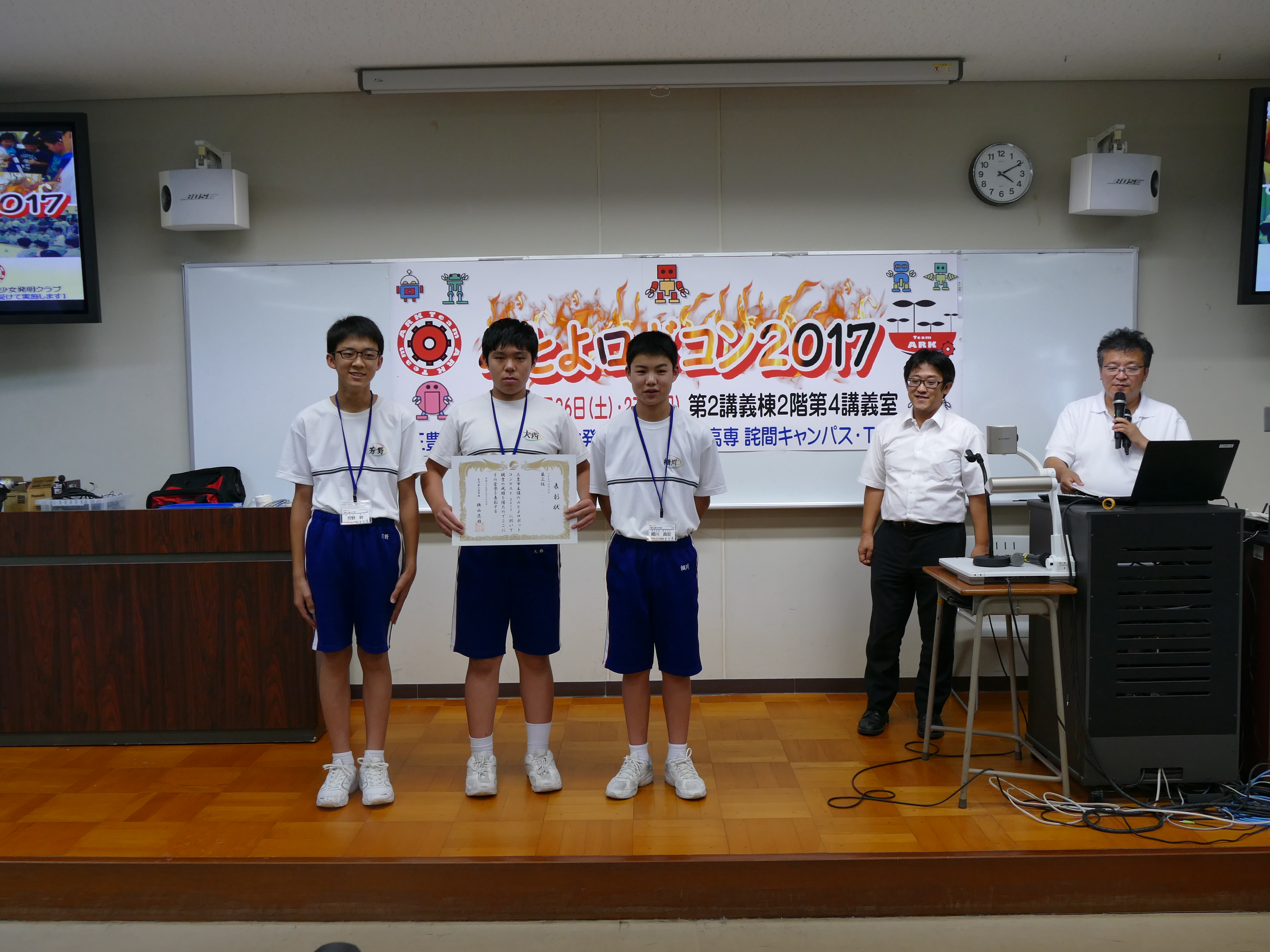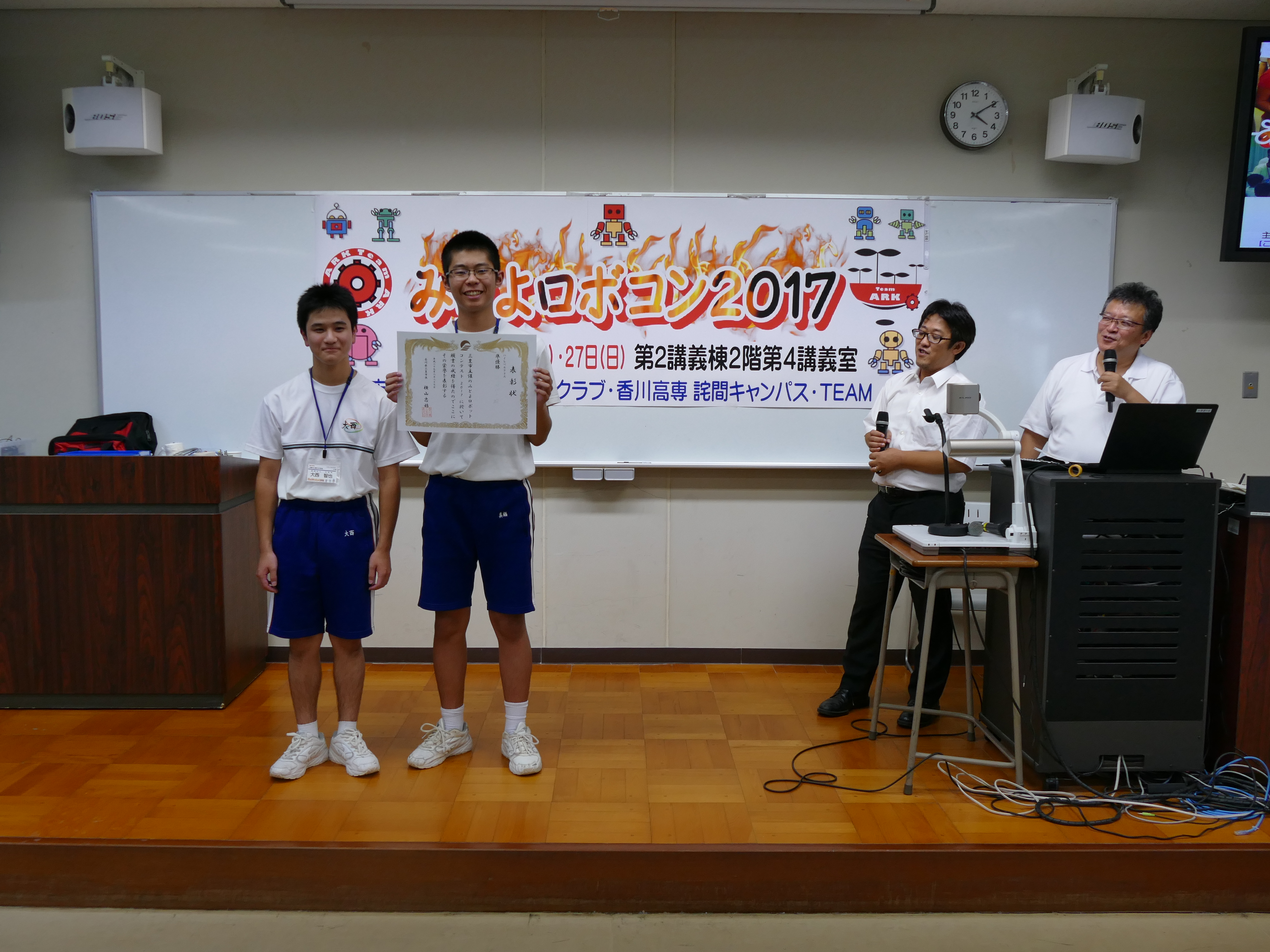 8月26日(土)、27日(日)に詫間キャンパス第二講義棟第四講義室において、三豊市主催の「みとよロボコン2017」を開催し、TEAM ARKの学生が競技の運営を行いました。