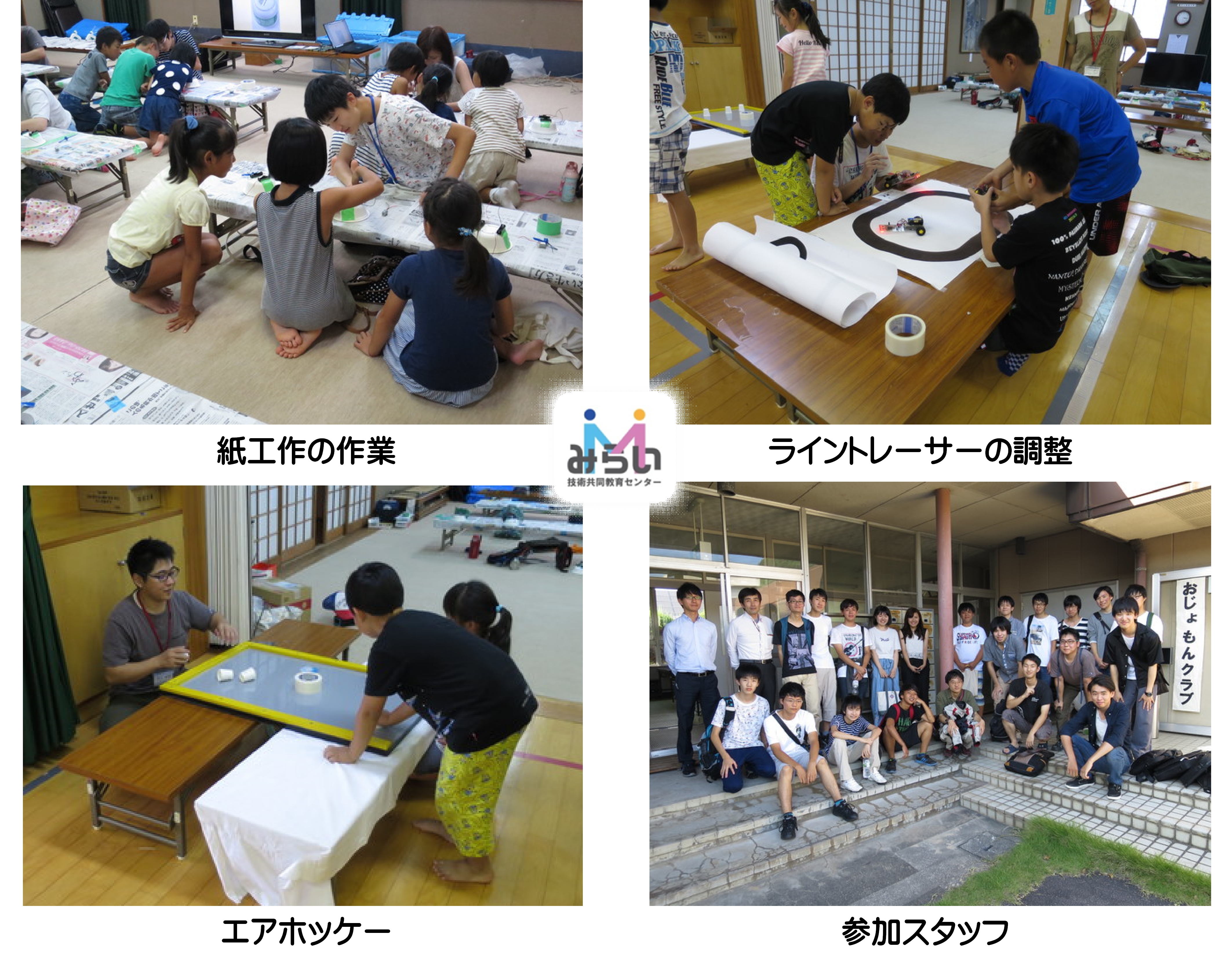 高学年(ラインとレーサー)と低学年(ホバークラフト)に分けてものづくり教室を行いました。