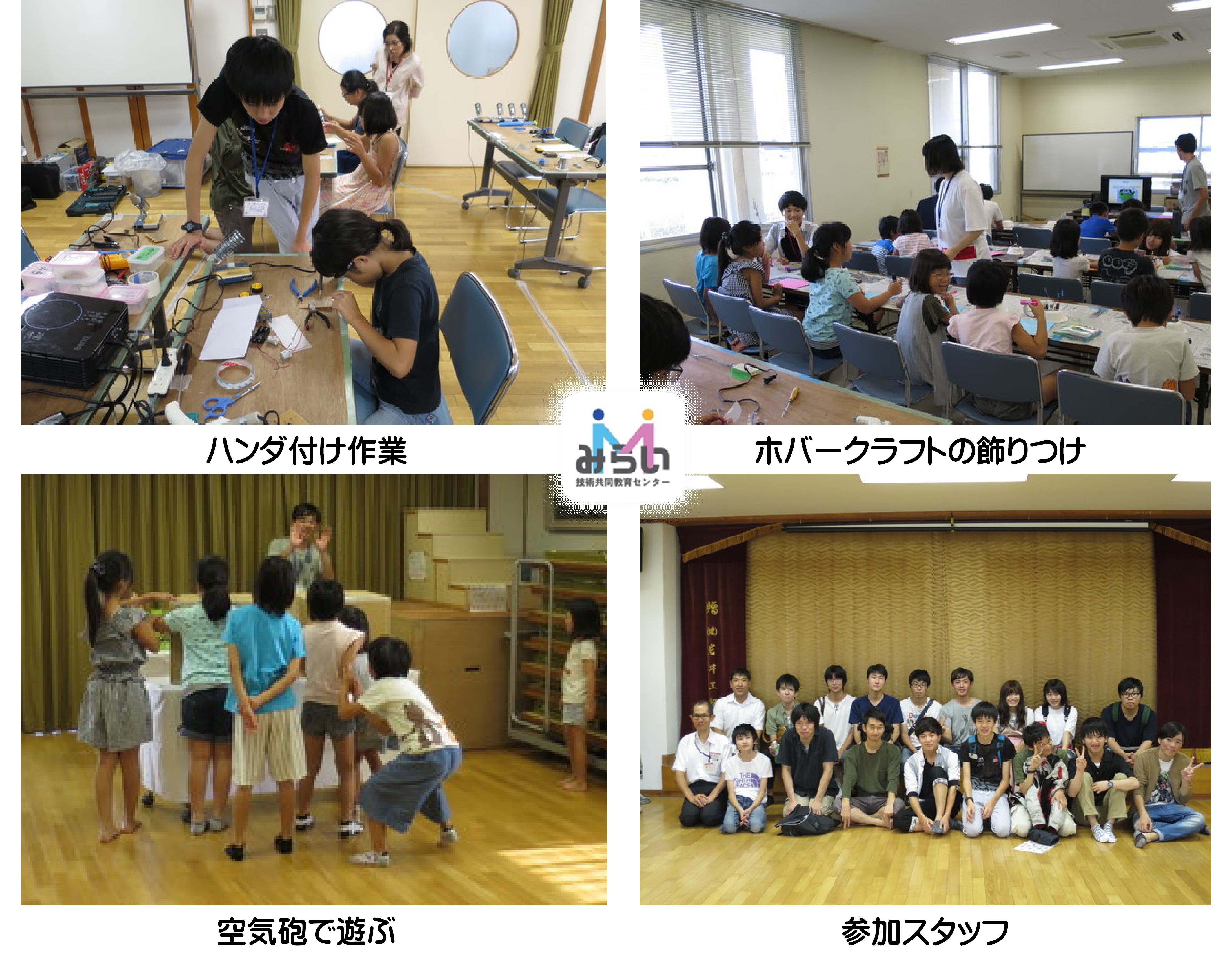 高学年を対象とした「ライントレーサーを作ってみよう!」,低学年を対象とした「ホバークラフトを作ろう!」を実施し,暑い中でしたがたくさんの小学生が参加してくださいました。