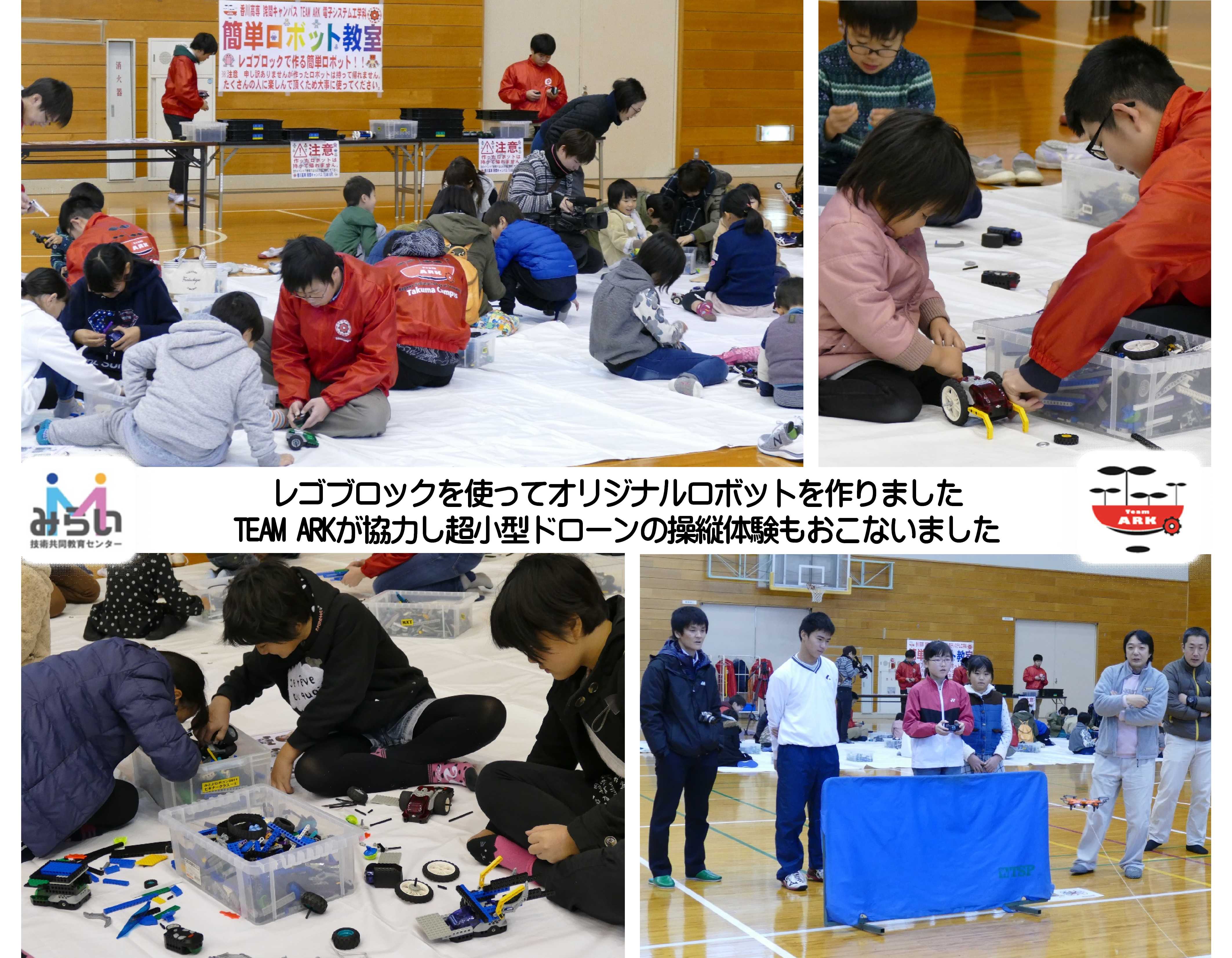 12月16日(土)に豊中中学校で行われた、三豊市子ども会「第5回子ども広場」で詫間キャンパスロボコンチームTEAM ARKの学生が「簡単ロボット教室」を行いました。