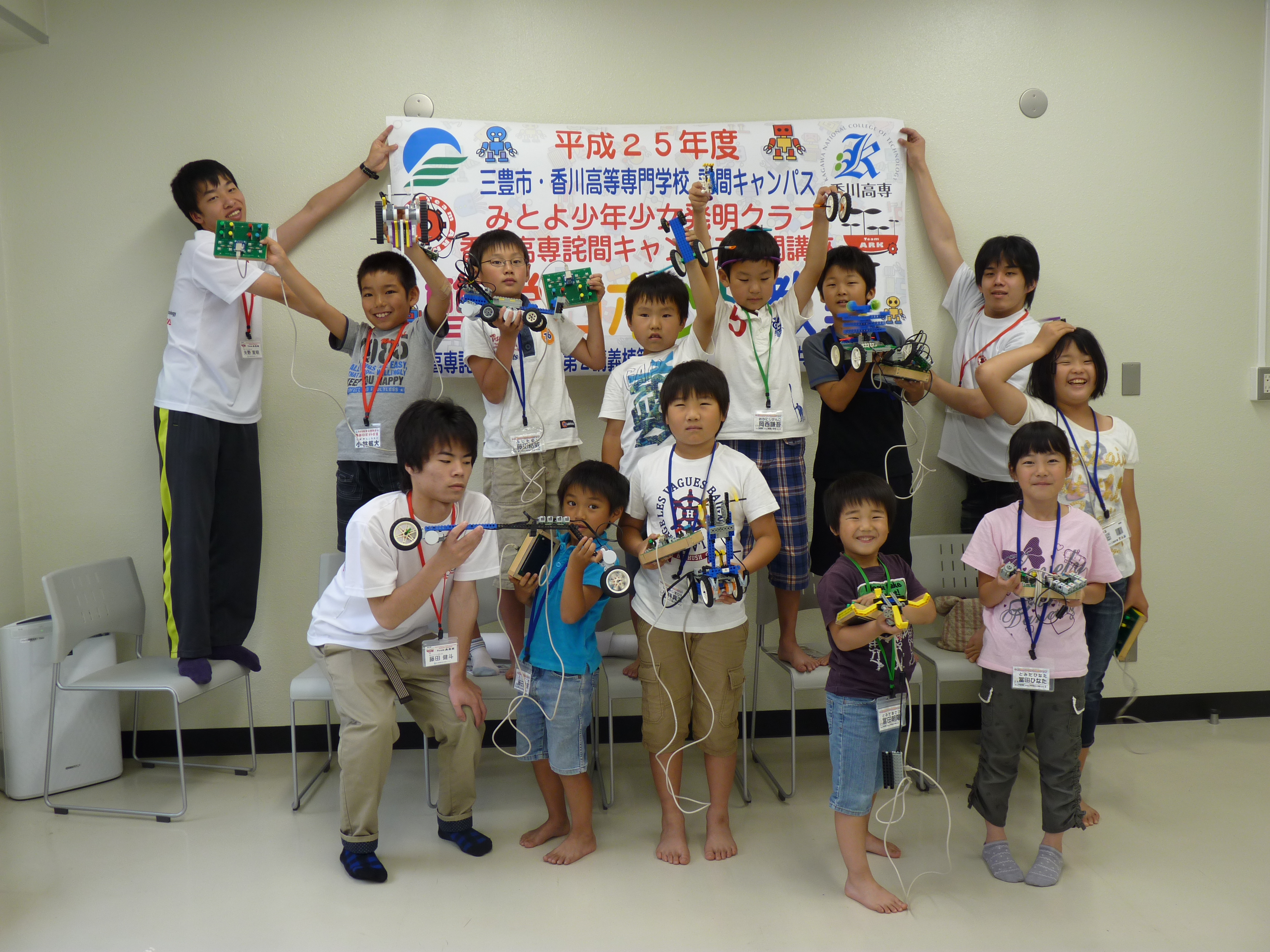 6月15日(土)午前9時~11時まで、三豊市少年少女発明クラブと香川高専詫間キャンパスが「チャレコン作品づくり(2)・簡単ロボット教室(3)」を開催しました。