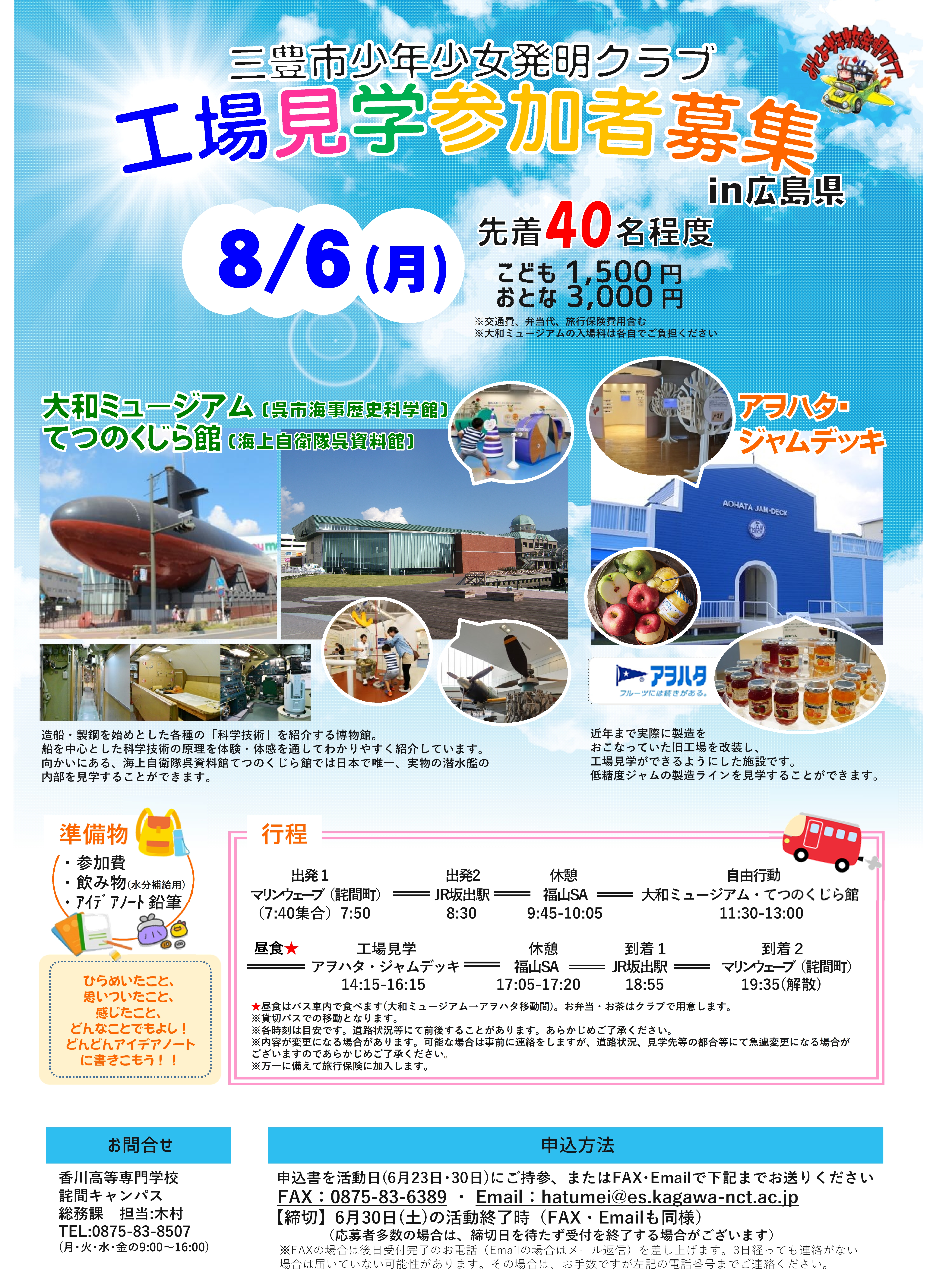 三豊市少年少女発明クラブ工場見学参加者募集 2018/06/12 三豊市少年少女発明クラブが、工場見学の参加者を募集しています。 詳しくはコチラをご覧ください。 *工場見学案内チラシ* *工場見学申込書*