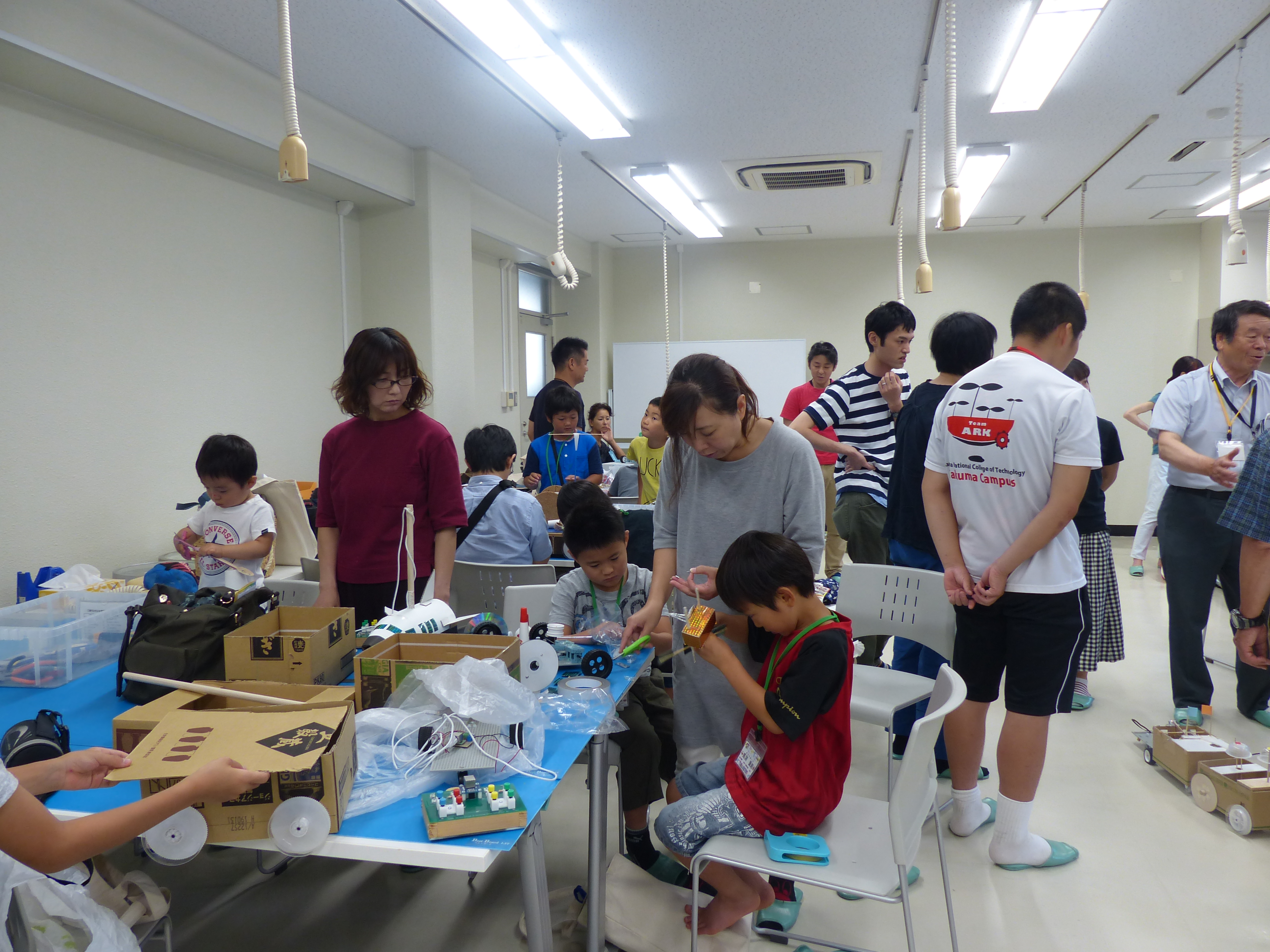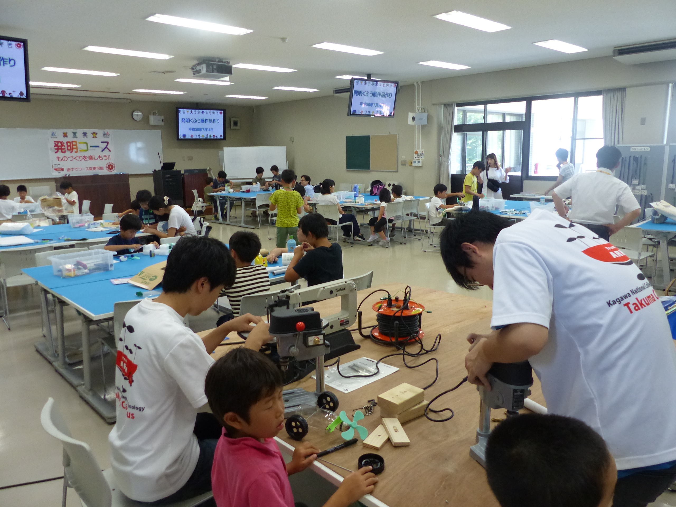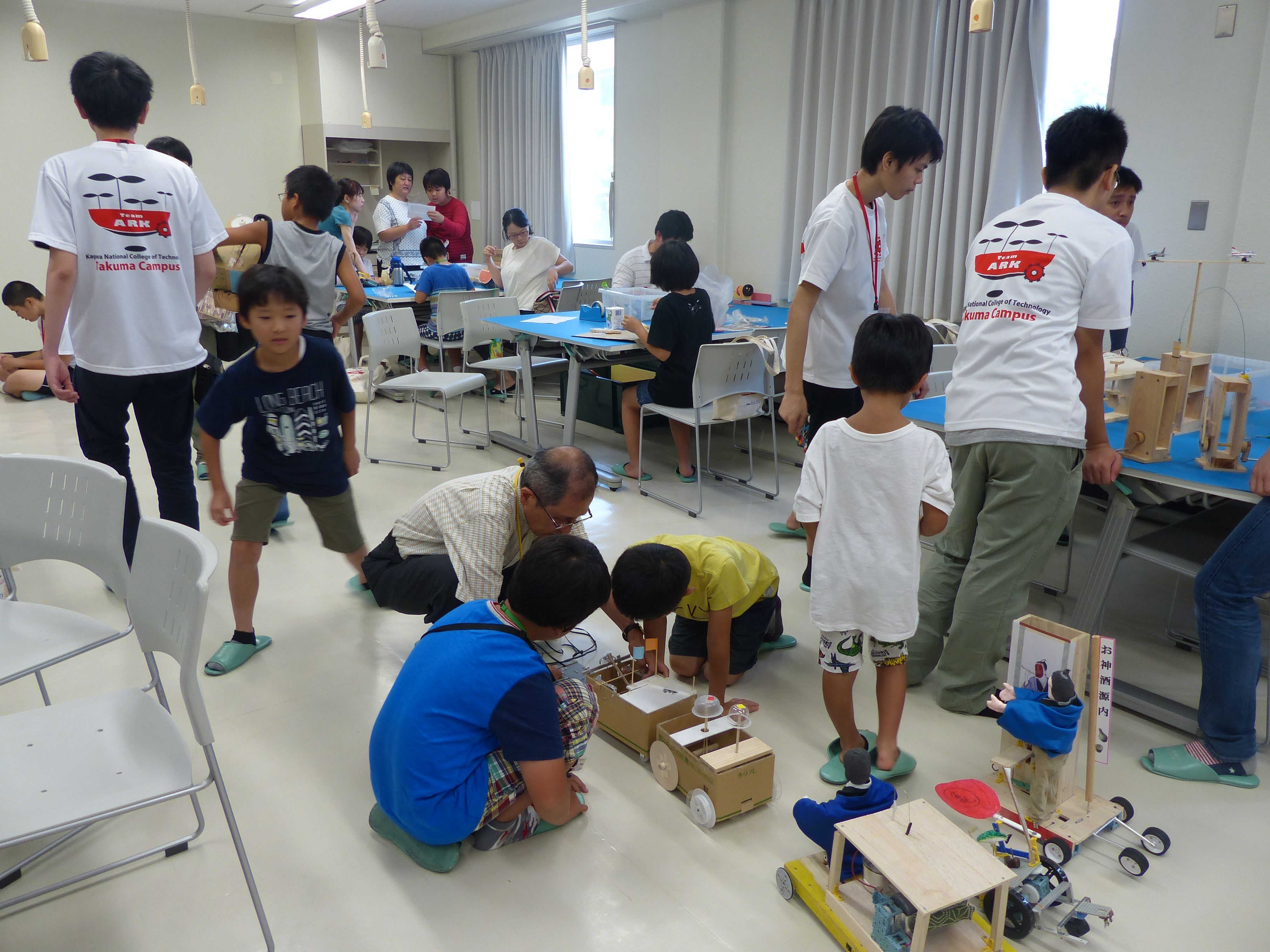 7月14日(土)、詫間キャンパスにおいて三豊市少年少女発明クラブ「発明工作コース(6)・チャレコンコース(6)」が開催されました。今回も詫間キャンパスロボコンチーム「TEAM ARK」のメンバーが協力しました。