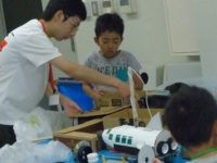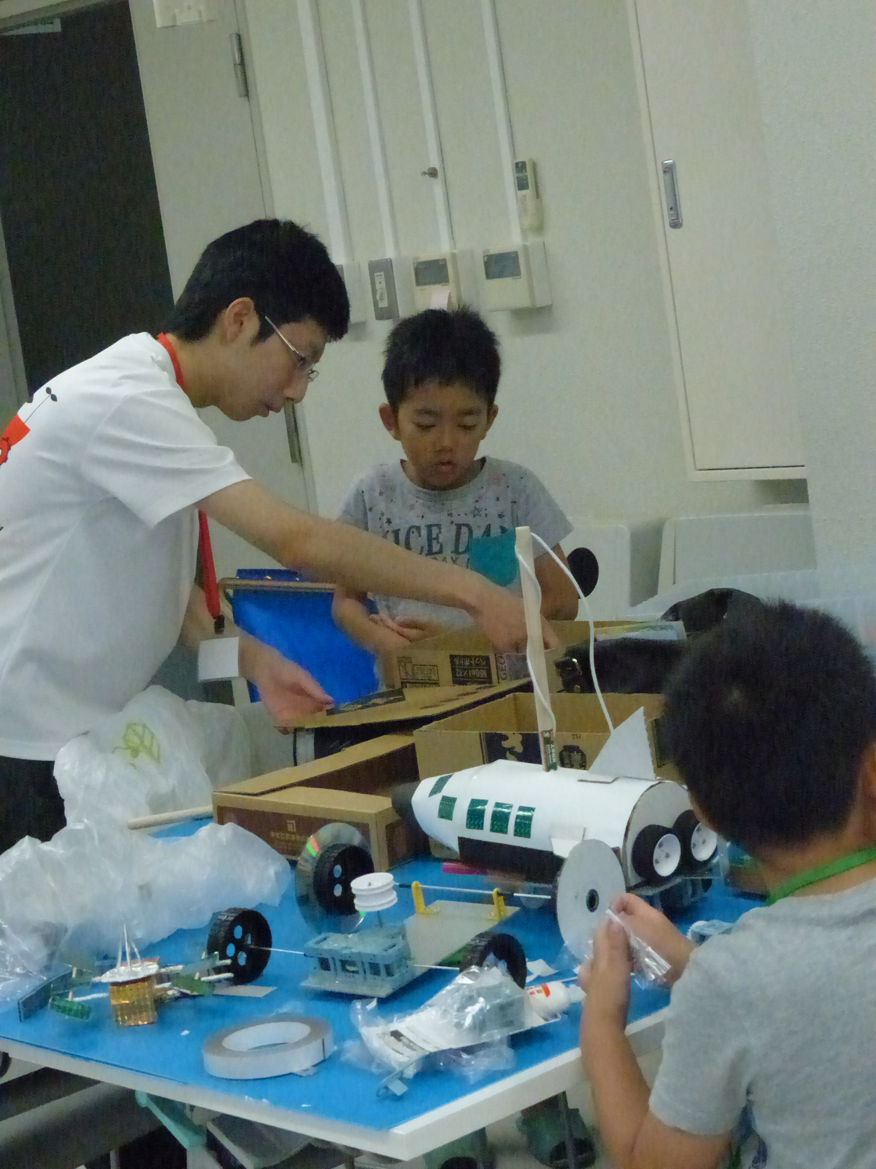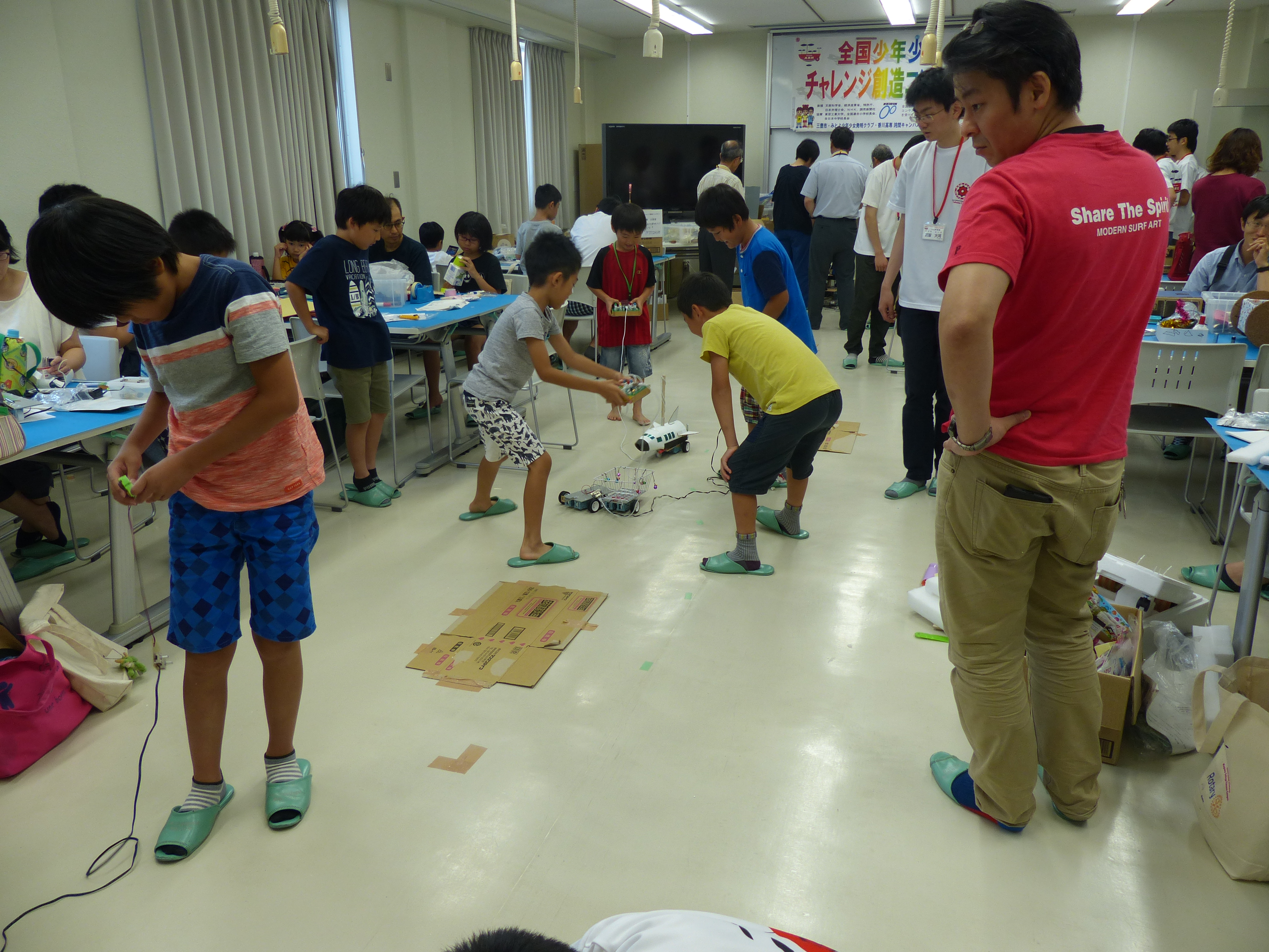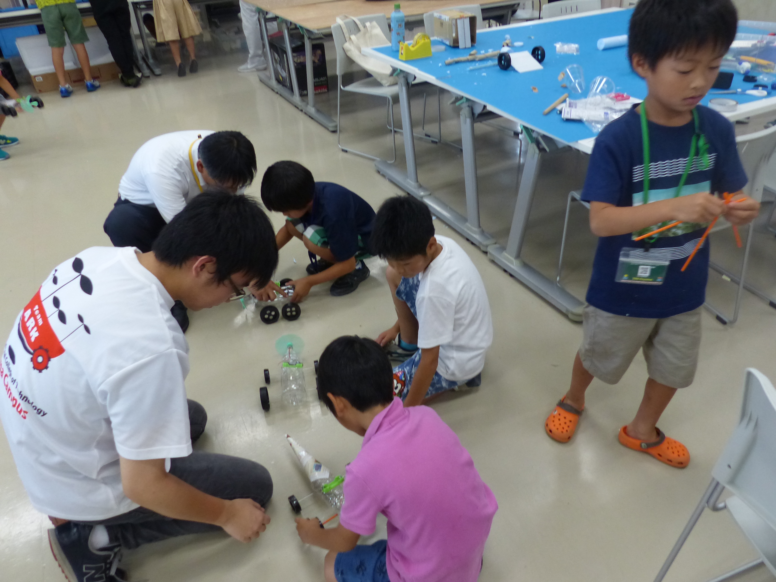 自分達の製作物が動くことがとても嬉しく楽しい様子で、なんども走らせながら動きをチェックしていました。