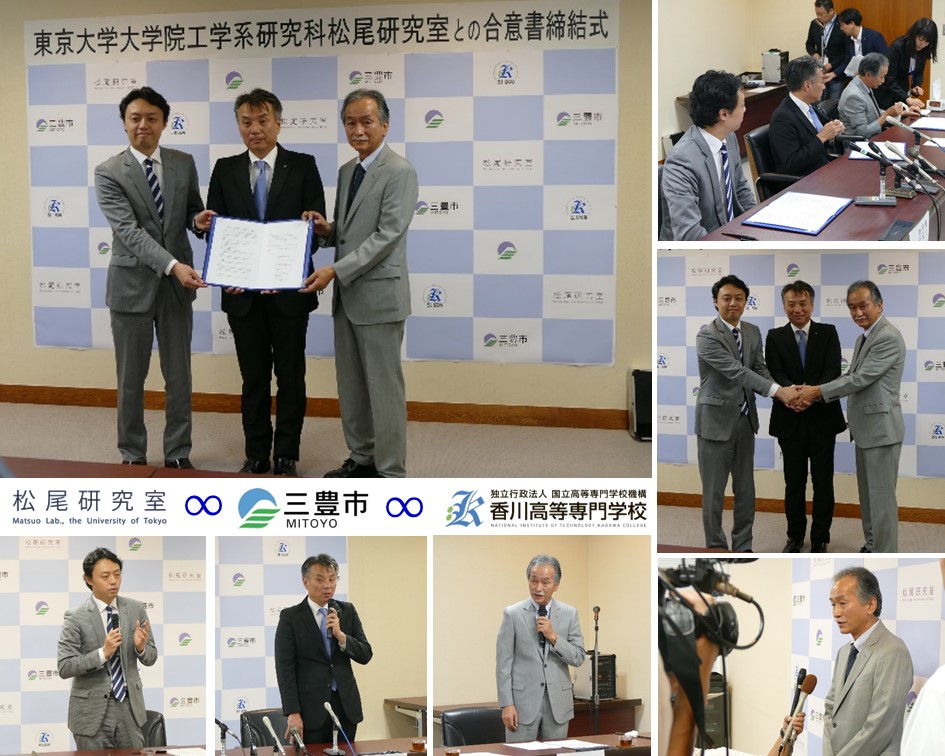 8月20日(月)、三豊市役所において三豊市・東京大学大学院工学系研究科松尾研究室・香川高等専門学校との連携協力に関する合意書締結式を開催しました。