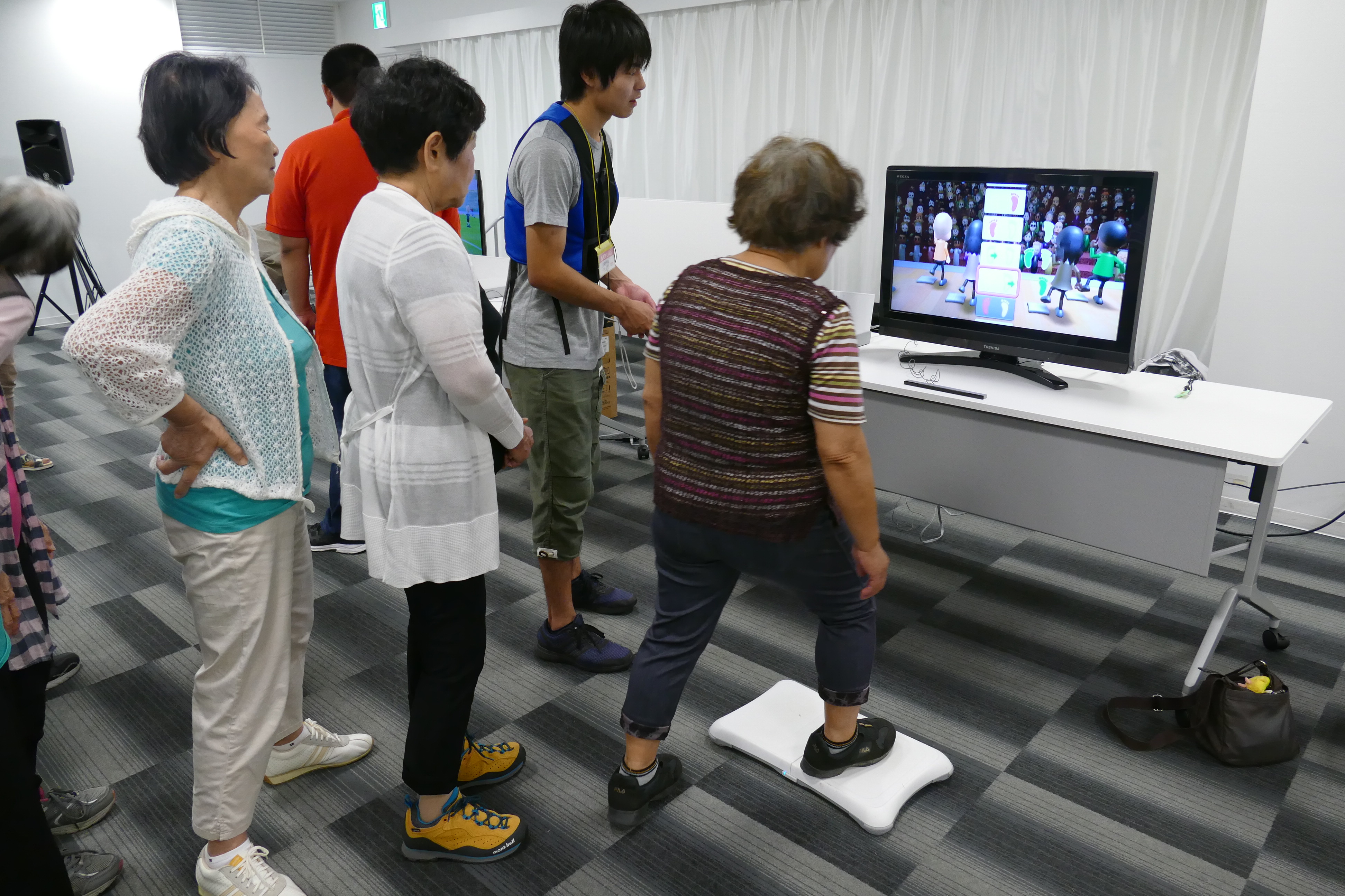 まず、テレビゲームが脳の活性化につながるしくみについてミニ講演を行い、その後実際に「家庭用ゲーム機Wii」や造形ブロック「カプラ」を使って遊んでいただきました。何度も何度もゲームに挑戦する方や、ゲームをしながら参加者同士や指導する学生との会話も楽しむ方など、それぞれの楽しみ方で時間を過ごされていました。どの方もいきいきとした表情で楽しくトレーニングをすることができました。