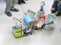 また、当クラブから「全国少年少女チャレンジ創造コンテスト全国大会」に出場し、決勝進出を果たしたマシーンのデモ走行も行いました。製作したクラブ員からマシーンに使用しているからくりについて説明があり、他のクラブ員は熱心に聞き入っていました。