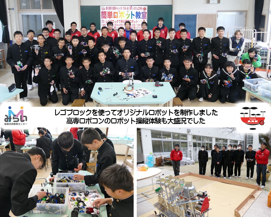 12月9日(日)愛媛県四国中央市立川之江北中学校の文化祭「ふれ愛地域体験講座」で、詫間キャンパスロボコンチーム「TEAM ARK」が「簡単ロボット教室」を行いました。