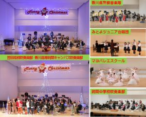 12月23日(日)三豊市文化会館マリンウェーブにおいて、毎年恒例となった観音寺法人会三豊支部主催の「クリスマスコンサート2018」が開催され、詫間キャンパス吹奏楽部、野球部、TEAM ARKの学生が参加しました。