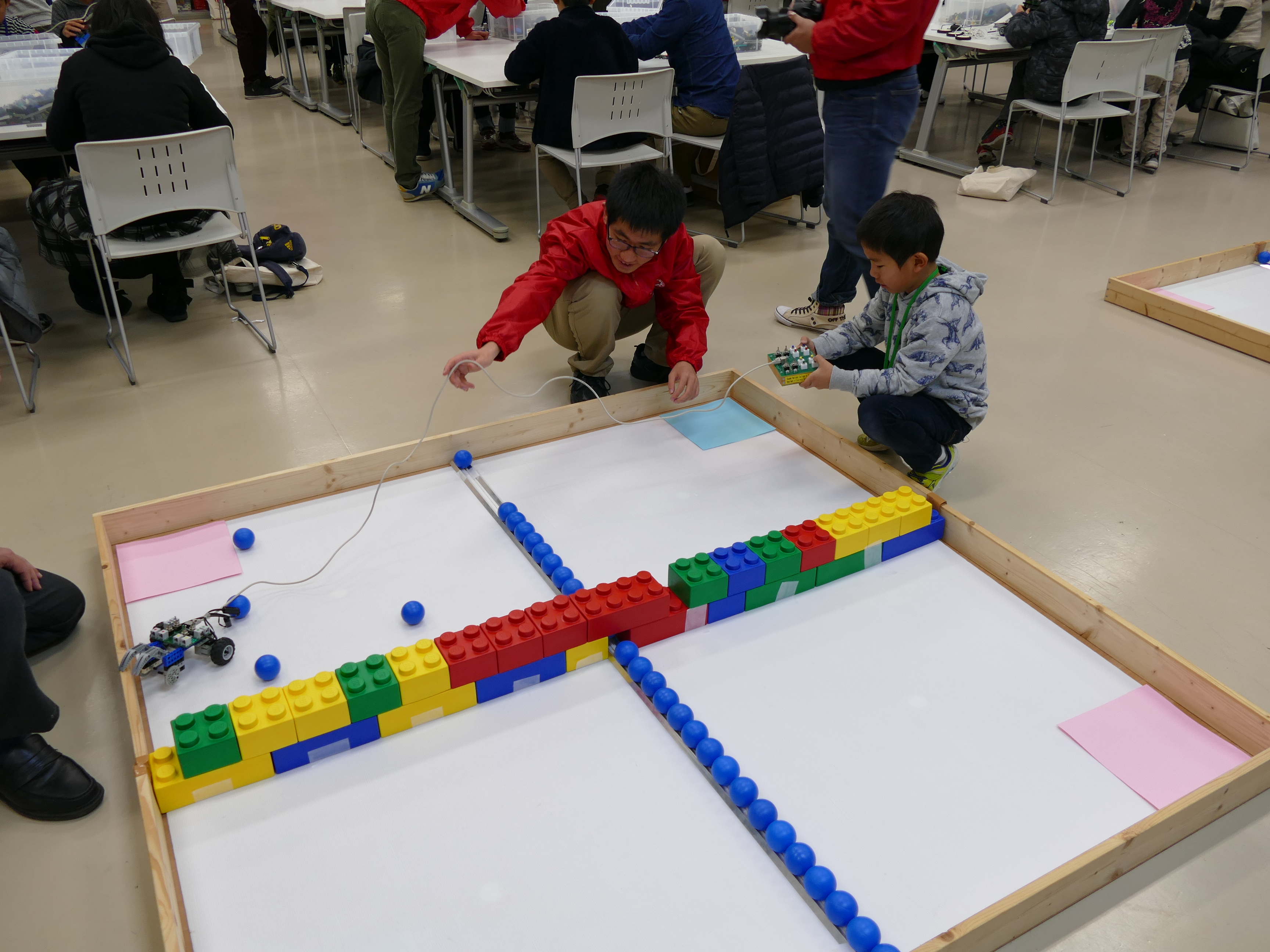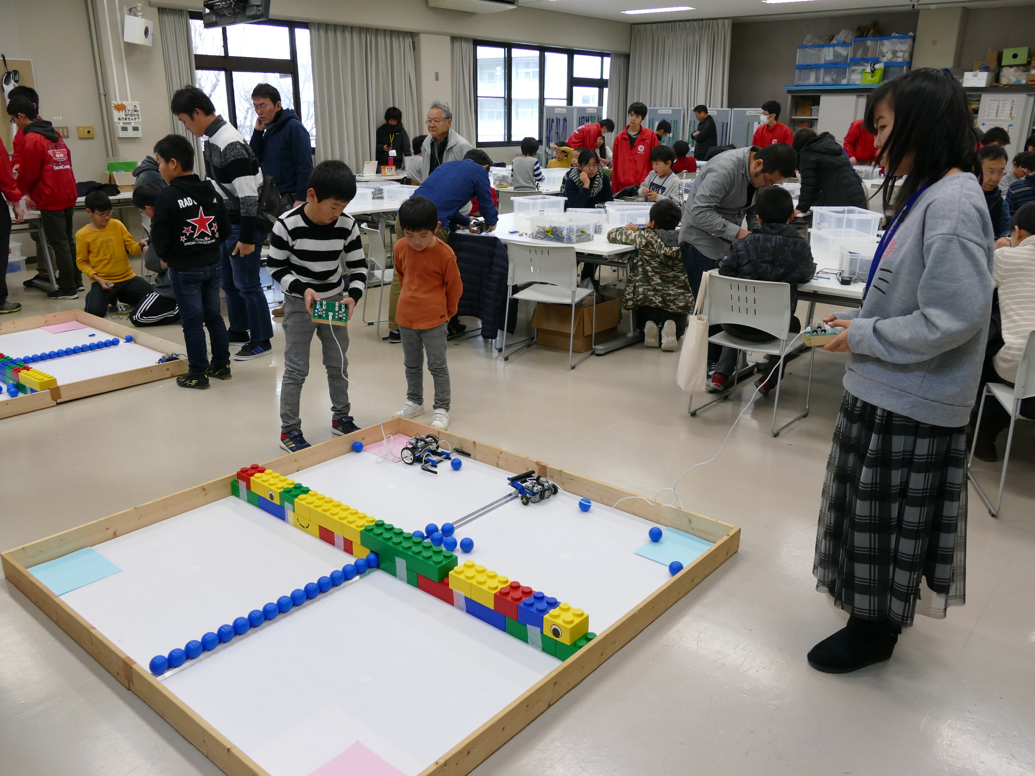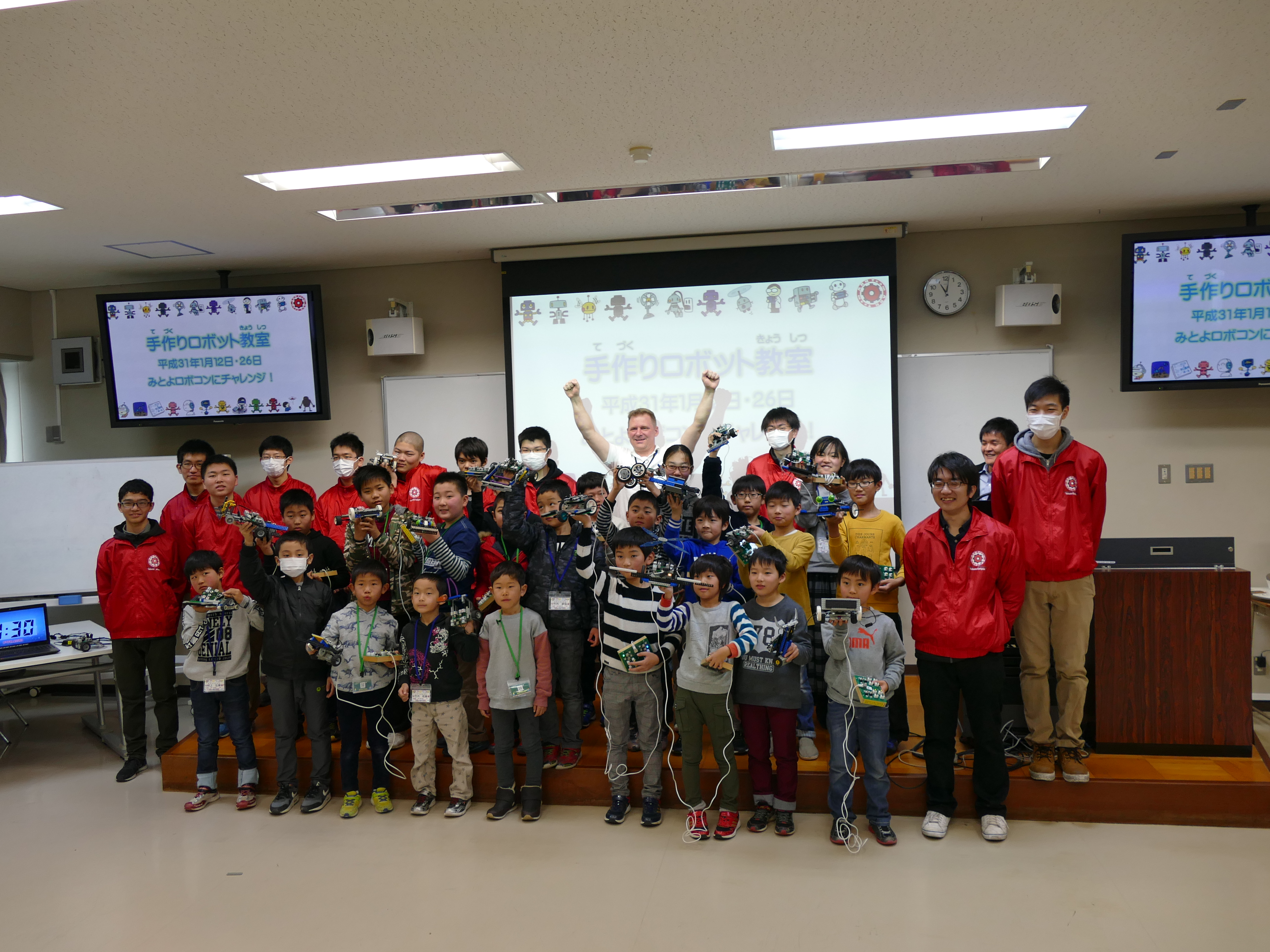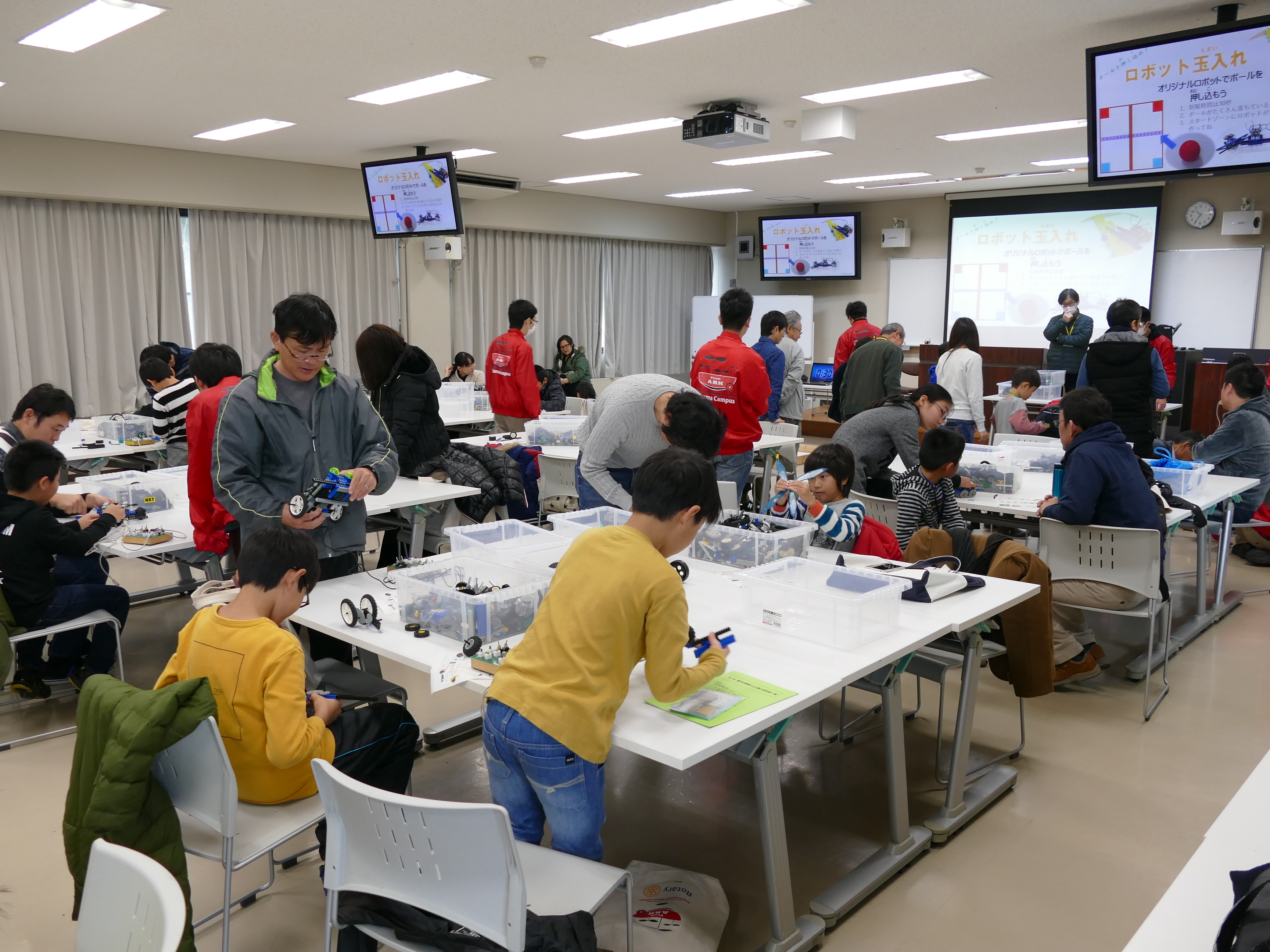 1月12日(土)午前9時~11時、詫間キャンパスにおいて三豊市少年少女発明クラブ「ロボコン基礎(1) 」が開催され、詫間キャンパスロボコンチーム「TEAM ARK」の学生がレゴ部品とオリジナルコントローラを使ったロボット教室を行いました。