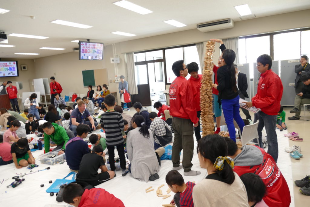 今回は、詫間キャンパスロボコンチーム「TEAM ARK」が主催しているレゴブロックを使った「簡単ロボット教室」でした。この活動は“自分で考え・作って・楽しむ”ことを目的としています。