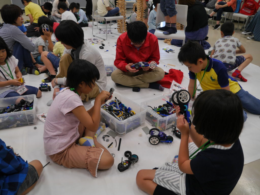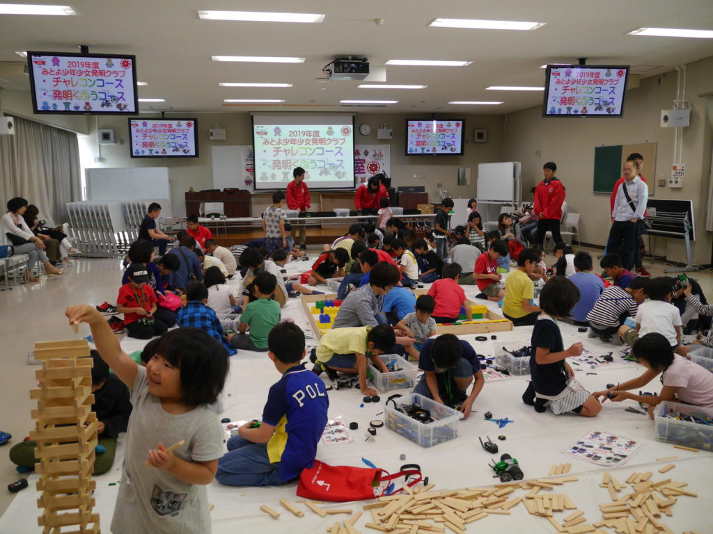 発明工作コースでは、前回に引き続きレゴスパイボットを使ったオリジナルロボット製作です。クラブ員は慣れた手つきでオリジナルロボットを作り、フィールド内を走らせたりお友達と闘ったりと自由に遊びました。木の積み木(カプラ)も大人気でした。