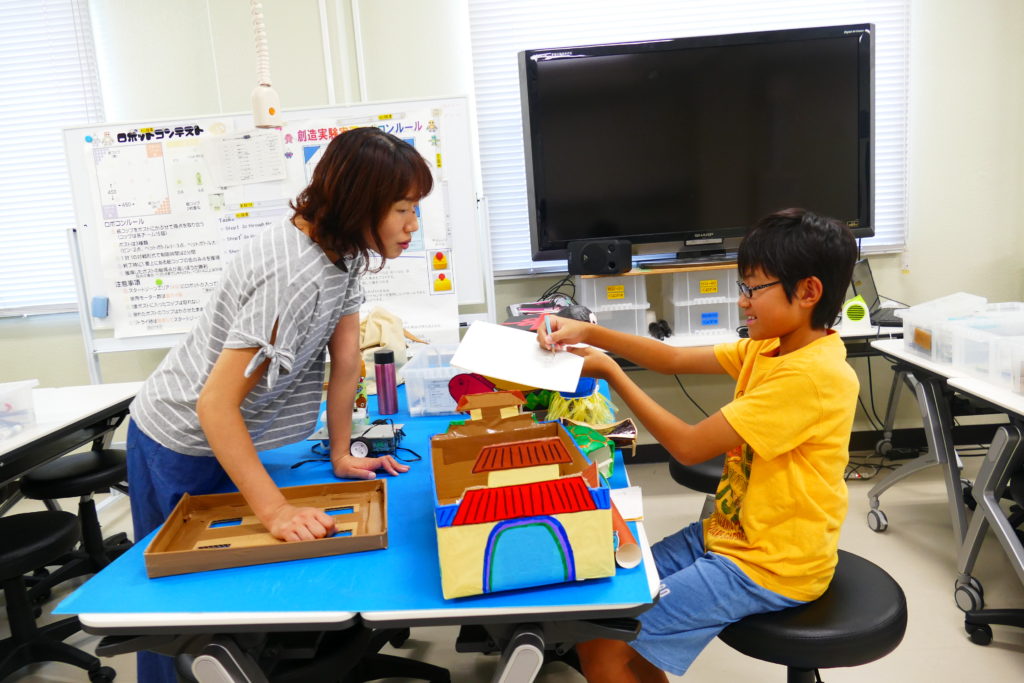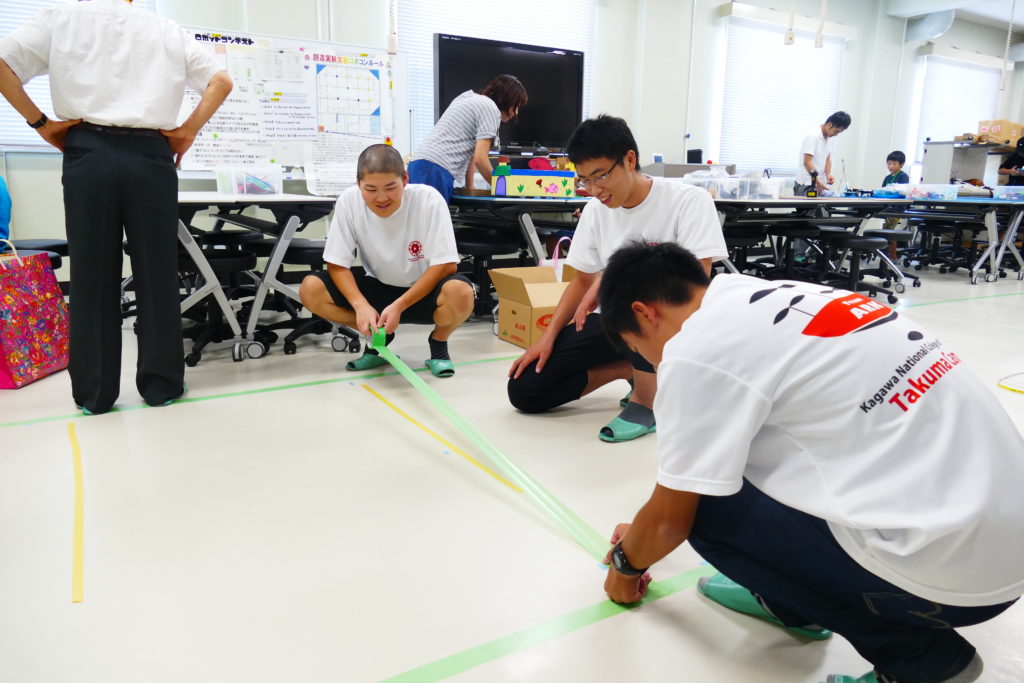 8月17日(土)、詫間キャンパスにおいて三豊市少年少女発明クラブ「発明工作コース(6)・チャレコンコース(7)」が開催されました。今回も詫間キャンパスロボコンチーム「TEAM ARK」のメンバーが協力しました。