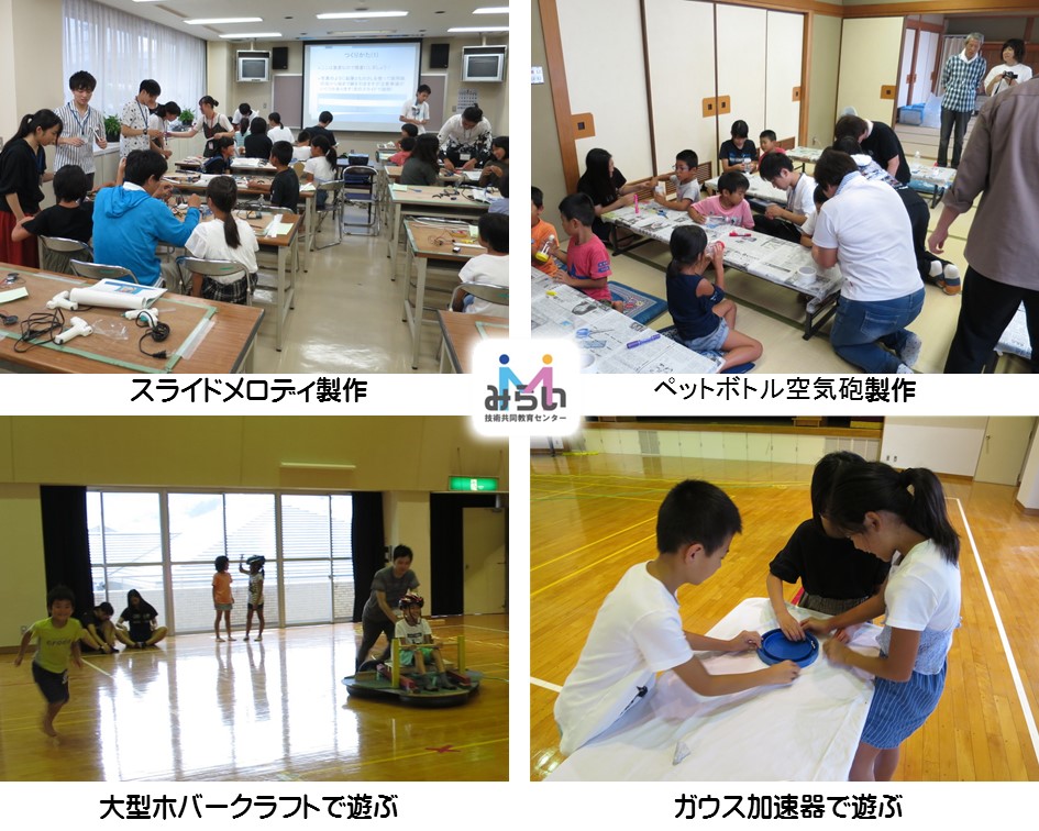 ものづくり教室では,高学年は電子工作「スライドメロディを作ろう!」、低学年は紙工作「ペットボトル空気砲を作ろう!」を実施しました。