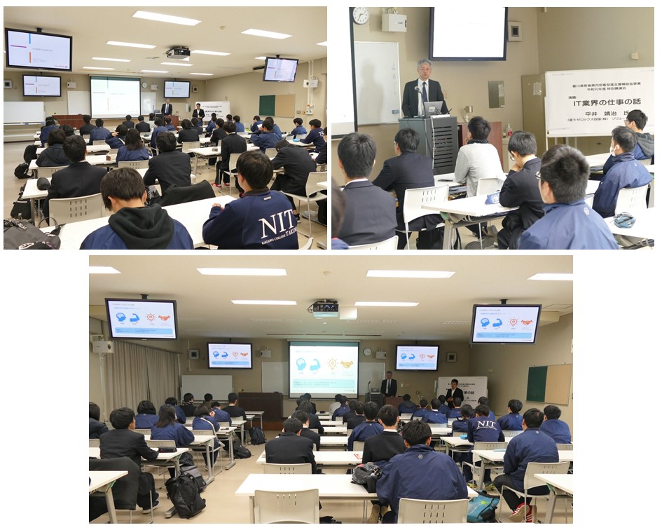令和2年1月20日(月)詫間キャンパス第四講義室において、情報工学科3年生を対象とした講演会を実施しました。