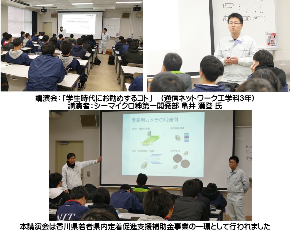 令和2年1月27日(月)詫間キャンパス第五講義室において、通信ネットワーク工学科3年生を対象とした講演会を実施しました。