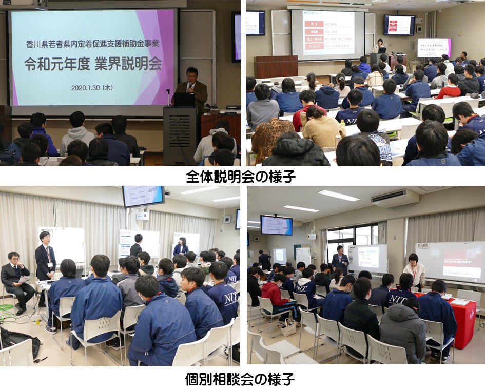 令和2年1月30日(木)、詫間キャンパス第二講義棟の第二講義室および第四講義室にて、4年生を対象とした、香川県若者県内定着促進支援補助金事業「令和元年度業界説明会」を実施しました。
